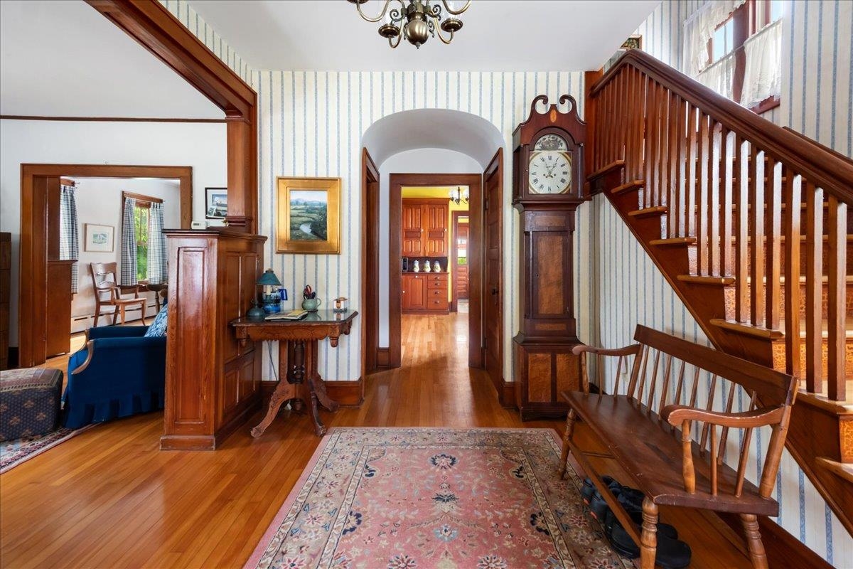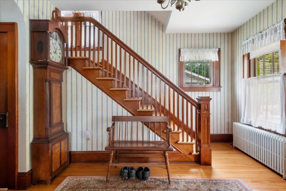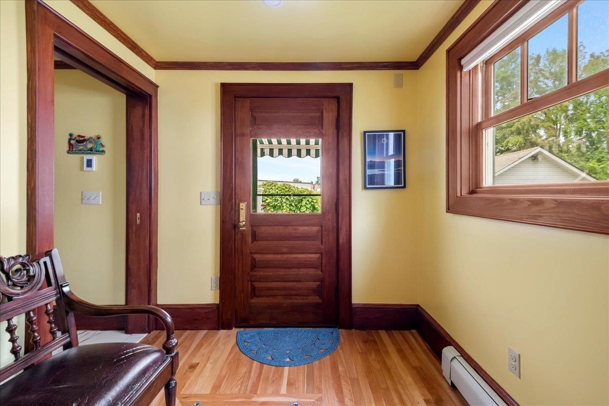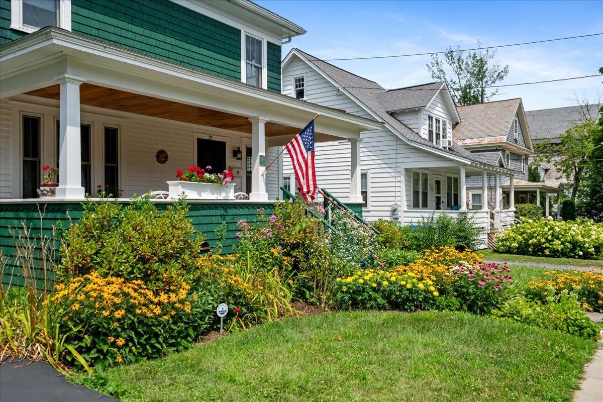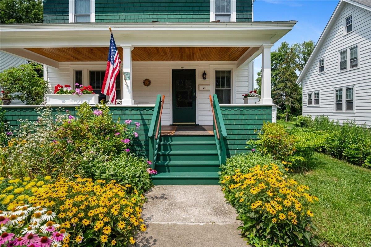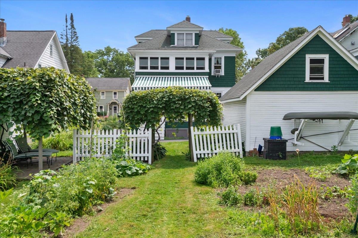 Meticulously maintained & beautifully updated, this classic home is full of timeless charm & character! Nestled on a peaceful side street near the UVM campus, this home offers a blend of history, comfort & convenience. Vibrant perennial gardens greet you, leading to a spacious front porch ideal for relaxation. The welcoming foyer showcases stunning original hardwood flooring & woodwork that flows throughout the home. The living room features built-in cabinetry, creating a cozy & functional space that connects seamlessly to the formal dining room & kitchen. The sun-filled kitchen boasts extensive cabinetry & storage on every wall. At the back of the home, there's a convenient 3/4 bath with radiant heat flooring & 2 shower heads, and a mudroom with access to the back deck, yard & gardens-your own private oasis! The second floor includes 3 bedrooms, a 3/4 bath & den/office. One bedroom even features its own private porch! The finished attic level provides a great storage space, while the lower level offers a cozy rec room with a gas stove, half bath, laundry & unfinished storage with built-in shelving. The backyard is a true retreat with a retractable awning over the deck, a firepit, extensive garden space beyond a charming pergola, and a patio shaded by lush Concord grape vines, which ripen in September. Owned solar panels on the detached garage and a prime location near UVM, UVM Medical Center, I-89 & downtown Burlington make this home a must-see! Delayed showings begin 8/9/25 |