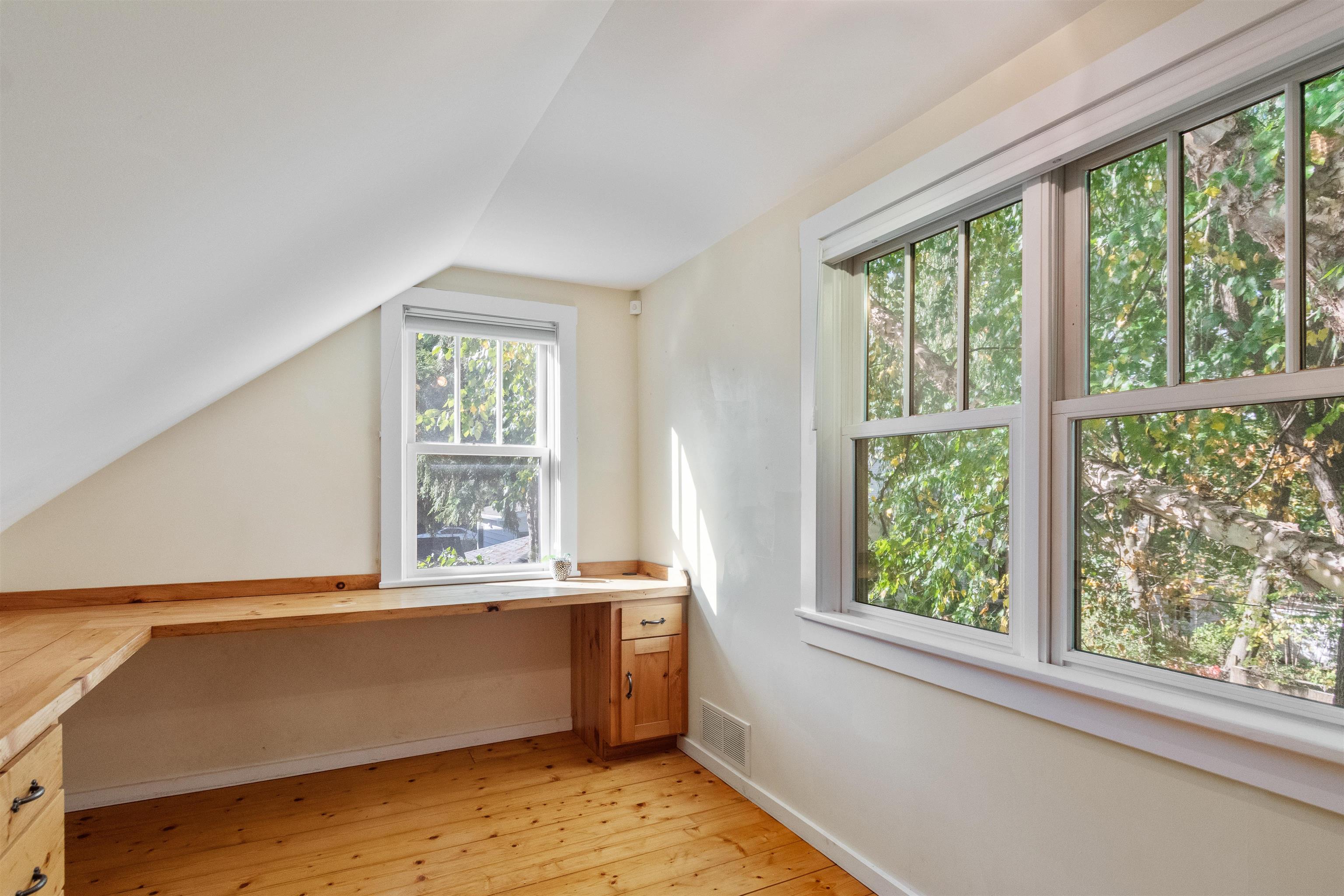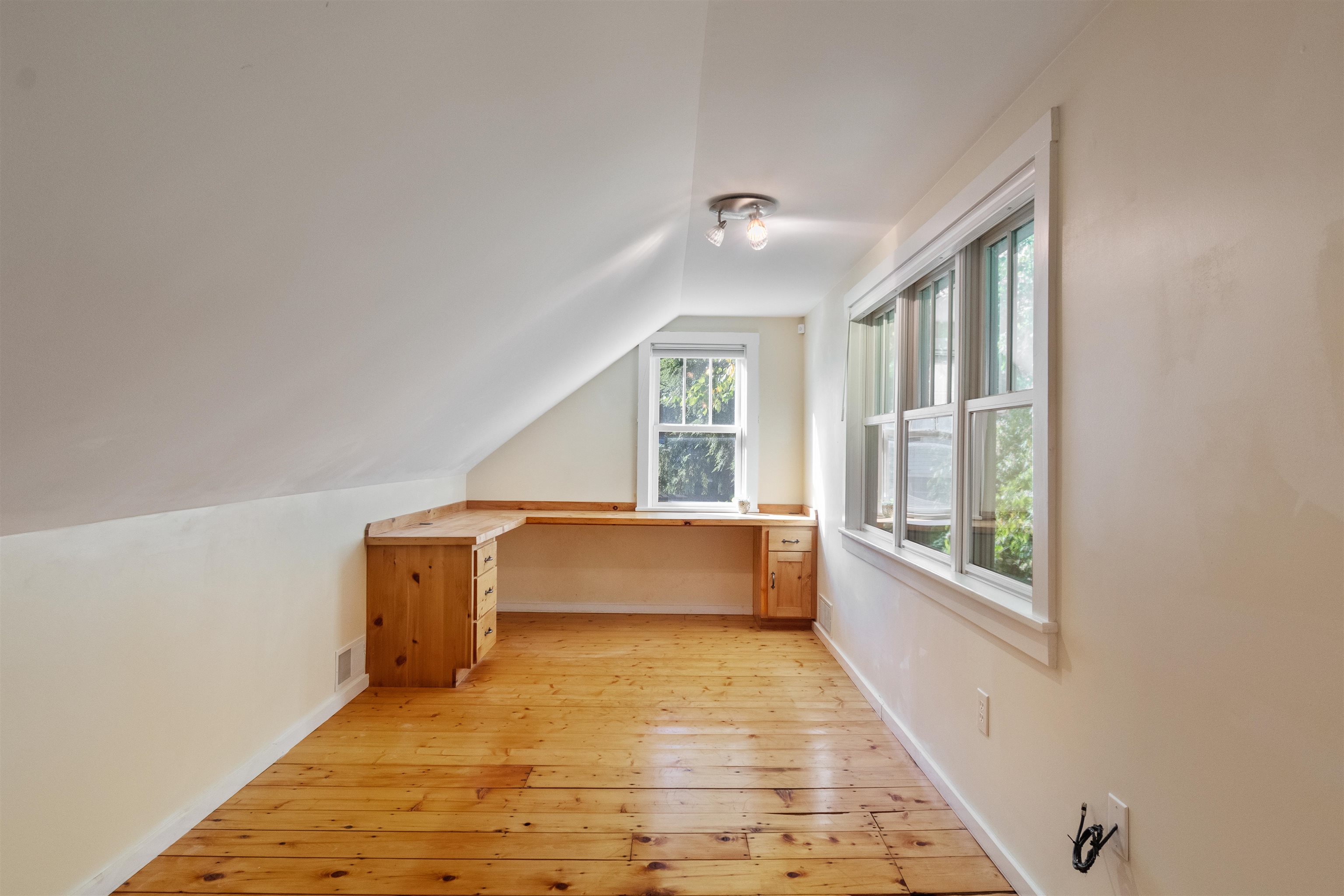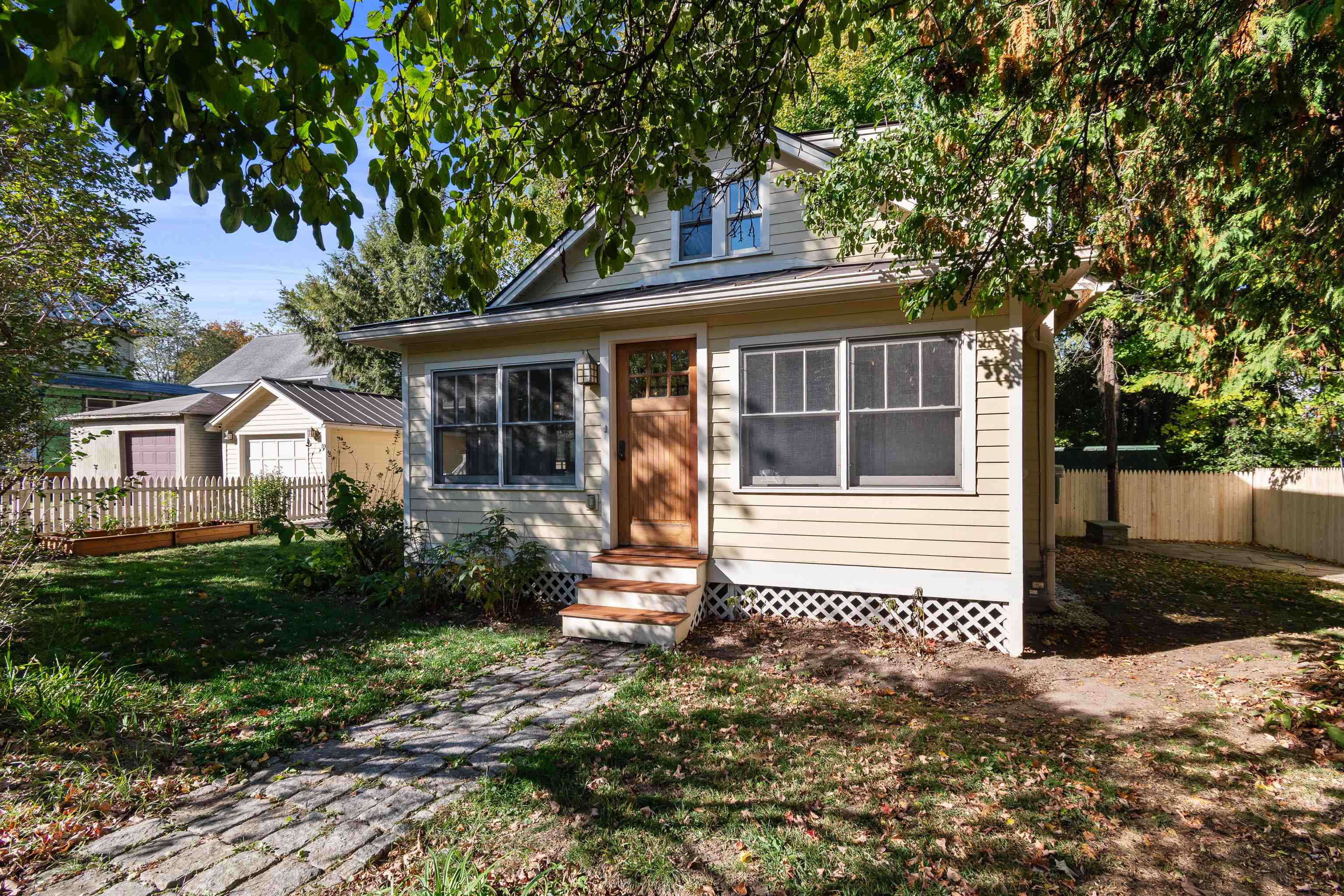 Welcome to this lovely south end home on a quiet street in Burlington. This charming cape offers a private fenced in yard, garage, enclosed porch, deck, and patio. This home is filled with perfect space to work or enjoy peaceful moments. Walk into the oversized mudroom that leads to the open kitchen and living area with gorgeous soapstone countertops and natural hardwood throughout. The first floor features a bedroom, full bathroom and sunny front porch. Upstairs you will find a large primary bedroom with wide plank pine flooring, sunny office with built in desk, gas fireplace, huge walk in closed and a bathroom with soaking tub and large shower. The fully finished basement highlights a climate controlled wine cellar with gorgeous finishes, exquisite stonework and a bonus room with ample space. In the basement you will also find a separate laundry room with folding countertop and large utility/storage room. This charming, historic home has abundant sunlight throughout and outdoor private patio and deck to enjoy your morning coffee or glass or wine. This sought-after location is minutes to Downtown Burlington, UVM and I-89, conveniently located in a quiet neighborhood. |