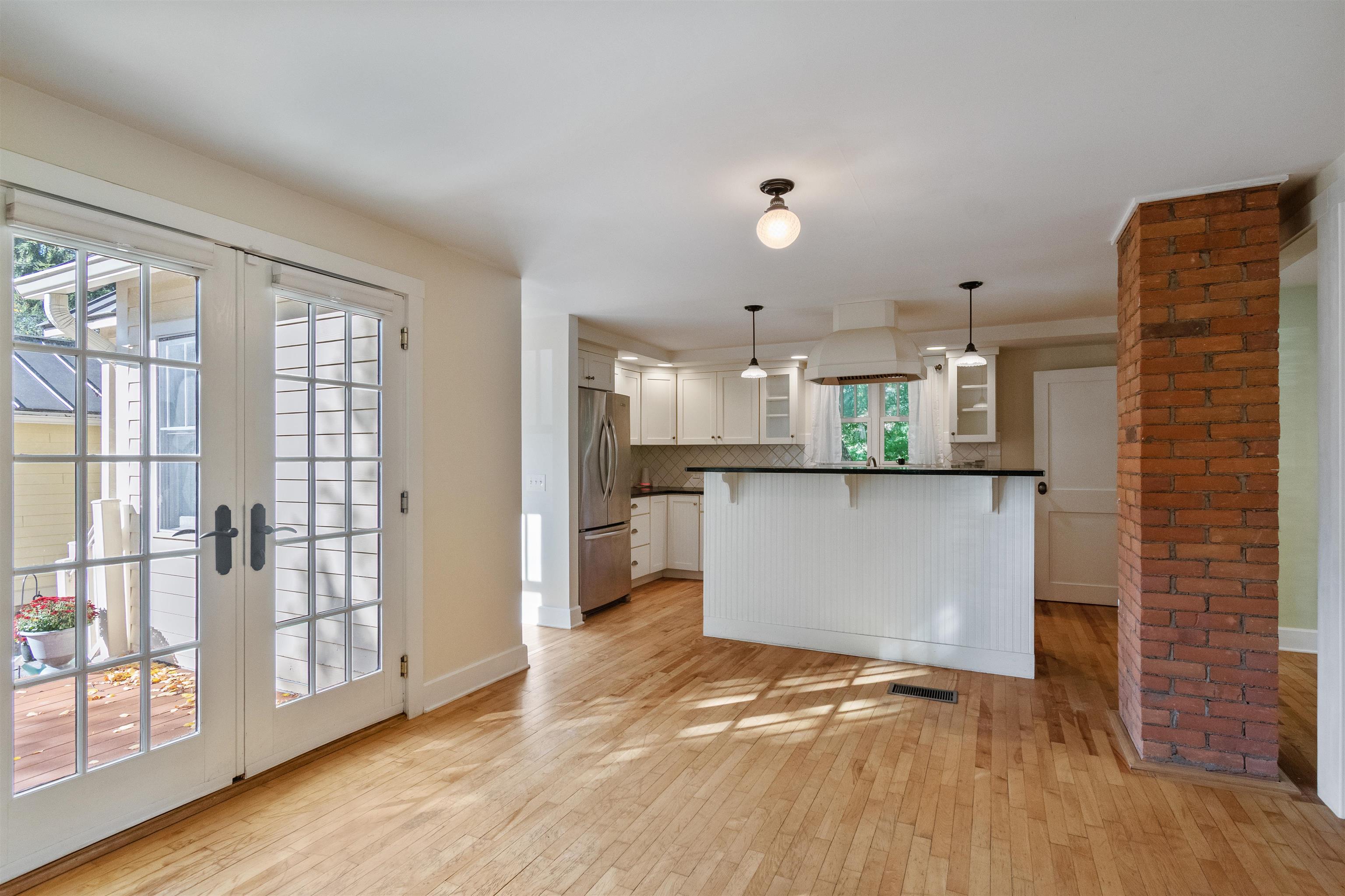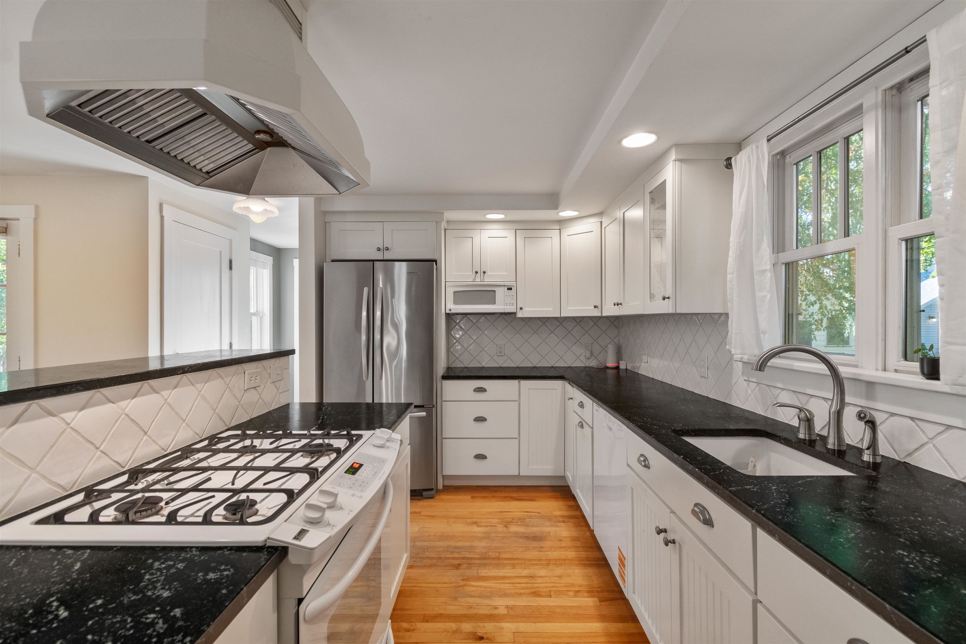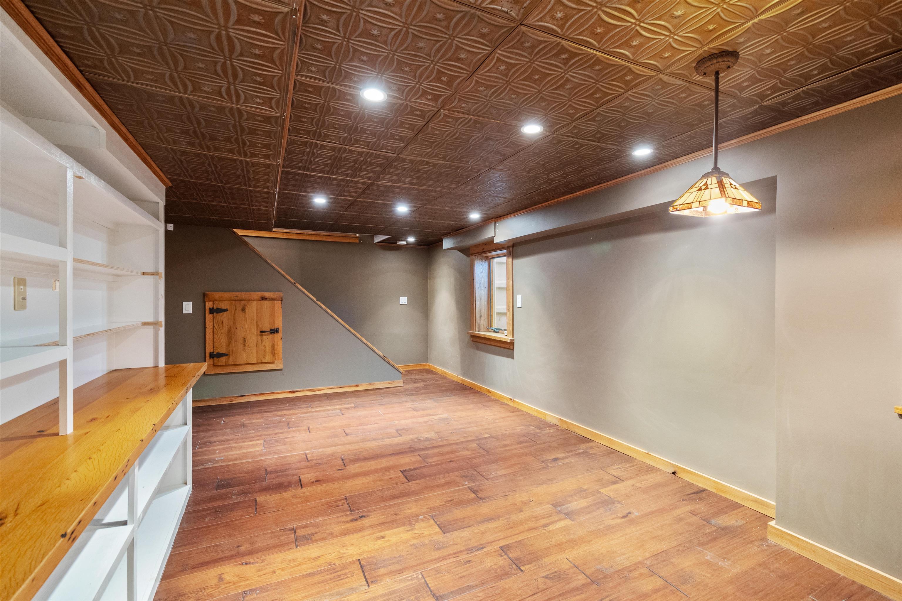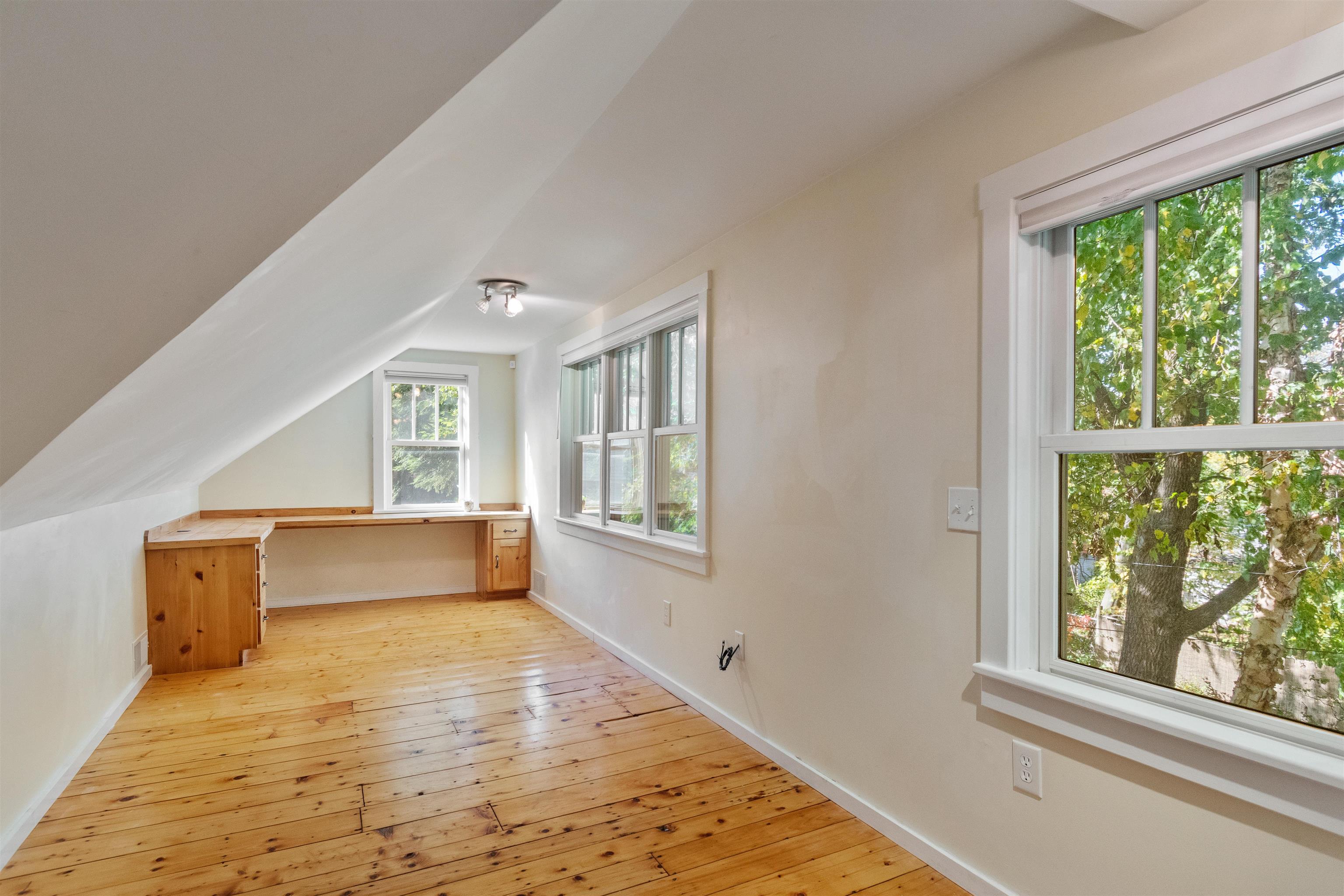 Welcome to this lovely south end home on a quiet street in Burlington. This charming cape offers a private fenced in yard, garage, enclosed porch, deck, and patio. This home is filled with perfect space to work or enjoy peaceful moments. Walk into the oversized mudroom that leads to the open kitchen and living area with gorgeous soapstone countertops and natural hardwood throughout. The first floor features a bedroom, full bathroom and sunny front porch. Upstairs you will find a large primary bedroom with wide plank pine flooring, sunny office with built in desk, gas fireplace, huge walk in closed and a bathroom with soaking tub and large shower. The fully finished basement highlights a climate controlled wine cellar with gorgeous finishes, exquisite stonework and a bonus room with ample space. In the basement you will also find a separate laundry room with folding countertop and large utility/storage room. This charming, historic home has abundant sunlight throughout and outdoor private patio and deck to enjoy your morning coffee or glass or wine. This sought-after location is minutes to Downtown Burlington, UVM and I-89, conveniently located in a quiet neighborhood. |
