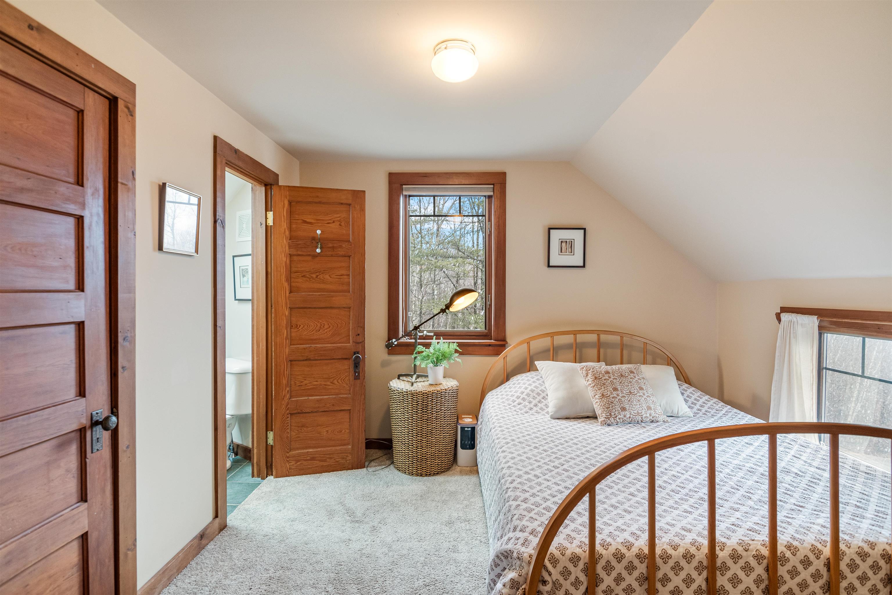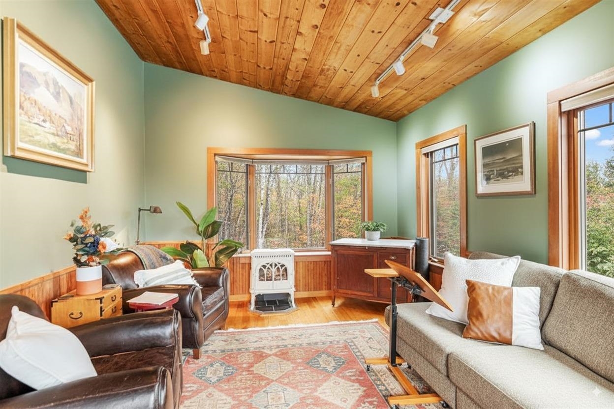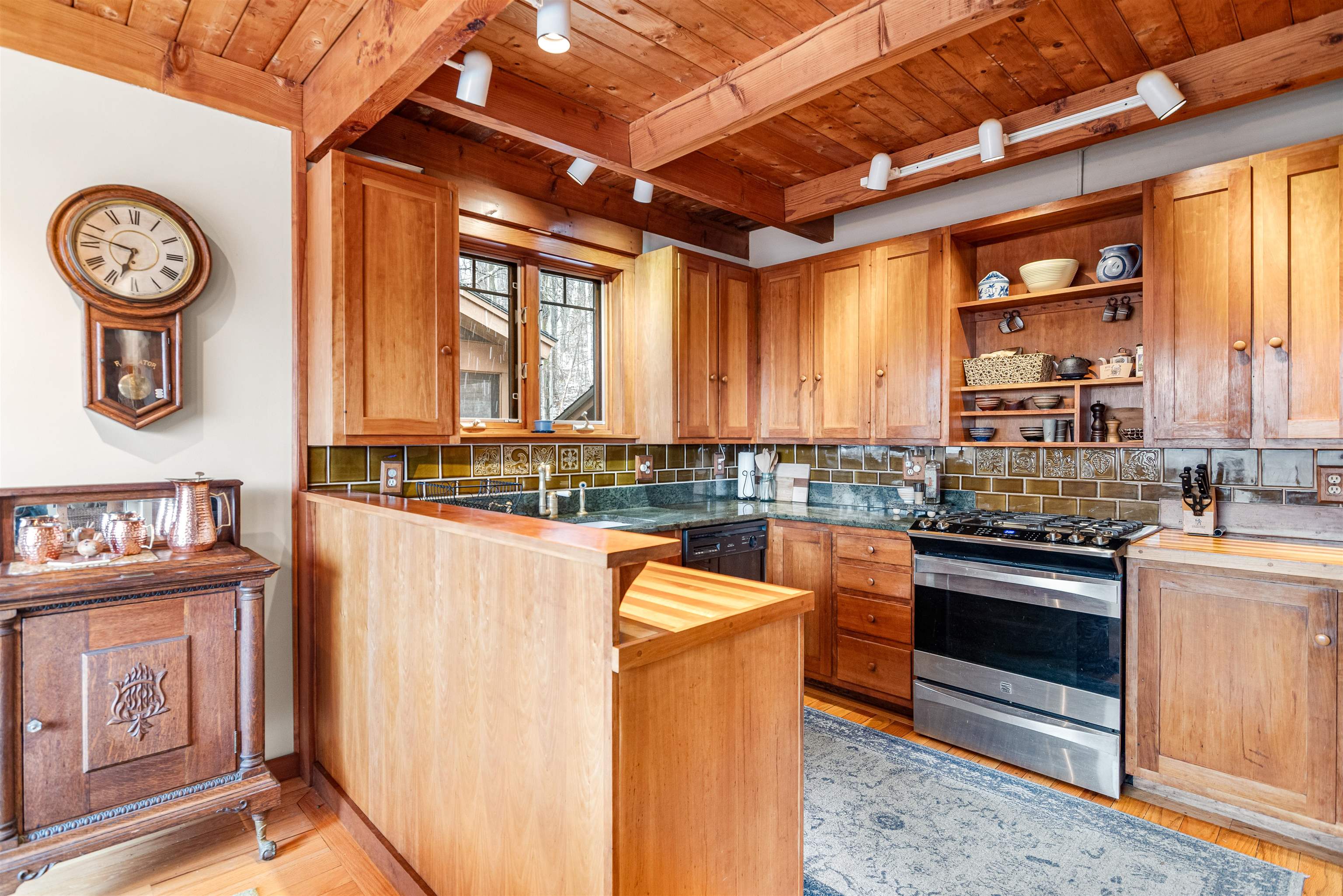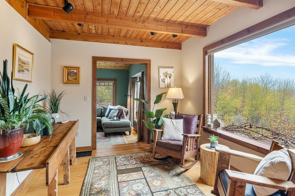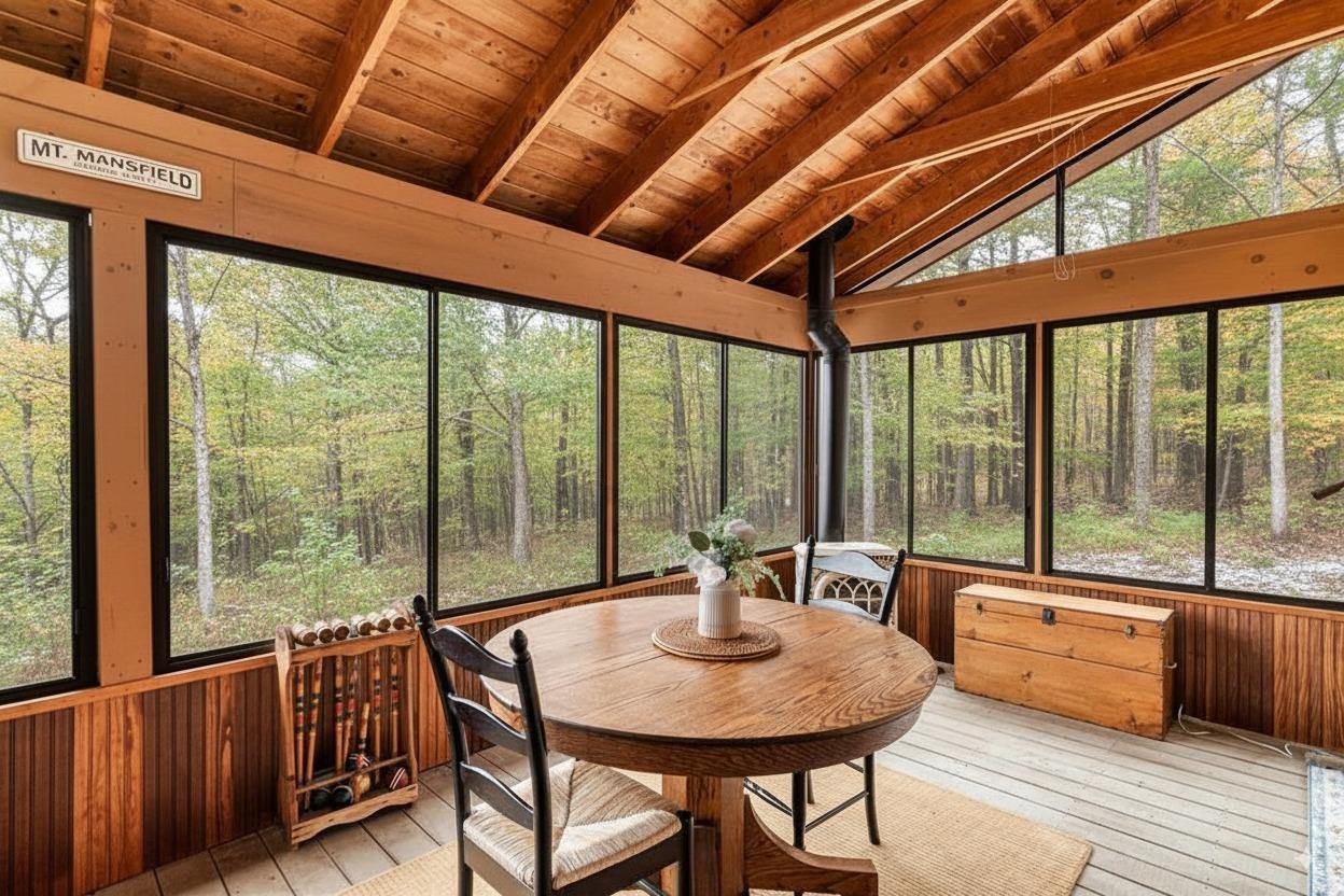 Tucked at the end of a private road on 10.1 acres, 6 Fox Lane blends architectural artistry with mountain serenity. This custom-built post & beam home offers sweeping, unobstructed views of Mt. Mansfield and Smugglers' Notch-preserved by design with no risk of future development interrupting your sightlines. Thoughtfully crafted and rich with character, the 3-bedroom, 4-bath residence showcases timeless materials-cherry, birch, and pine built-ins, reclaimed Winooski woolen mill doors, and vintage accents throughout. The efficient chef's kitchen features granite countertops, craftsman cabinetry, and a layout ideal for creativity and conversation. From the vaulted den to the 3-season porch with a gas stove, every space is designed to inspire. Unwind in the cedar-clad bath with an antique iron tub, or retreat to the expansive primary suite with a dedicated home office and a dual-bath configuration with two showers and two toilets for elevated privacy and convenience. A finished walkout basement offers flexible living or studio space, while the attached 2-car garage and private woodland trails add functionality and freedom. Outdoors, perennial gardens, stone walls, and a bluestone patio create a tranquil backdrop for dining or stargazing. Perimeter-mounted floodlights enhance both nighttime wildlife viewing and peace of mind, illuminating deer, moose, owls, and more. Just 20 minutes to ski resorts and tucked in a location that feels worlds away. |