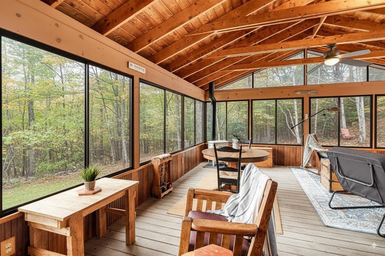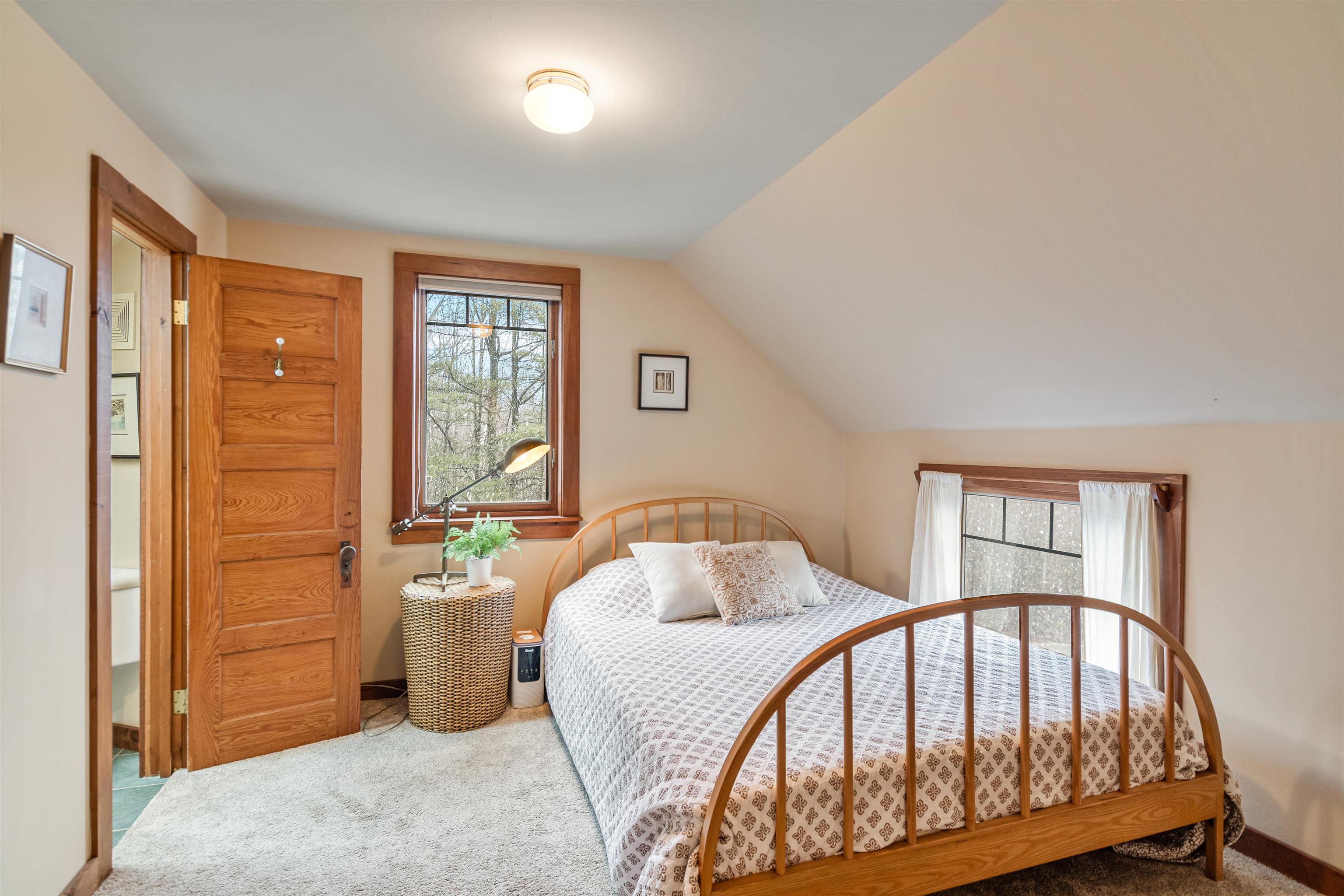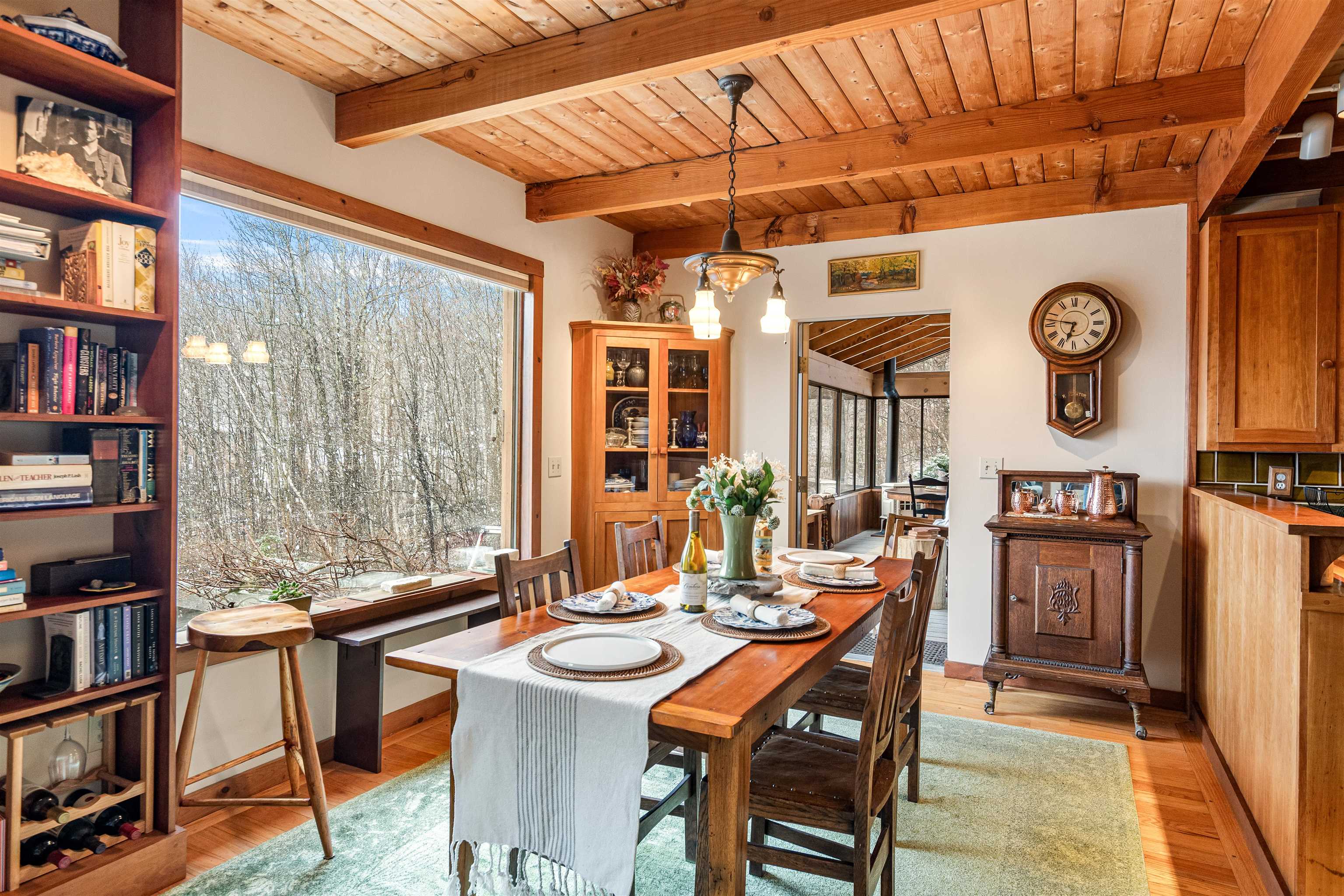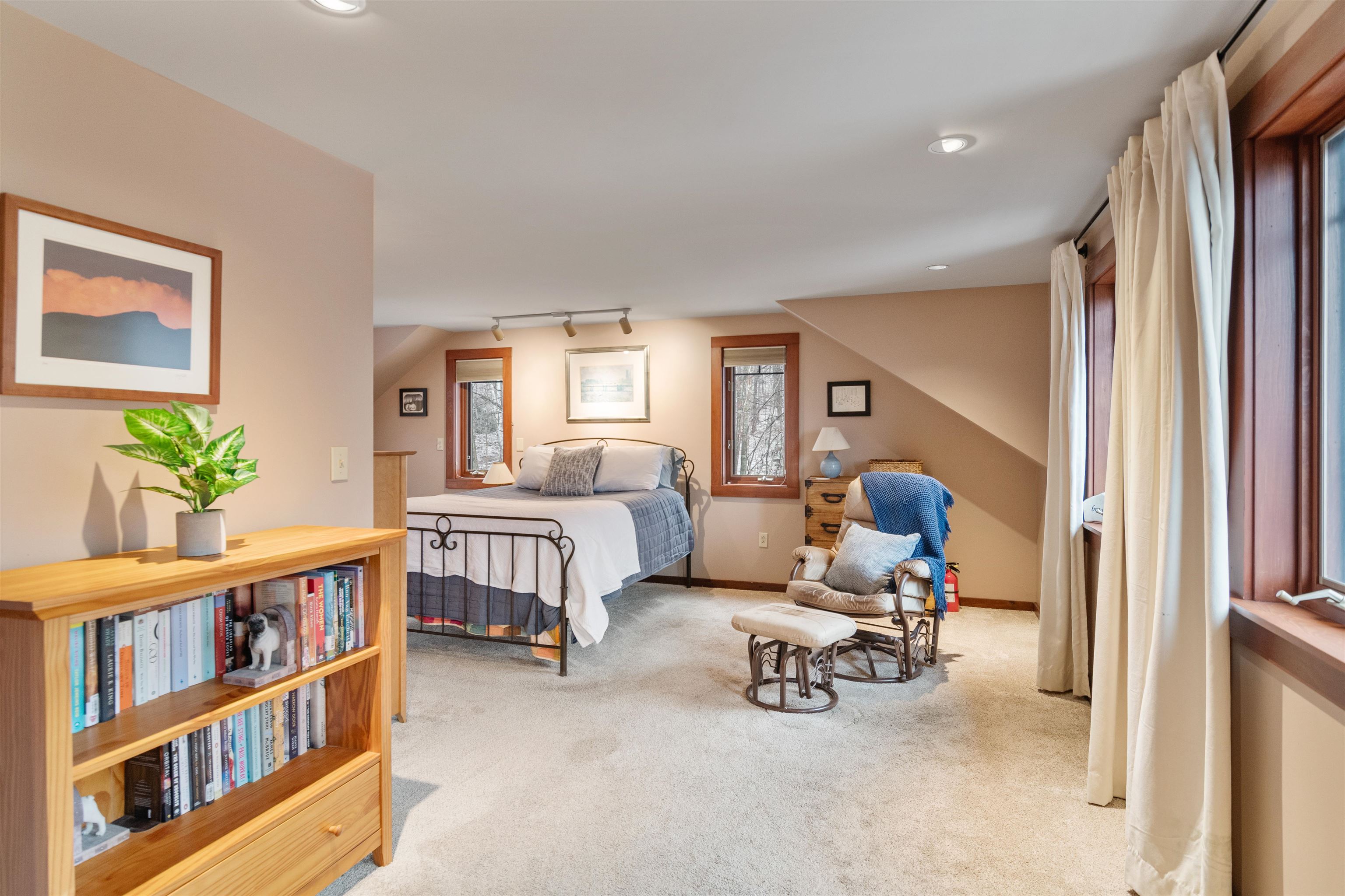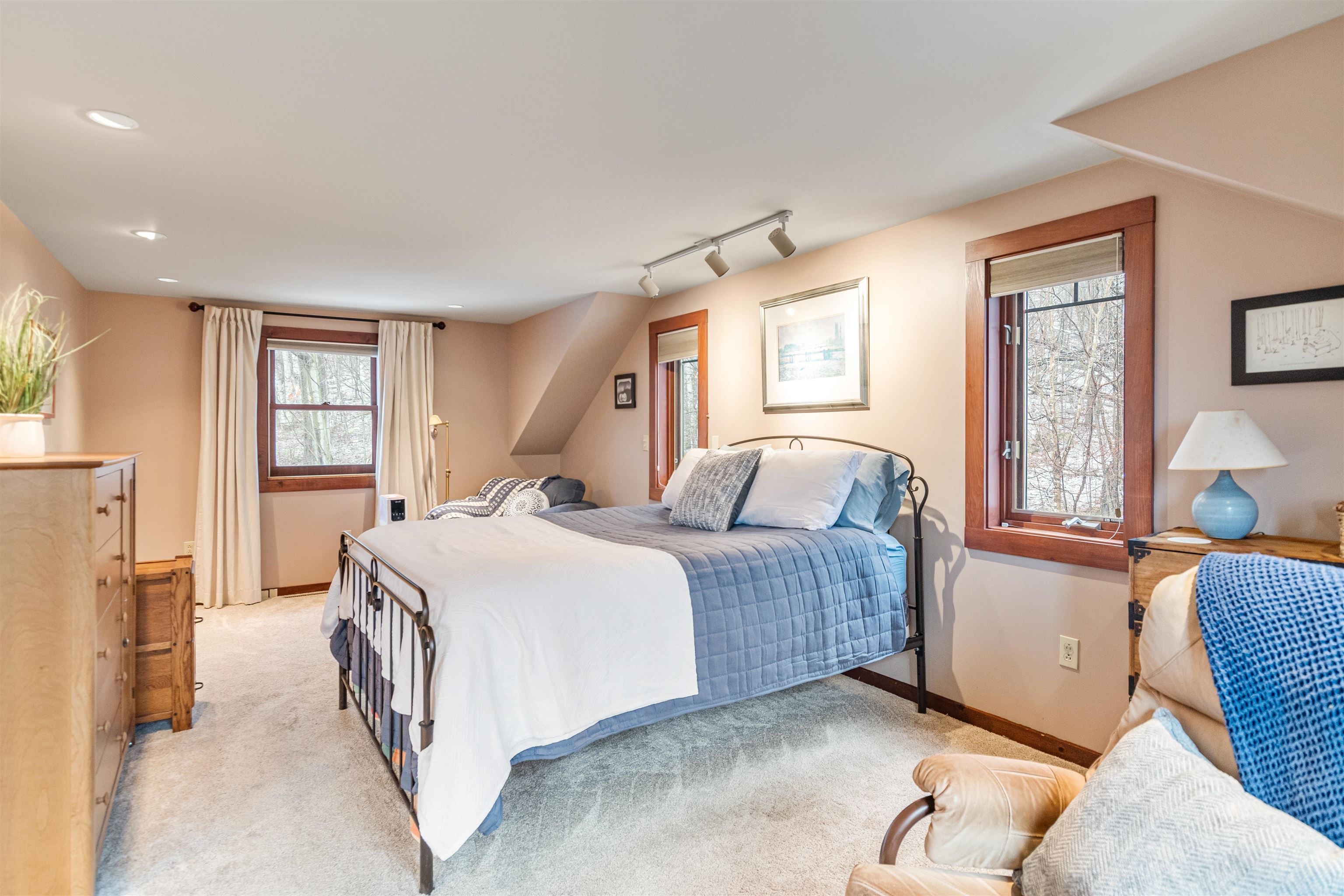 Tucked at the end of a private road on 10.1 acres, 6 Fox Lane blends architectural artistry with mountain serenity. This custom-built post & beam home offers sweeping, unobstructed views of Mt. Mansfield and Smugglers' Notch-preserved by design with no risk of future development interrupting your sightlines. Thoughtfully crafted and rich with character, the 3-bedroom, 4-bath residence showcases timeless materials-cherry, birch, and pine built-ins, reclaimed Winooski woolen mill doors, and vintage accents throughout. The efficient chef's kitchen features granite countertops, craftsman cabinetry, and a layout ideal for creativity and conversation. From the vaulted den to the 3-season porch with a gas stove, every space is designed to inspire. Unwind in the cedar-clad bath with an antique iron tub, or retreat to the expansive primary suite with a dedicated home office and a dual-bath configuration with two showers and two toilets for elevated privacy and convenience. A finished walkout basement offers flexible living or studio space, while the attached 2-car garage and private woodland trails add functionality and freedom. Outdoors, perennial gardens, stone walls, and a bluestone patio create a tranquil backdrop for dining or stargazing. Perimeter-mounted floodlights enhance both nighttime wildlife viewing and peace of mind, illuminating deer, moose, owls, and more. Just 20 minutes to ski resorts and tucked in a location that feels worlds away. |