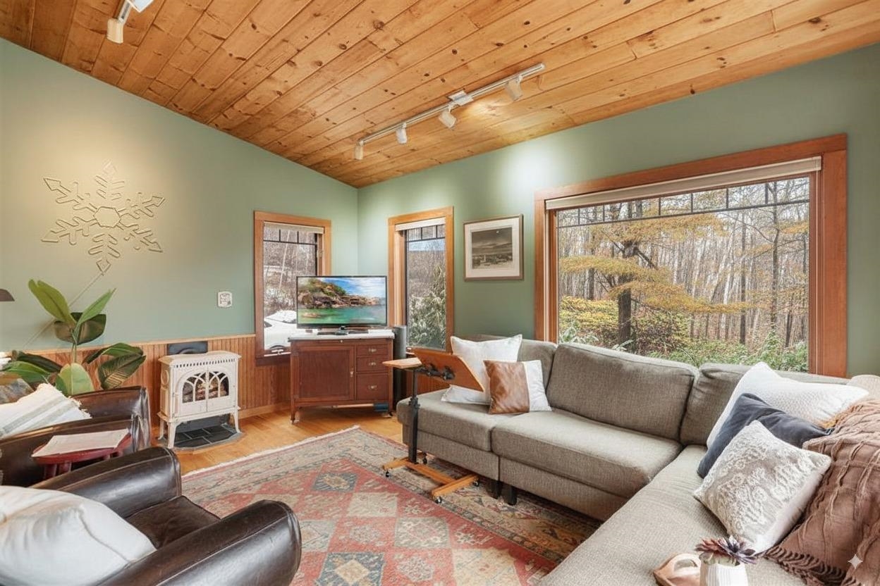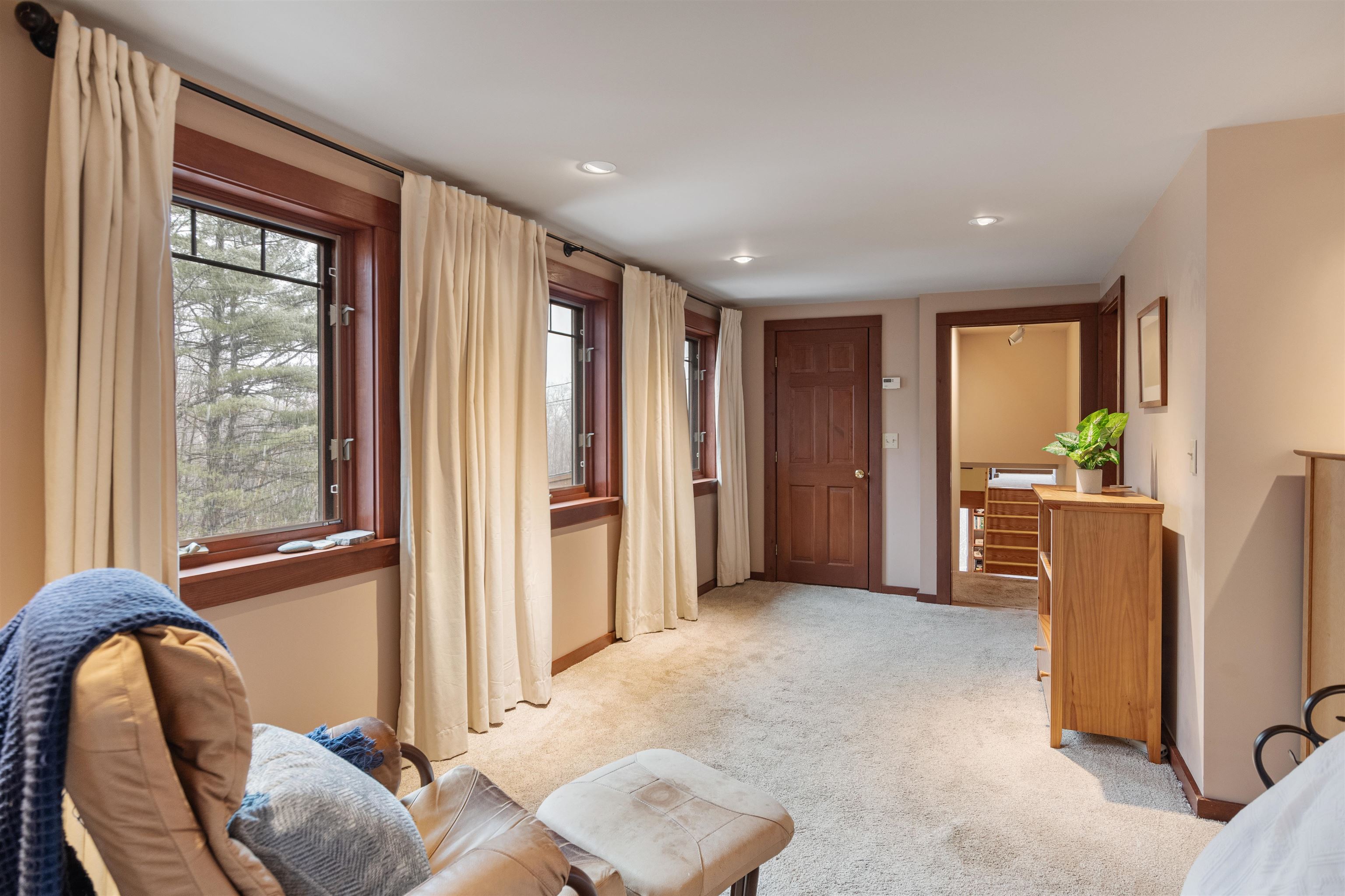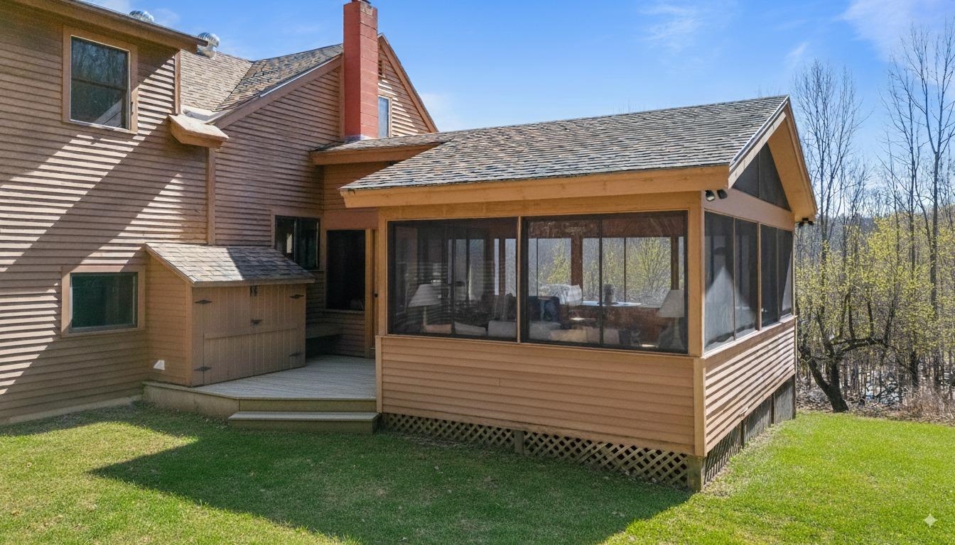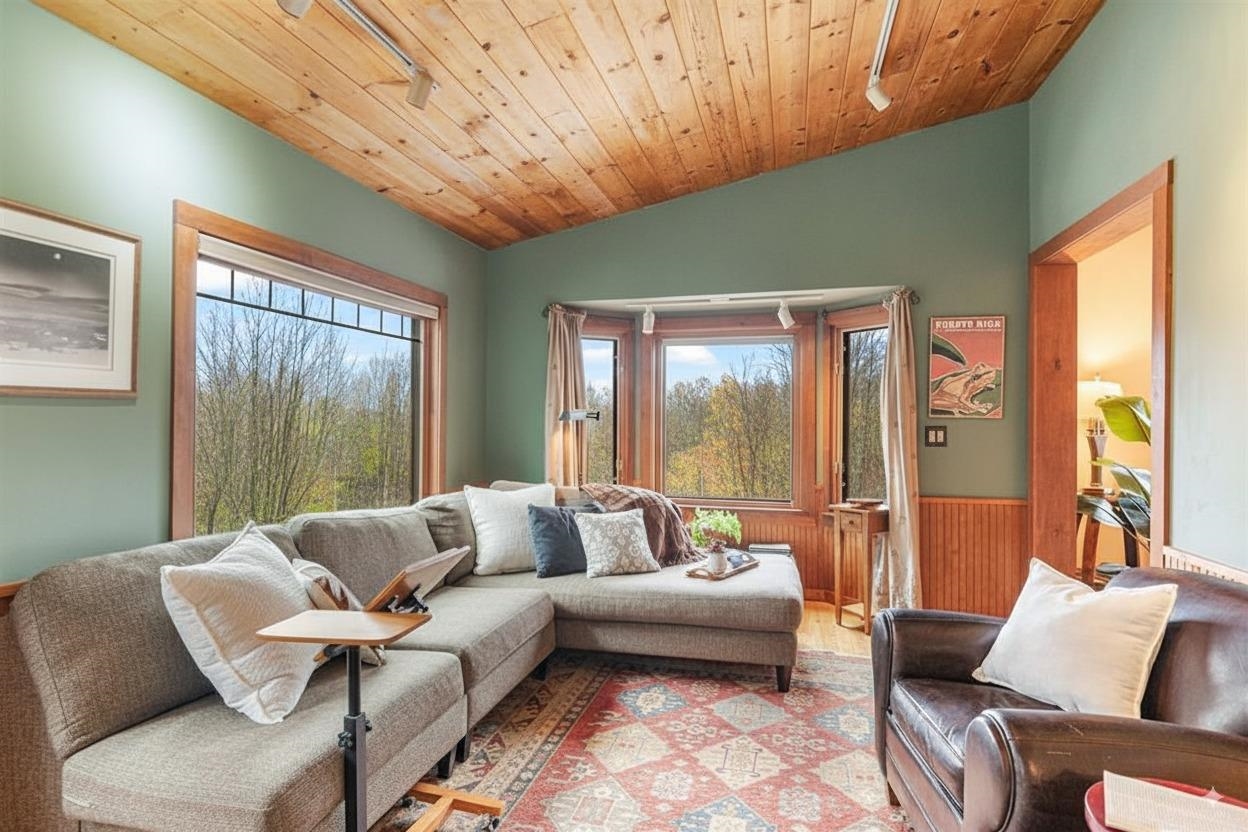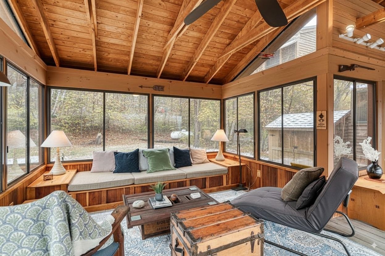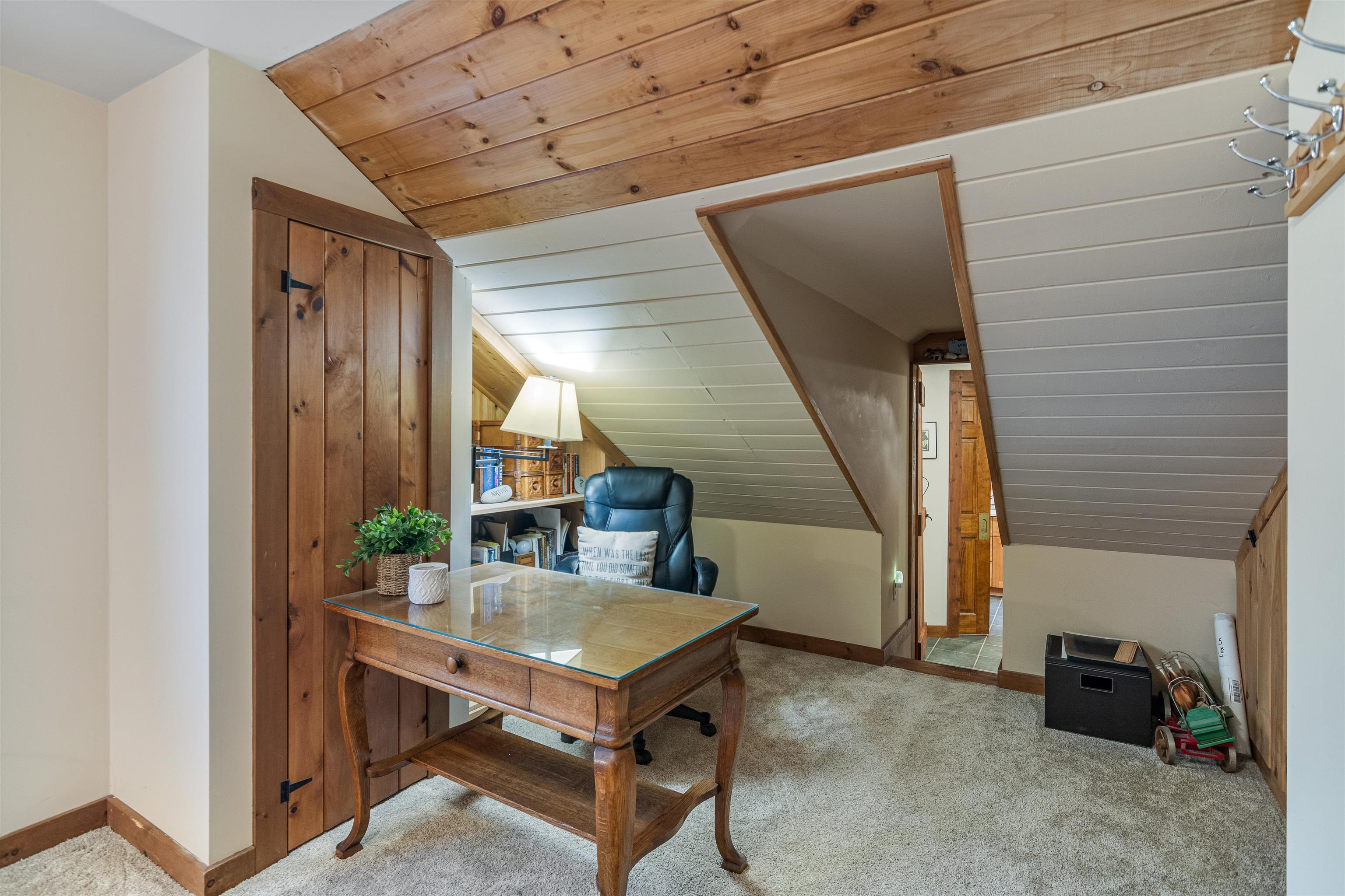 Tucked at the end of a private road on 10.1 acres, 6 Fox Lane blends architectural artistry with mountain serenity. This custom-built post & beam home offers sweeping, unobstructed views of Mt. Mansfield and Smugglers' Notch-preserved by design with no risk of future development interrupting your sightlines. Thoughtfully crafted and rich with character, the 3-bedroom, 4-bath residence showcases timeless materials-cherry, birch, and pine built-ins, reclaimed Winooski woolen mill doors, and vintage accents throughout. The efficient chef's kitchen features granite countertops, craftsman cabinetry, and a layout ideal for creativity and conversation. From the vaulted den to the 3-season porch with a gas stove, every space is designed to inspire. Unwind in the cedar-clad bath with an antique iron tub, or retreat to the expansive primary suite with a dedicated home office and a dual-bath configuration with two showers and two toilets for elevated privacy and convenience. A finished walkout basement offers flexible living or studio space, while the attached 2-car garage and private woodland trails add functionality and freedom. Outdoors, perennial gardens, stone walls, and a bluestone patio create a tranquil backdrop for dining or stargazing. Perimeter-mounted floodlights enhance both nighttime wildlife viewing and peace of mind, illuminating deer, moose, owls, and more. Just 20 minutes to ski resorts and tucked in a location that feels worlds away. |