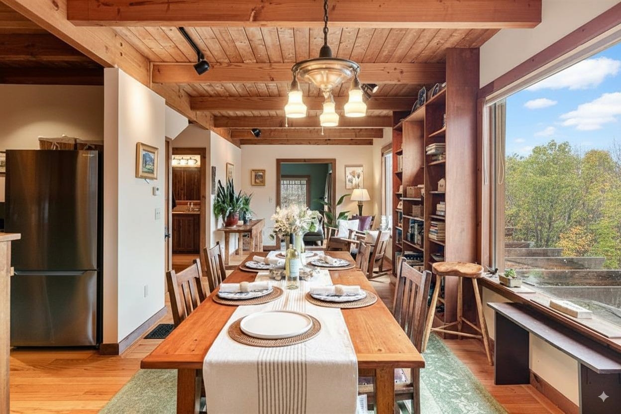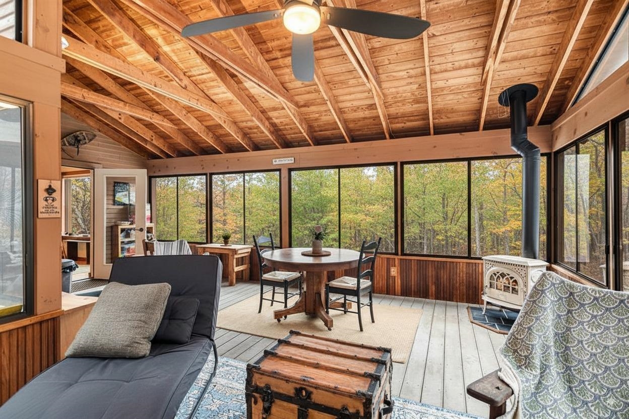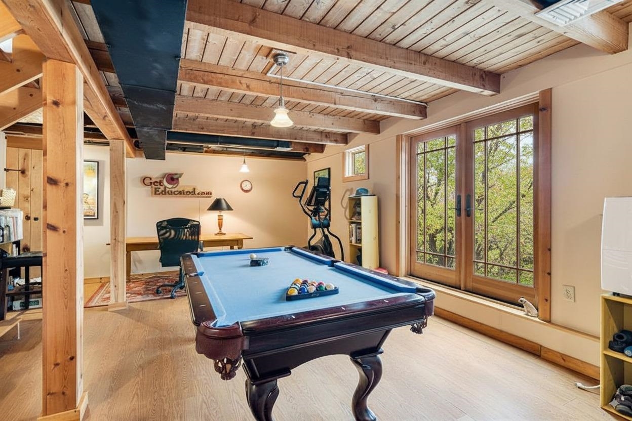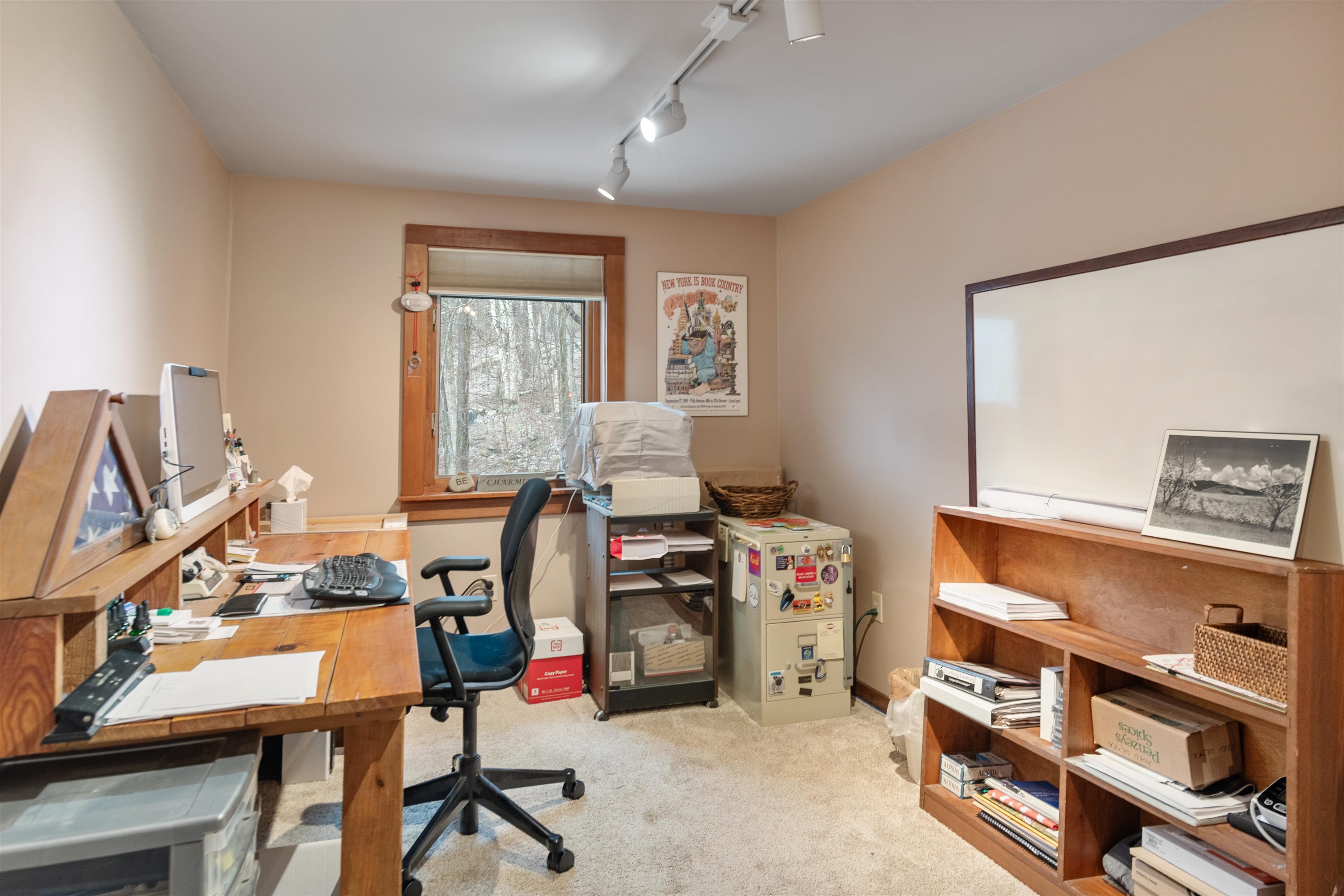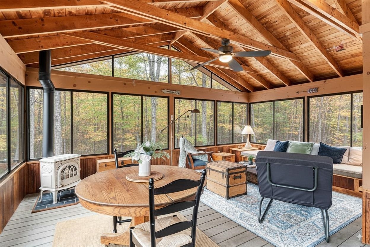 Tucked at the end of a private road on 10.1 acres, 6 Fox Lane blends architectural artistry with mountain serenity. This custom-built post & beam home offers sweeping, unobstructed views of Mt. Mansfield and Smugglers' Notch-preserved by design with no risk of future development interrupting your sightlines. Thoughtfully crafted and rich with character, the 3-bedroom, 4-bath residence showcases timeless materials-cherry, birch, and pine built-ins, reclaimed Winooski woolen mill doors, and vintage accents throughout. The efficient chef's kitchen features granite countertops, craftsman cabinetry, and a layout ideal for creativity and conversation. From the vaulted den to the 3-season porch with a gas stove, every space is designed to inspire. Unwind in the cedar-clad bath with an antique iron tub, or retreat to the expansive primary suite with a dedicated home office and a dual-bath configuration with two showers and two toilets for elevated privacy and convenience. A finished walkout basement offers flexible living or studio space, while the attached 2-car garage and private woodland trails add functionality and freedom. Outdoors, perennial gardens, stone walls, and a bluestone patio create a tranquil backdrop for dining or stargazing. Perimeter-mounted floodlights enhance both nighttime wildlife viewing and peace of mind, illuminating deer, moose, owls, and more. Just 20 minutes to ski resorts and tucked in a location that feels worlds away. |