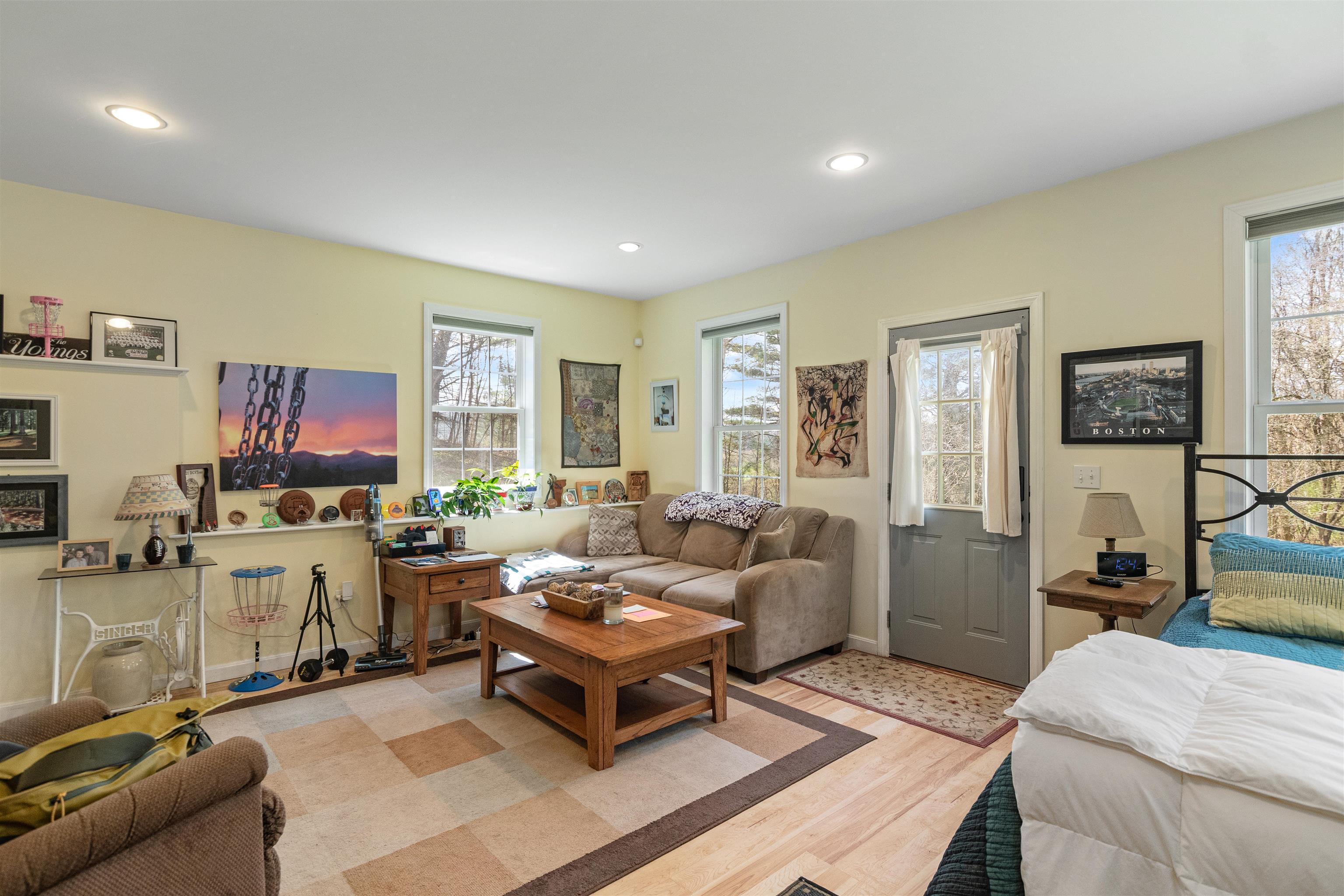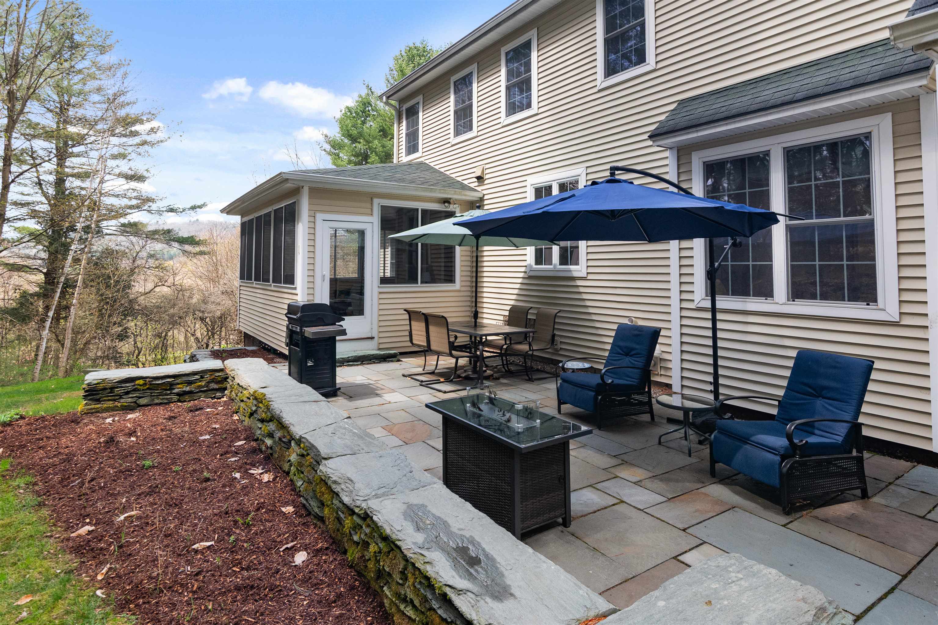 Charming 3-bedroom, 4-bath Cape-style home set on nearly 2.5 private acres on a quiet, private road. This inviting home is full of character, featuring arched doorways, high ceilings, and abundant natural light throughout. The large kitchen offers an oversized center island, perfect for cooking, entertaining, or gathering with family. The spacious primary bedroom includes a 3/4 en suite bath with a glass shower, while two additional well-sized bedrooms provide space for guests, family, or home office needs. A partially finished walkout basement adds flexible living space, ideal for a rec room, gym, or studio. Enjoy the peaceful wooded surroundings from the three-season porch or step out onto the beautiful flagstone patio for outdoor dining or relaxation. Mature trees offer privacy and a natural buffer, making the property feel like a secluded retreat. Located just minutes from I-89, the home offers the best of both quiet living and commuter convenience. A rare find combining charm, functionality, and a desirable location. |