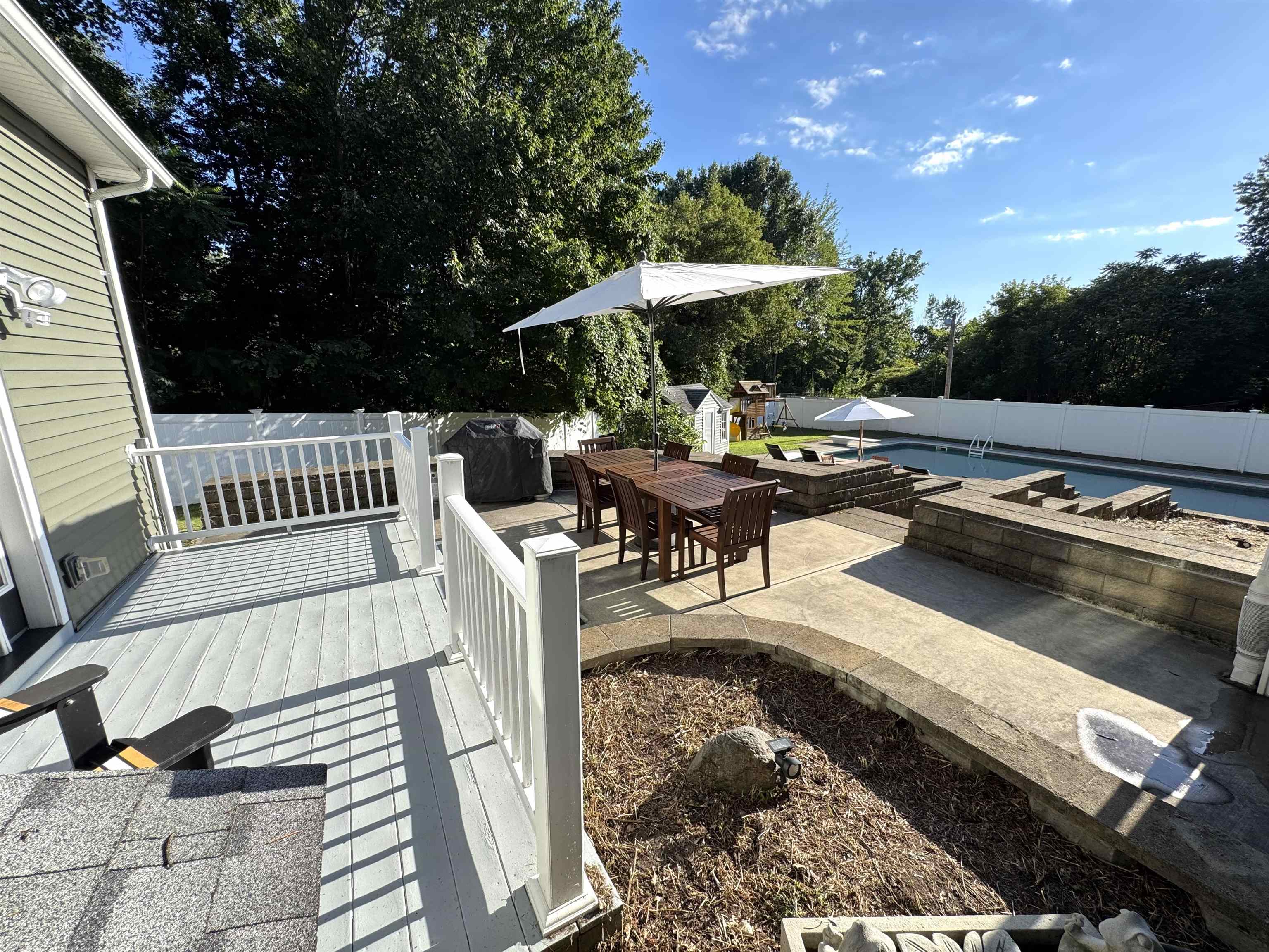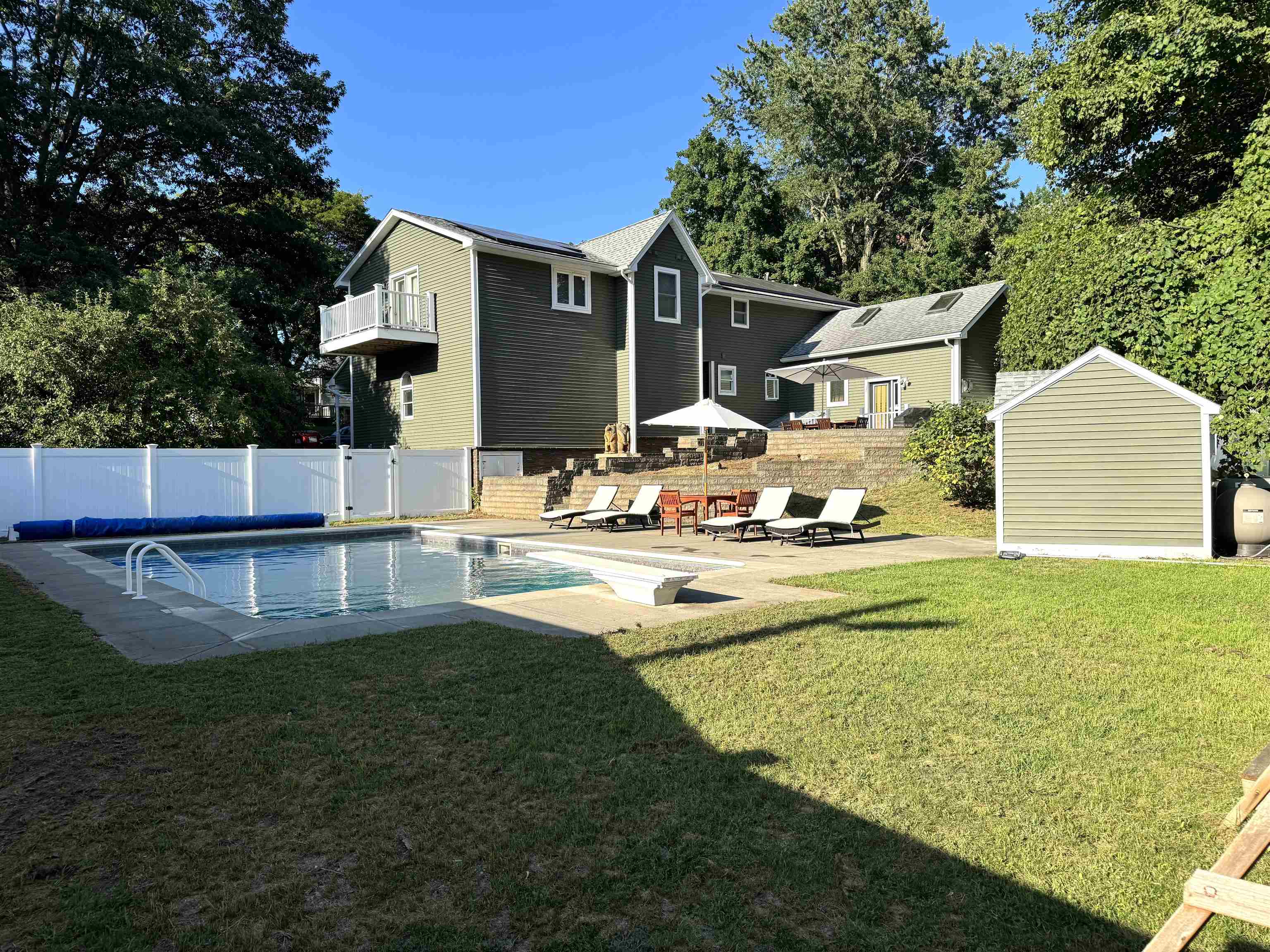 Welcome to your dream home in Colchester, VT! This 5-bedroom, 2.5-bath single-family gem offers over 3,300 sq ft of beautifully finished living space, with maple and bamboo hardwood floors in almost every room. Enjoy scenic mountain views from the private balcony off the primary suite. The home features an inviting Adirondack room with a vaulted ceiling and cozy gas fireplace-perfect for relaxing year-round. Step outside to your private oasis with an in-ground heated pool (40x20 with 8 foot deep end and diving board) and a lighted hockey/soccer rink area, ideal for active living and entertaining. Pool area is fully privacy-fenced and has multiple spacious concrete decking areas: one at the pool and and a second elevated dining area closer to the house. All patio/pool furniture and equipment included. The finished basement has a theater room, a bonus storage room as well as ample unfinished storage space and a second laundry room, also equipped with washer/dryer. The home is efficiently heated with a new boiler installed in 2025 and has mini-split air conditioning in the primary suite and the large bonus room. Don't miss this rare blend of comfort, recreation, and natural beauty in one of Colchester's most desirable locations! Approx. 8 min drive to UVM Medical Center, 10 min to Church Street/Downtown, 8 min to Costco and I-89, 7 minutes to Blakely Road 3-12 grade school district area, Bayside Park and the new Colchester Rec Center. Listing agent is seller and owner of home. |