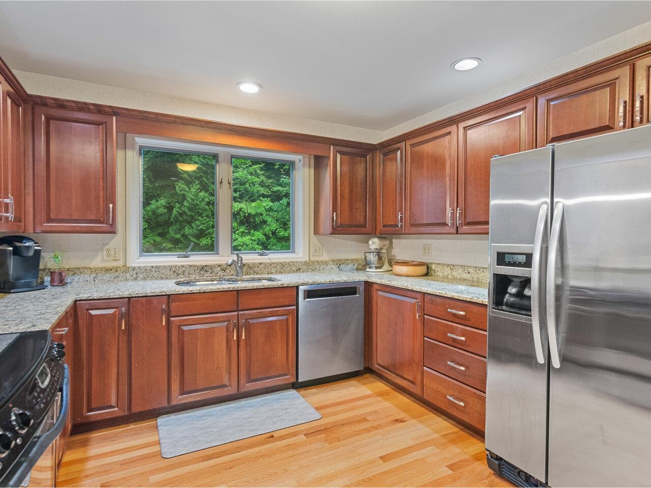Nestled in the highly desirable South Cove neighborhood in Burlington's South End, this contemporary 4-bedroom, 3-bath home is a rare opportunity to own a property that has been loved and well-maintained. Enjoy access to a coveted mooring spot and a private association beach in South Cove, ideally situated near the Burlington Bike Path, Red Rocks Park, and Oakledge Park - some of the South End's best spots. Step through the front door into a bright, welcoming living room that flows into a handsome formal dining room, perfect for hosting. The spacious kitchen features a Jenn Air electric range and overlooks the peaceful backyard and patio. Just beyond, a cozy family room with a wood-burning fireplace and tucked-away wet bar opens to a serene sunroom - creating a seamless indoor-outdoor flow ideal for entertaining. Everyday ease is elevated by a private garage-access elevator from the first-floor bedroom. A 3/4 bathroom and laundry are also located on the main living level. Upstairs, the expansive primary suite offers a walk-in closet and an en suite bath with a jetted tub and double sinks. Two more bedrooms and a storage closet complete the upper level. Outside, established garden beds bloom with perennials, and the tranquil backyard offers the perfect setting for relaxing or hosting a BBQ. The oversized 3-car garage includes a bay that once held a car lift and a workshop with additional storage space. This property is a rare find in a beloved neighborhood! |