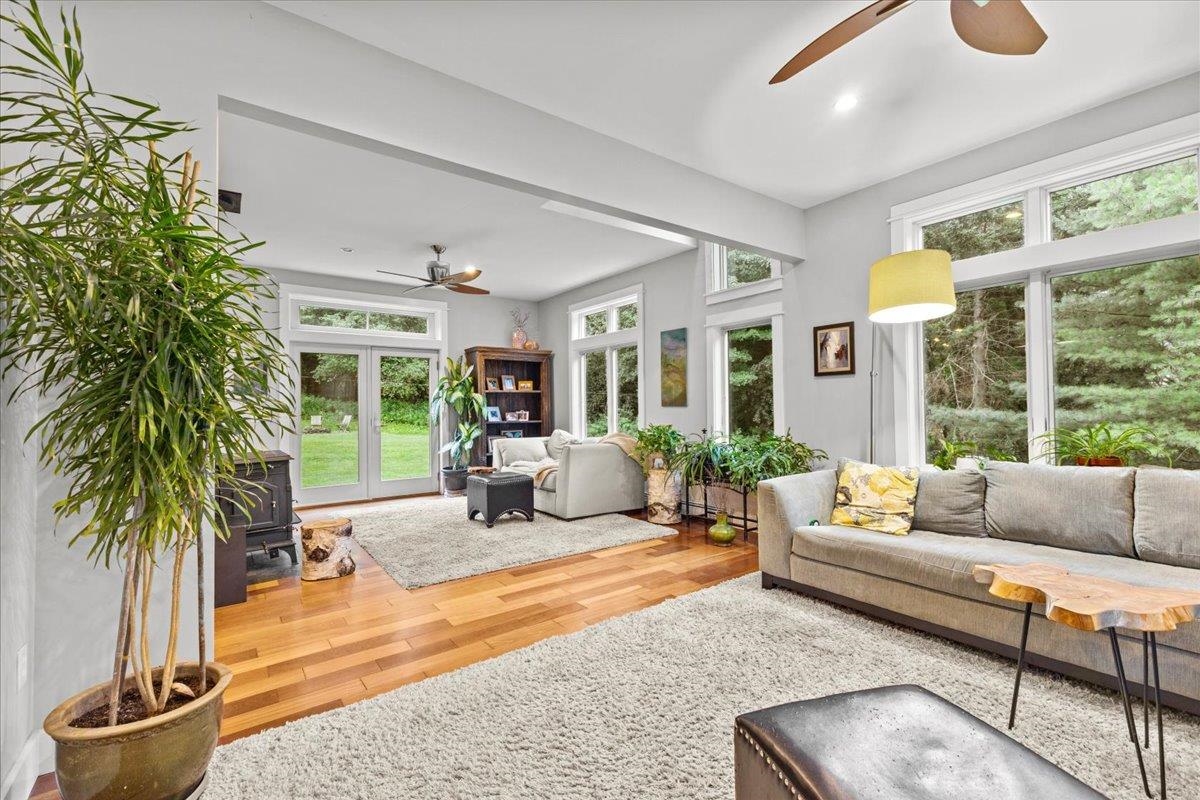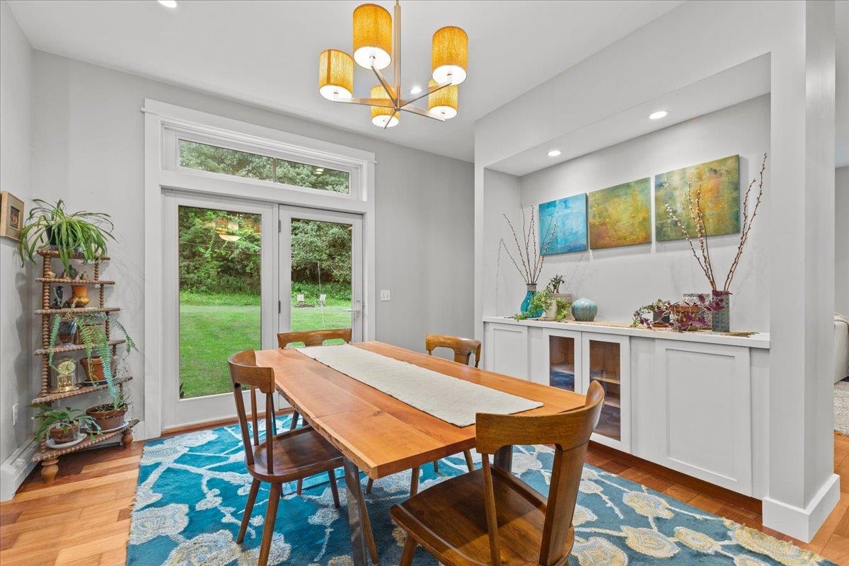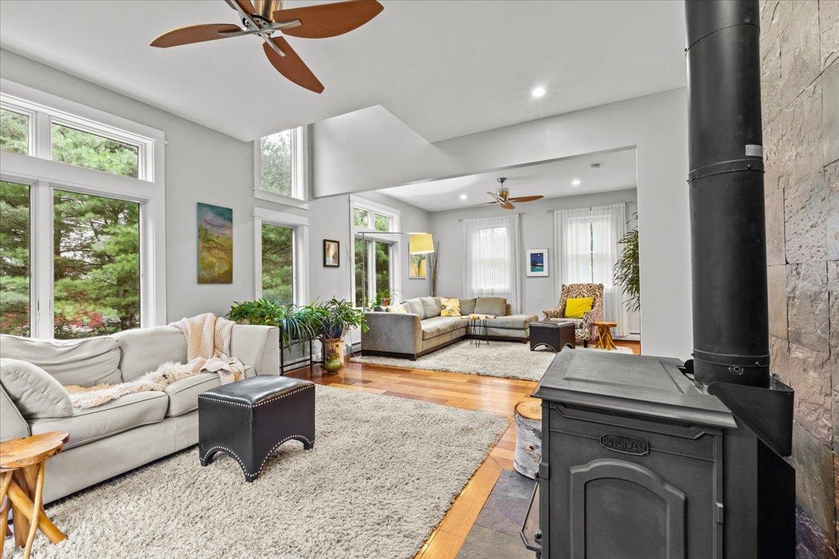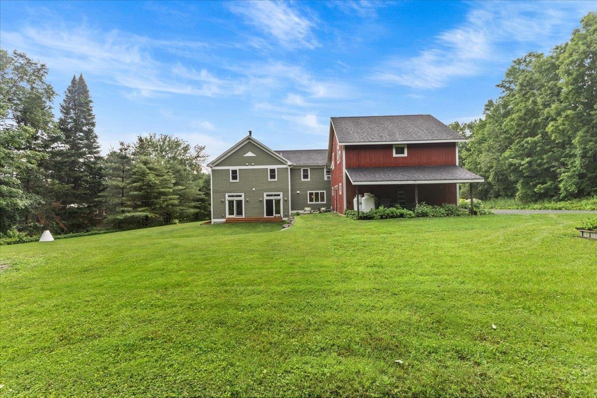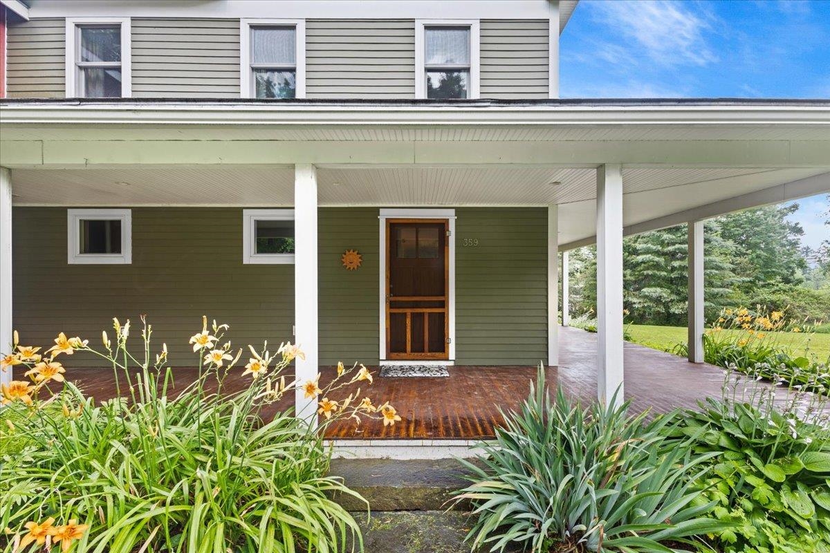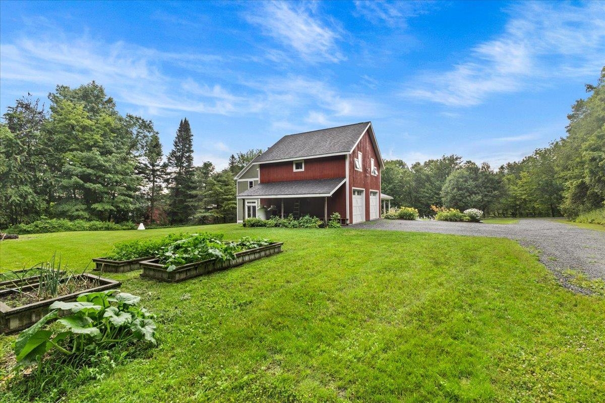 Welcome to this beautifully maintained 4-bedroom, 2.5-bathroom home, situated on 1.44 private, wooded acres. Offering a perfect blend of suburban convenience and rural charm, this home combines the classic farmhouse style with all of the modern amenities making it the ideal retreat for families or those seeking a peaceful, yet accessible, Vermont lifestyle. Step inside to find a warm and inviting interior. As you enter you are greeted by a mudroom and half bath with beautiful slate flooring. Next you find the open-concept kitchen featuring butcher block island, granite countertops, custom cabinets, stainless steel appliances and radiant heat. Step down to the dining area with built-ins which opens to the large living room with cozy wood stove and adjacent den. All three rooms feature gorgeous Brazilian cherry hardwood floors and the space has great natural light making perfect for entertaining or just hanging out. Upstairs, the primary suite includes a walk-in closet and en-suite bath with a tiled shower. It also has direct access to the bonus room above the garage making it a great remote work option. Three additional bedrooms provide ample space for family or guests. There is a full bath with double vanity & laundry on the second floor as well. The home's oversized barn style garage provides plenty of storage. The home's wrap around porch overlooks the phenomenal yard featuring beautiful mature landscaping. And to top it off, it is a short walk to historic Jericho Center! |