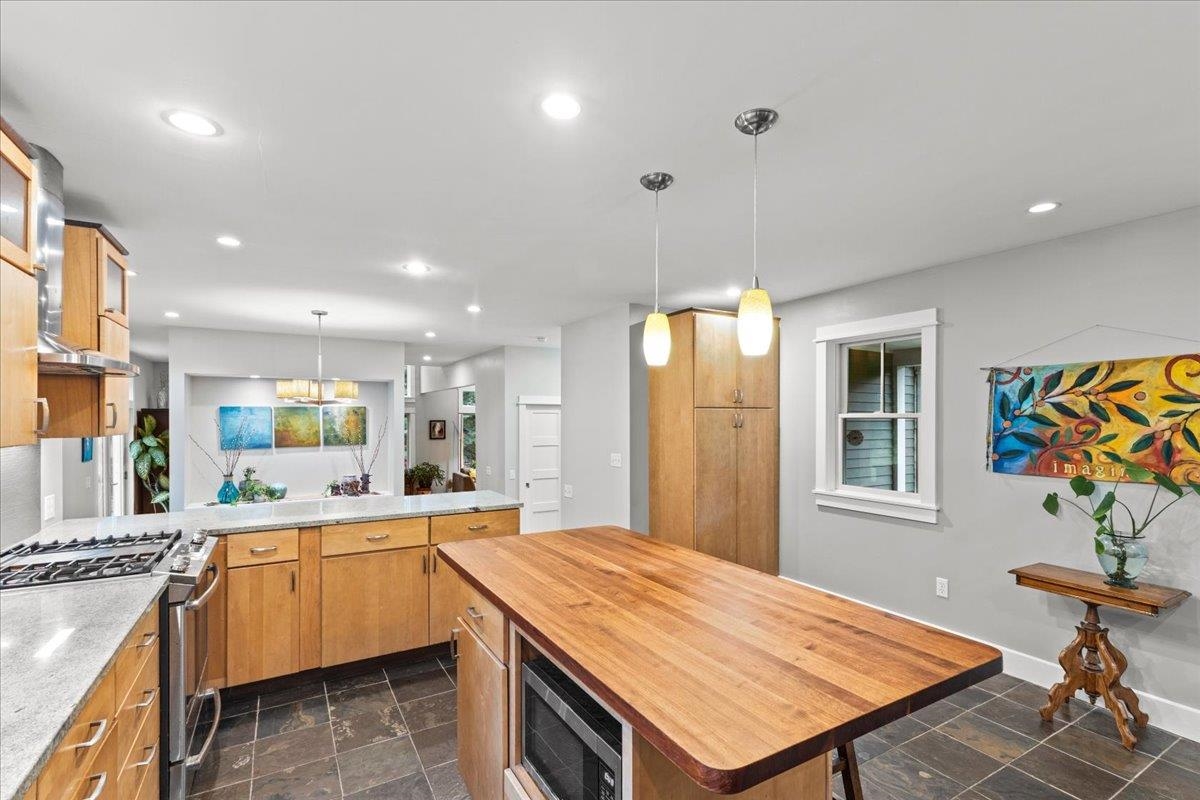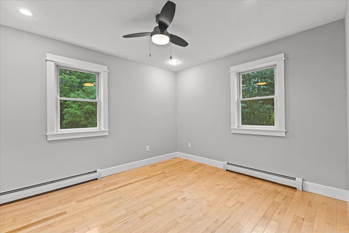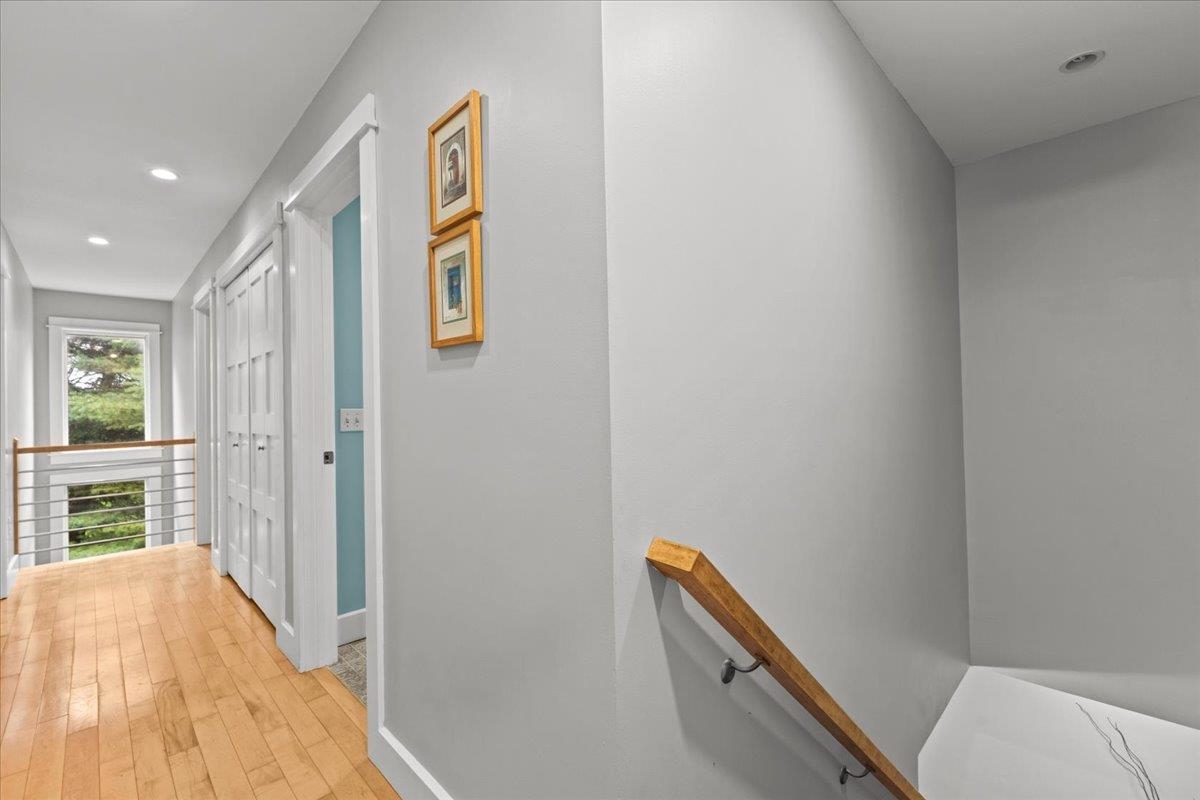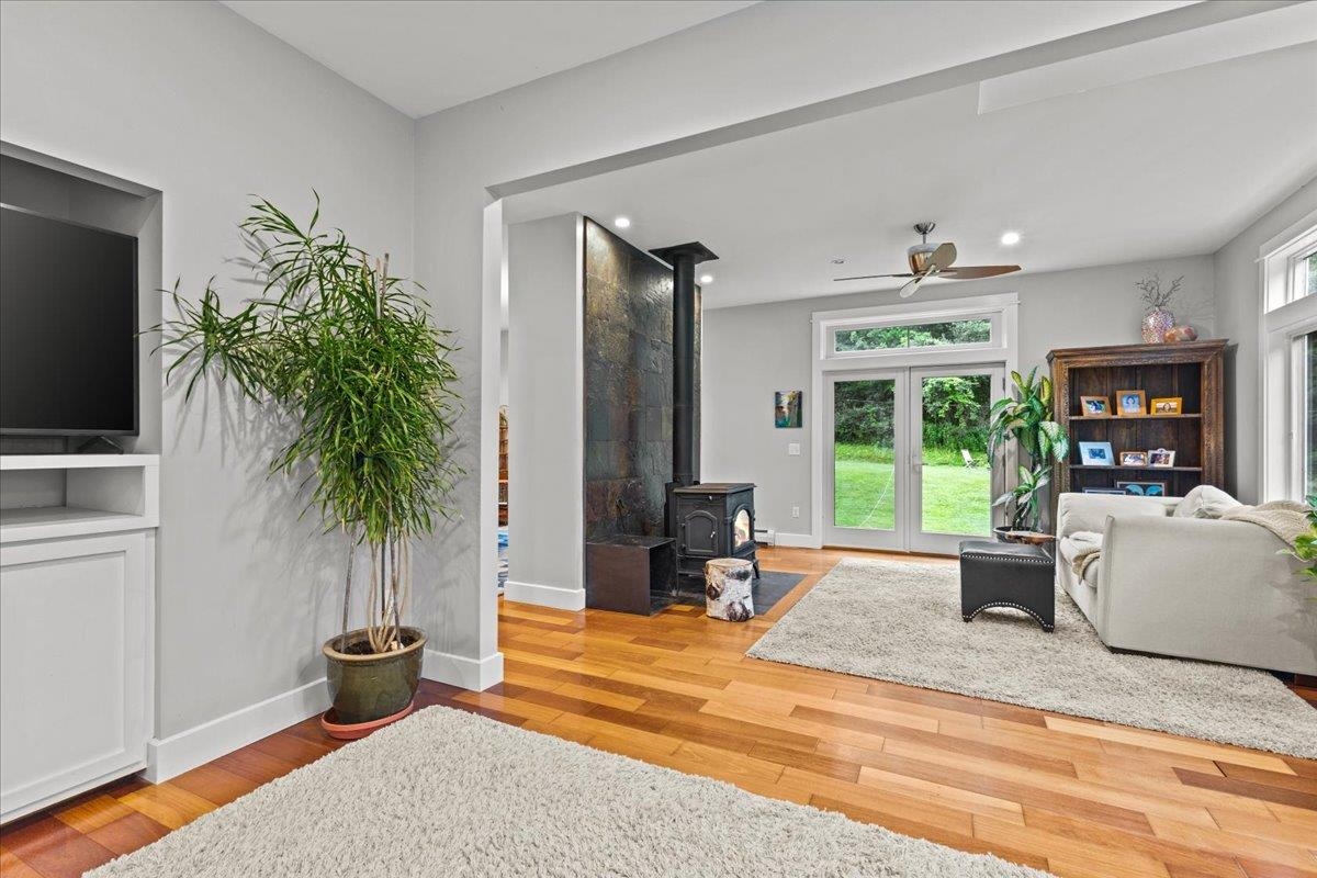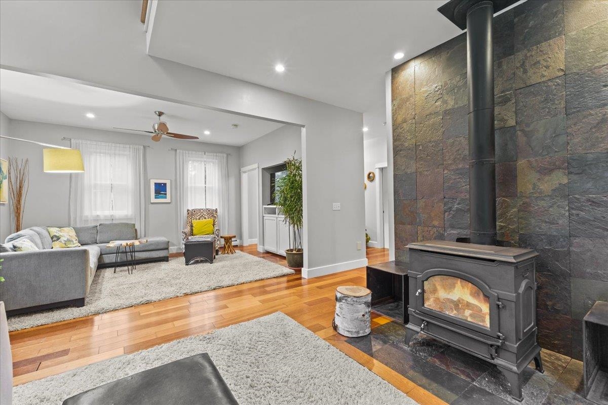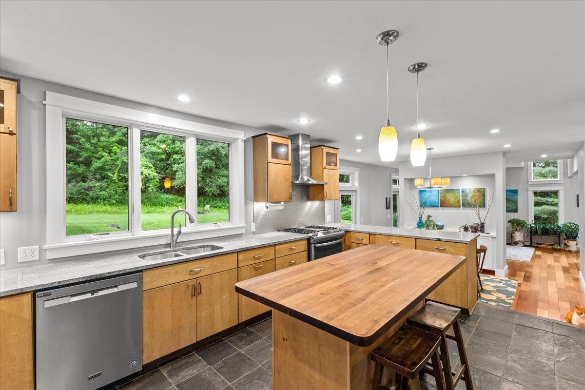 Welcome to this beautifully maintained 4-bedroom, 2.5-bathroom home, situated on 1.44 private, wooded acres. Offering a perfect blend of suburban convenience and rural charm, this home combines the classic farmhouse style with all of the modern amenities making it the ideal retreat for families or those seeking a peaceful, yet accessible, Vermont lifestyle. Step inside to find a warm and inviting interior. As you enter you are greeted by a mudroom and half bath with beautiful slate flooring. Next you find the open-concept kitchen featuring butcher block island, granite countertops, custom cabinets, stainless steel appliances and radiant heat. Step down to the dining area with built-ins which opens to the large living room with cozy wood stove and adjacent den. All three rooms feature gorgeous Brazilian cherry hardwood floors and the space has great natural light making perfect for entertaining or just hanging out. Upstairs, the primary suite includes a walk-in closet and en-suite bath with a tiled shower. It also has direct access to the bonus room above the garage making it a great remote work option. Three additional bedrooms provide ample space for family or guests. There is a full bath with double vanity & laundry on the second floor as well. The home's oversized barn style garage provides plenty of storage. The home's wrap around porch overlooks the phenomenal yard featuring beautiful mature landscaping. And to top it off, it is a short walk to historic Jericho Center! |
