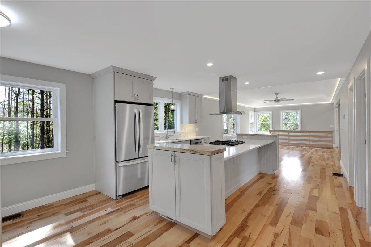 Welcome to 49 Hemlock Circle in Jericho - a stunning new construction home designed for modern comfort and Vermont living. This thoughtfully crafted 3-bedroom, 2-bath home sits on 2.3 acres in a private subdivision, complete with an additional 80 acres of common land to explore. Perfect for the outdoor enthusiast, you'll have mountains, trails, and year-round recreation right at your fingertips. Inside, you're greeted by beautiful hardwood floors, abundant natural light, and an open-concept layout that blends style and function. The dining area flows seamlessly into the gourmet kitchen, featuring an oversized island ideal for entertaining while preparing meals. The kitchen opens to the vaulted great room, anchored by a cozy gas fireplace - the perfect gathering spot in every season. The primary suite is a private retreat with vaulted ceilings, a spa-like en suite bath, and direct access to the covered porch, also connected to the main living area for easy indoor-outdoor living. Two additional bedrooms provide flexibility for family, guests, or office space. The lower level offers a spacious finished rec room, while the large bonus room above the oversized 2-car garage is perfect for a home office, studio, or gym. Central AC adds year-round comfort. Set in a peaceful, rural location yet just minutes from I-89, Essex, and Williston, this home offers the best of both worlds - quiet country living with easy access to local conveniences. Experience the Vermont lifestyle! |