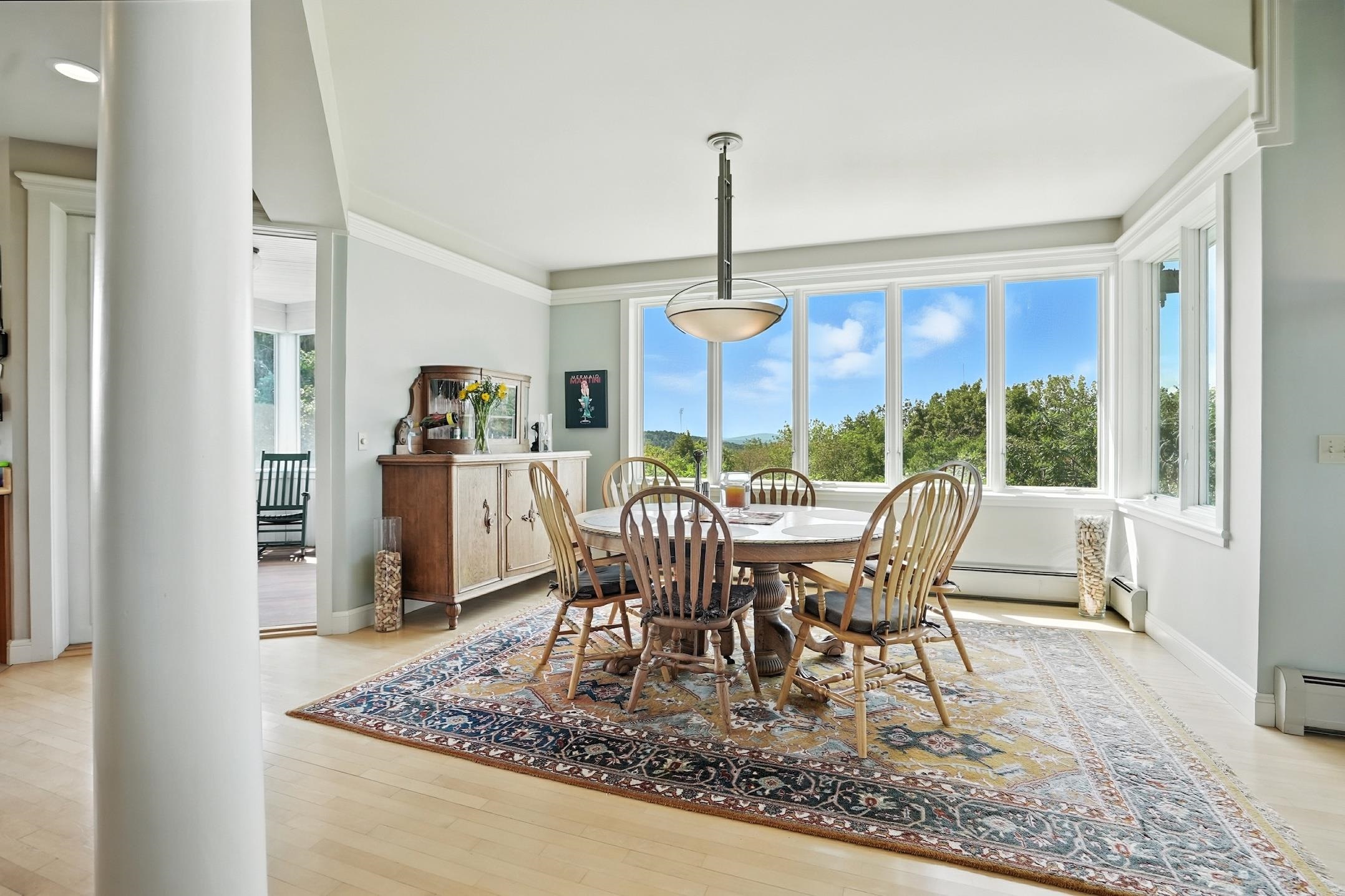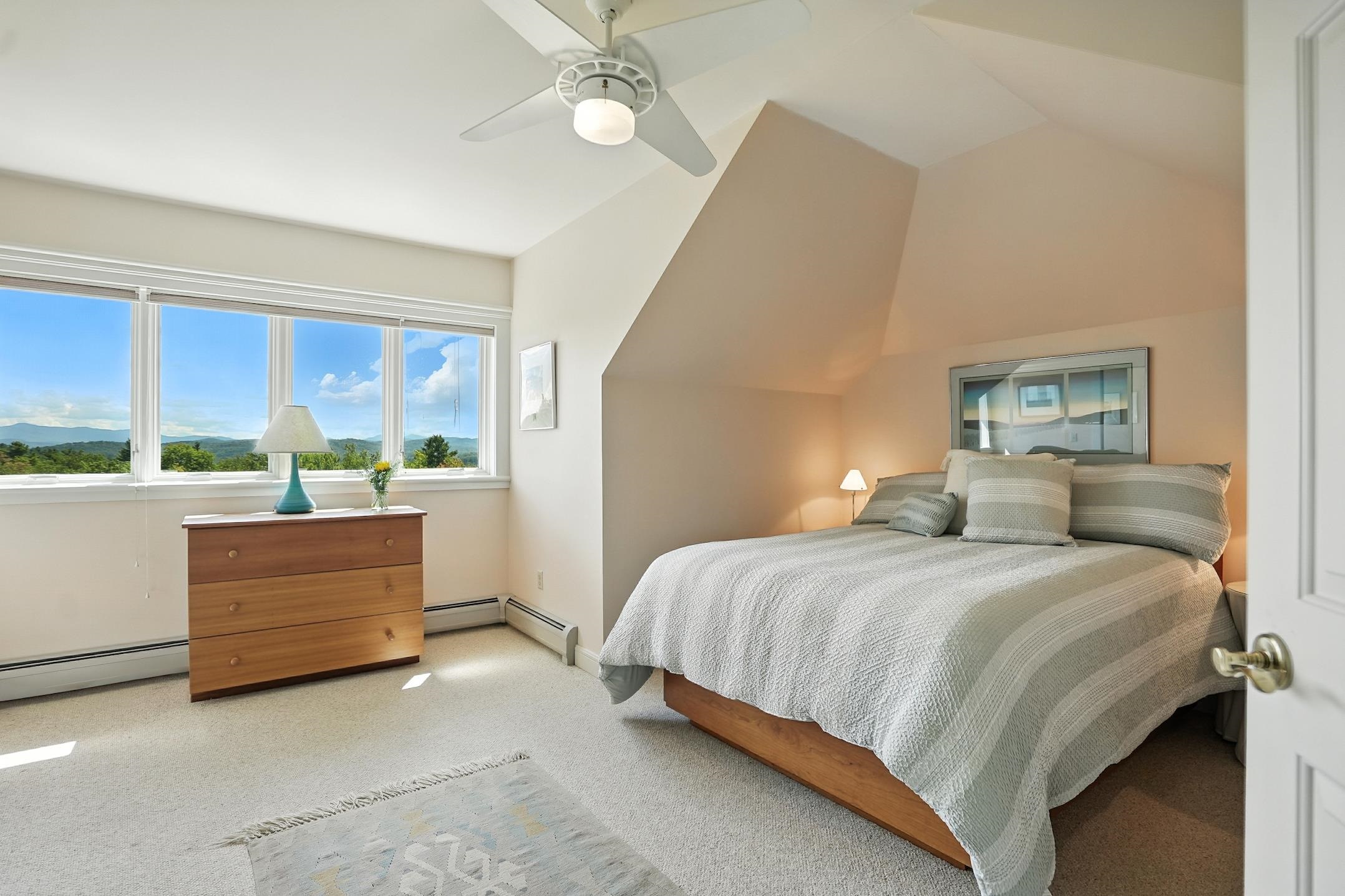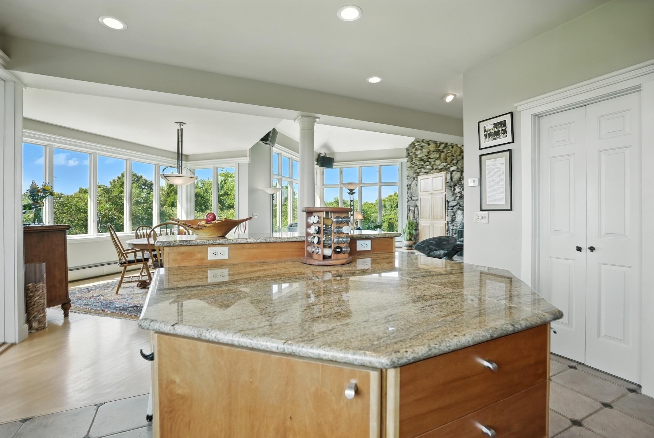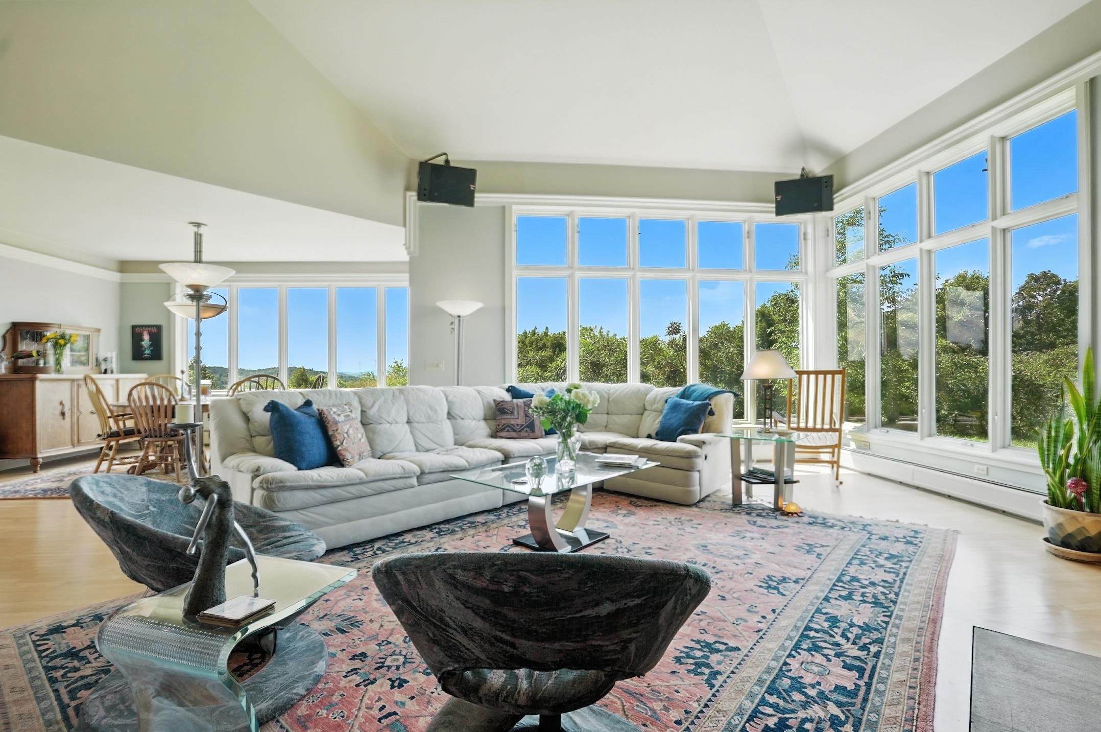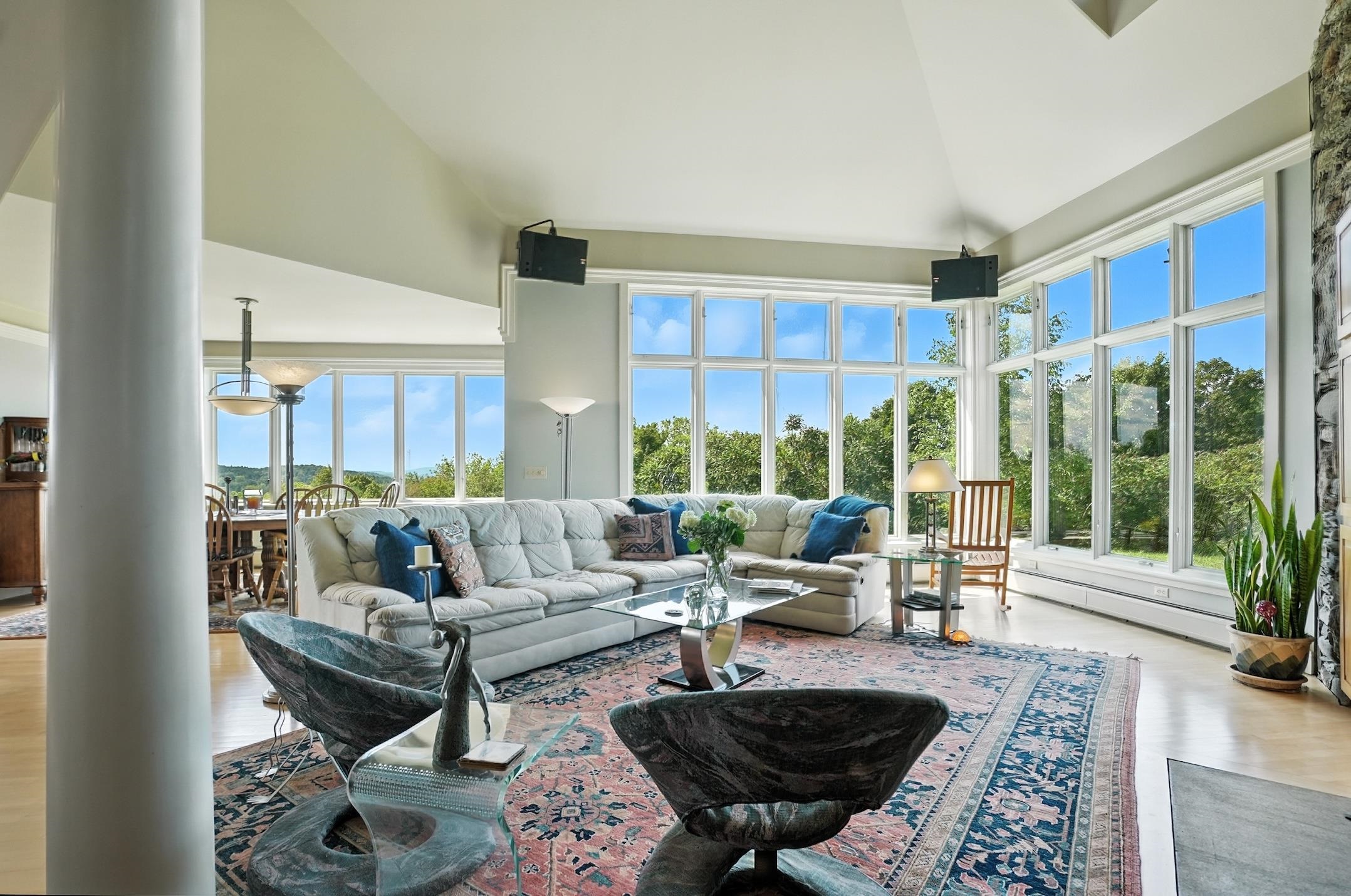 Perched atop Nob Hill Road on 6.49 private acres, this custom-built craftsman home was designed to capture Vermont's natural beauty with abundant sunlight, sweeping views, and complete privacy. Quality is evident throughout with a solid 8ft mahogany entry door, Pella windows, and gleaming hardwood floors complement the home's layout. The stunning living room features a two-story ceiling, walls of glass, and a dramatic fieldstone wall built with stones repurposed from an existing stone wall on the property. The heart of the home is the recently updated kitchen with custom maple and cherry cabinetry by local craftsman Tom Moore, an oversized granite island, Sub-Zero refrigerator, and Viking range-perfect for gatherings large or small. The main-level primary suite is a serene retreat with a spa-like bath, tiled walk-in shower and oversized walk-through closet. A spacious mudroom and laundry area with direct access to a fenced dog run adds everyday convenience. Upstairs, a sunlit landing overlooks the living room with breathtaking mountain views, alongside two bedrooms and a full bath. A large unfinished bonus room with dormers offers endless potential for a home office, gym, or studio. The walkout lower level provides additional space for a workshop or recreation space. Offering a rare blend of seclusion and accessibility, this home is just minutes from Williston Village, Burlington International Airport, and UVM Medical Center. Winner of the 1995 Better Homes Award-SF Home. |