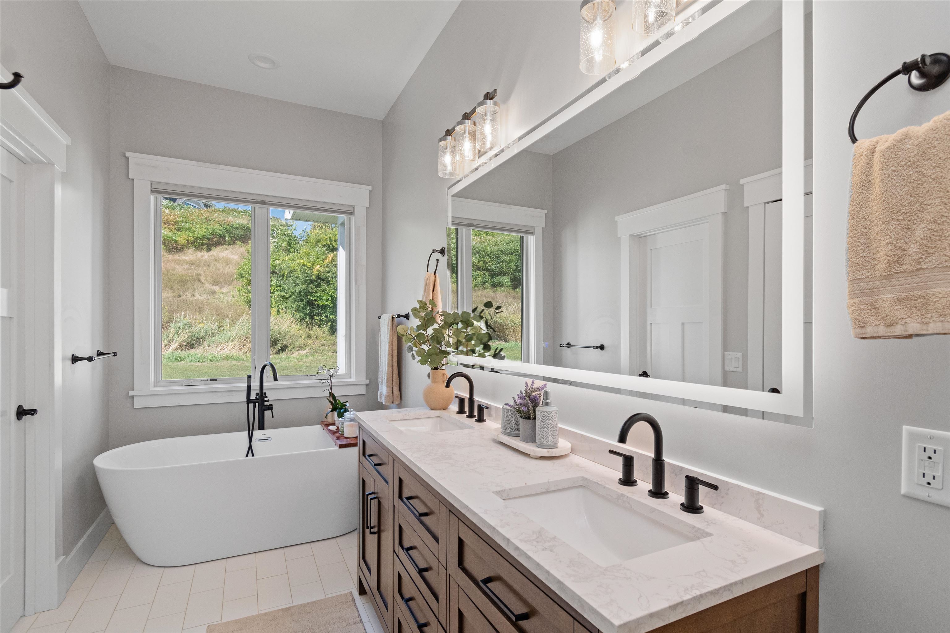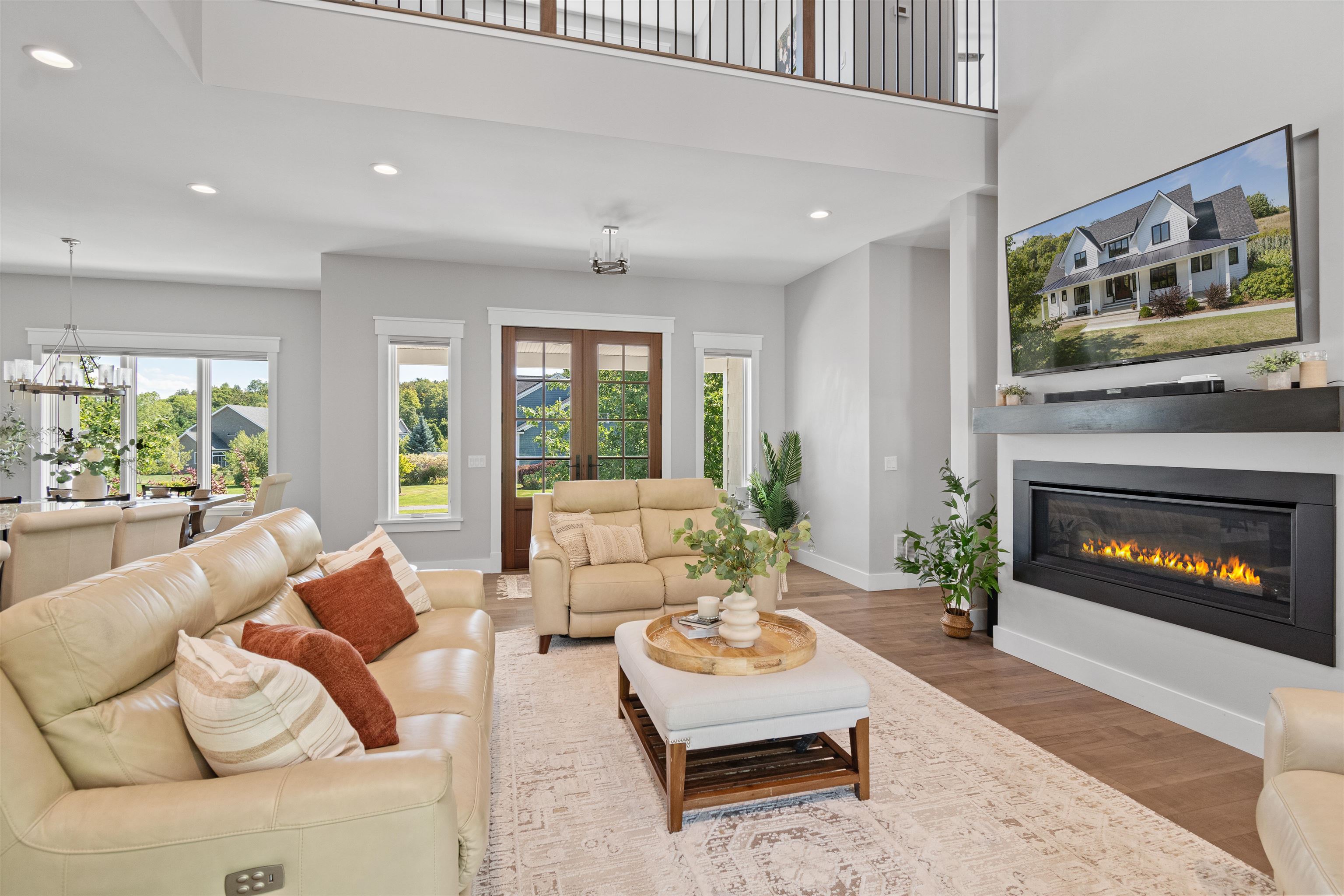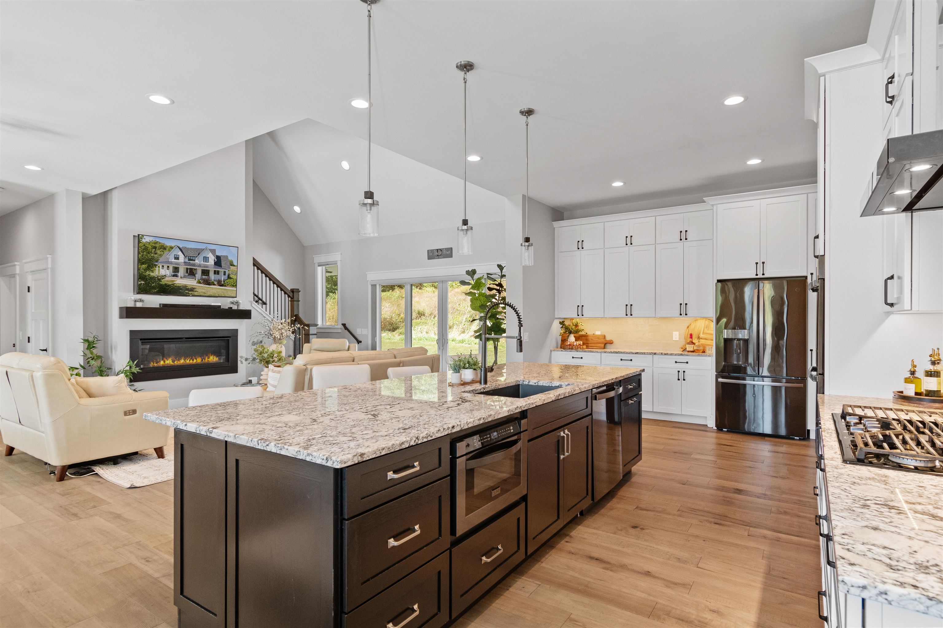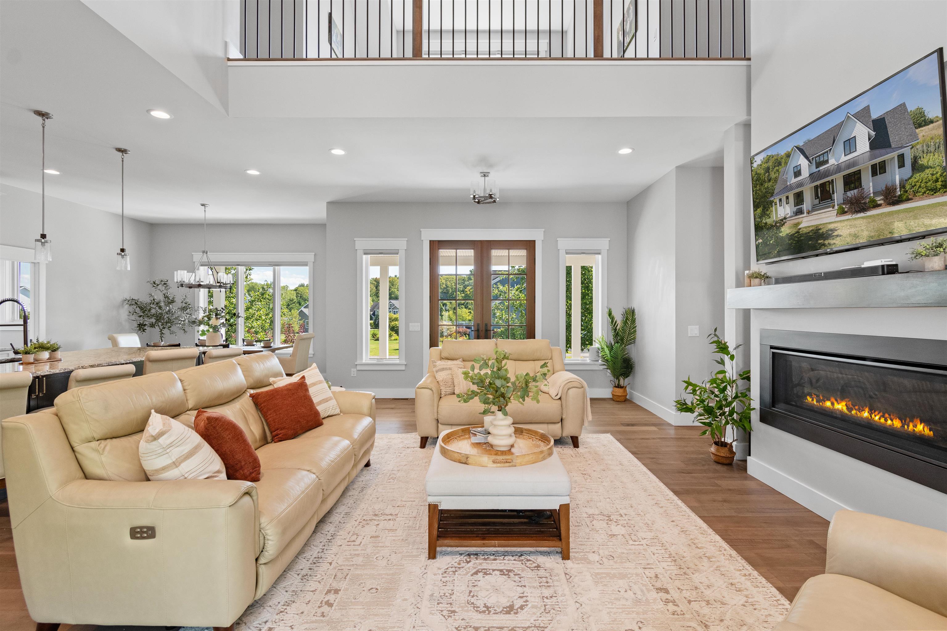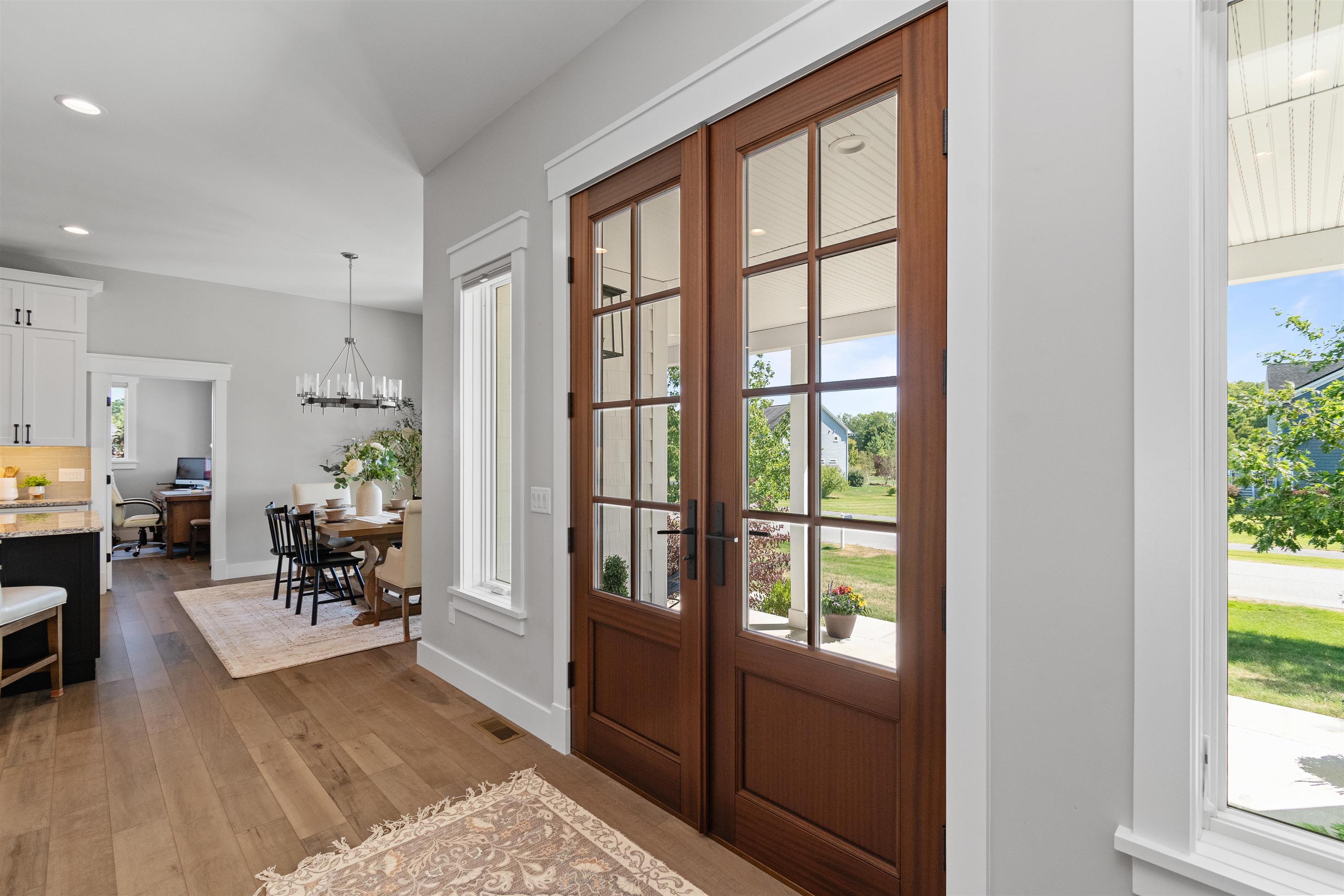 This stunning modern farmhouse blends timeless design, thoughtful craftsmanship, and luxury upgrades in the highly desirable Outer Bay at Marble Island. Enjoy evenings on trails, mornings kayaking, afternoons by the pool, and weekends exploring Lake Champlain. With 3 lake access points, pool, tennis & pickleball, and a public marina, the community offers the perfect balance of recreation and relaxation. Every detail of this home was designed for both beauty and function. A long driveway leads to a welcoming front porch and grand Mahogany French doors. Inside, 10' ceilings, a soaring great room, and Marvin black casement windows fill the open layout with natural light. The chef's kitchen showcases a 12' island, quartz counters, double-stacked cabinets, LG black stainless appliances, double oven, gas cooktop, and a walk-in pantry with 2nd fridge. The 1st-floor primary suite offers a walk-in closet, spa bath, 2-person shower, soaking tub, dual vanities, and porch access with ceiling fans and gas hookup. A 2nd en-suite for guests, while an office, mudroom, and laundry provide everyday convenience. Upstairs, a loft overlooks the great room and connects to 5 more rooms, including a 3rd en-suite, the 4th bedroom with shared bath with 2 flex rooms, and a private bonus suite with its own garage entry. Extras include dual-zone HVAC system, copper piping, whole-house generator, heated/insulated garage, Hunter Douglas window treatments, and a 9' basement ceiling with bath rough-in. |