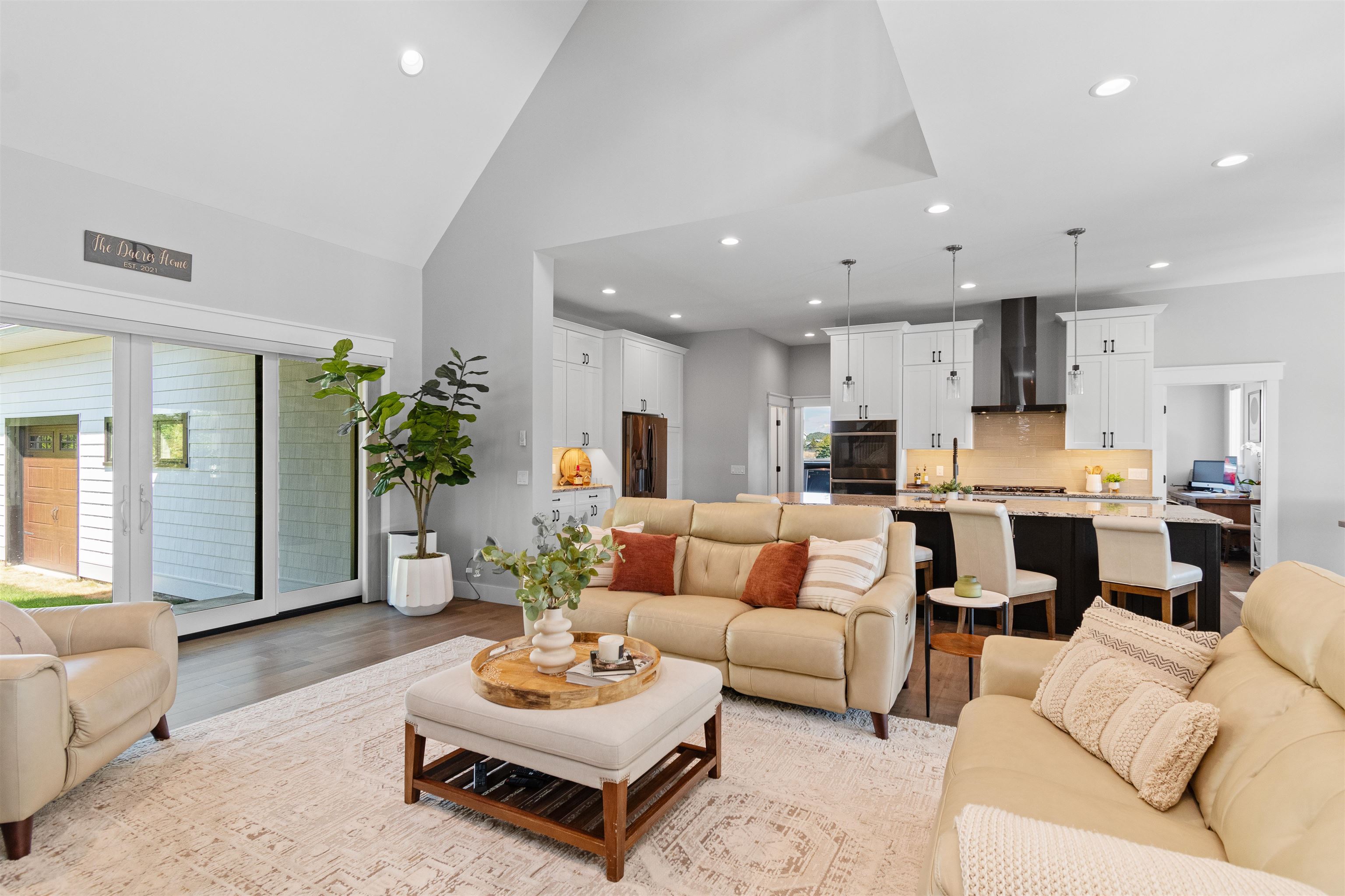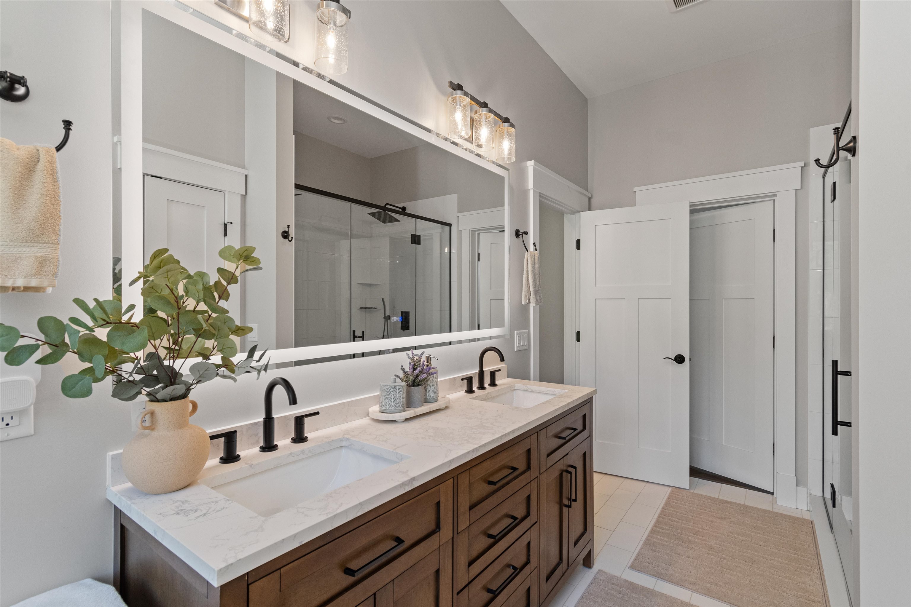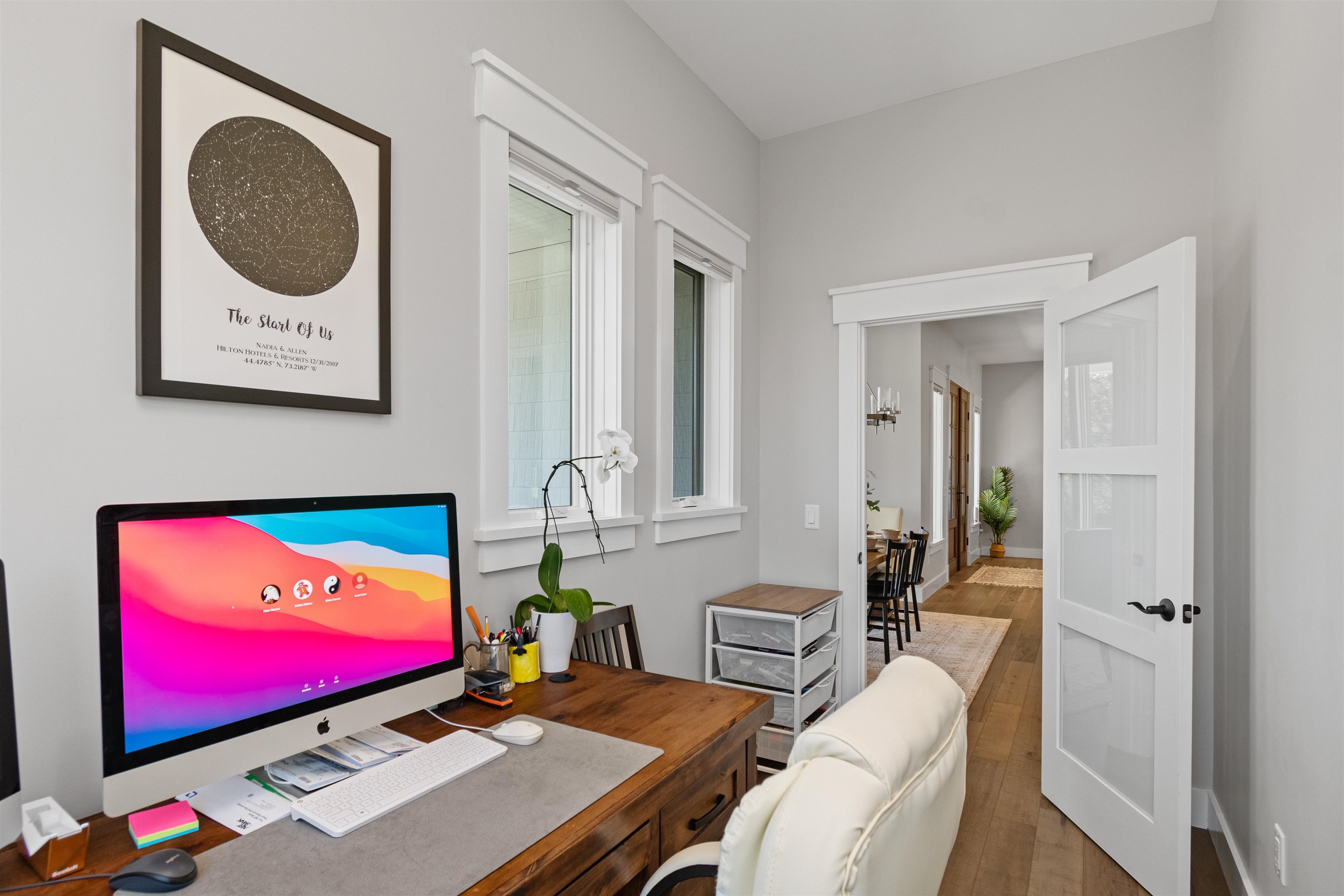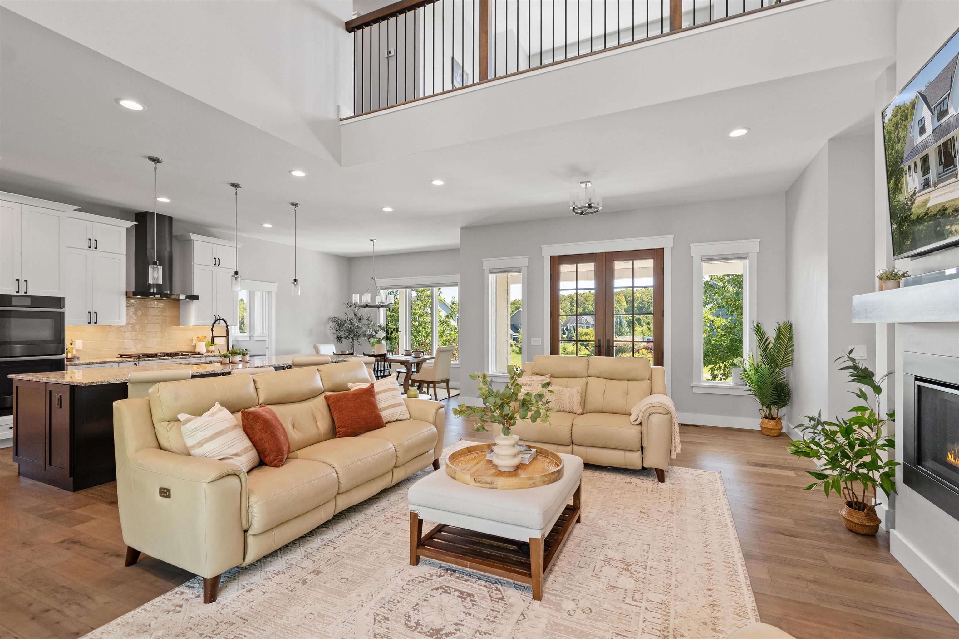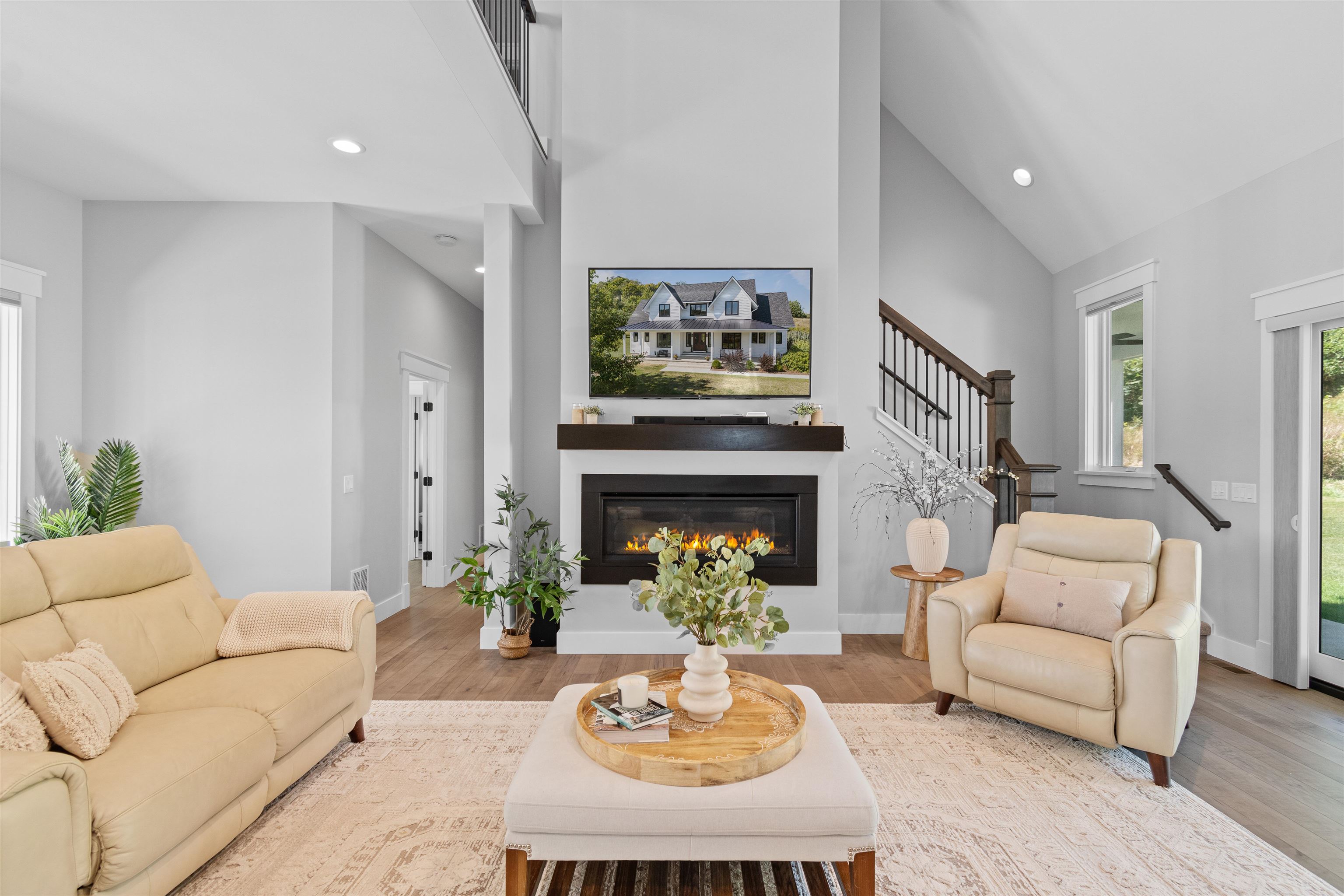 This stunning modern farmhouse blends timeless design, thoughtful craftsmanship, and luxury upgrades in the highly desirable Outer Bay at Marble Island. Enjoy evenings on trails, mornings kayaking, afternoons by the pool, and weekends exploring Lake Champlain. With 3 lake access points, pool, tennis & pickleball, and a public marina, the community offers the perfect balance of recreation and relaxation. Every detail of this home was designed for both beauty and function. A long driveway leads to a welcoming front porch and grand Mahogany French doors. Inside, 10' ceilings, a soaring great room, and Marvin black casement windows fill the open layout with natural light. The chef's kitchen showcases a 12' island, quartz counters, double-stacked cabinets, LG black stainless appliances, double oven, gas cooktop, and a walk-in pantry with 2nd fridge. The 1st-floor primary suite offers a walk-in closet, spa bath, 2-person shower, soaking tub, dual vanities, and porch access with ceiling fans and gas hookup. A 2nd en-suite for guests, while an office, mudroom, and laundry provide everyday convenience. Upstairs, a loft overlooks the great room and connects to 5 more rooms, including a 3rd en-suite, the 4th bedroom with shared bath with 2 flex rooms, and a private bonus suite with its own garage entry. Extras include dual-zone HVAC system, copper piping, whole-house generator, heated/insulated garage, Hunter Douglas window treatments, and a 9' basement ceiling with bath rough-in. |