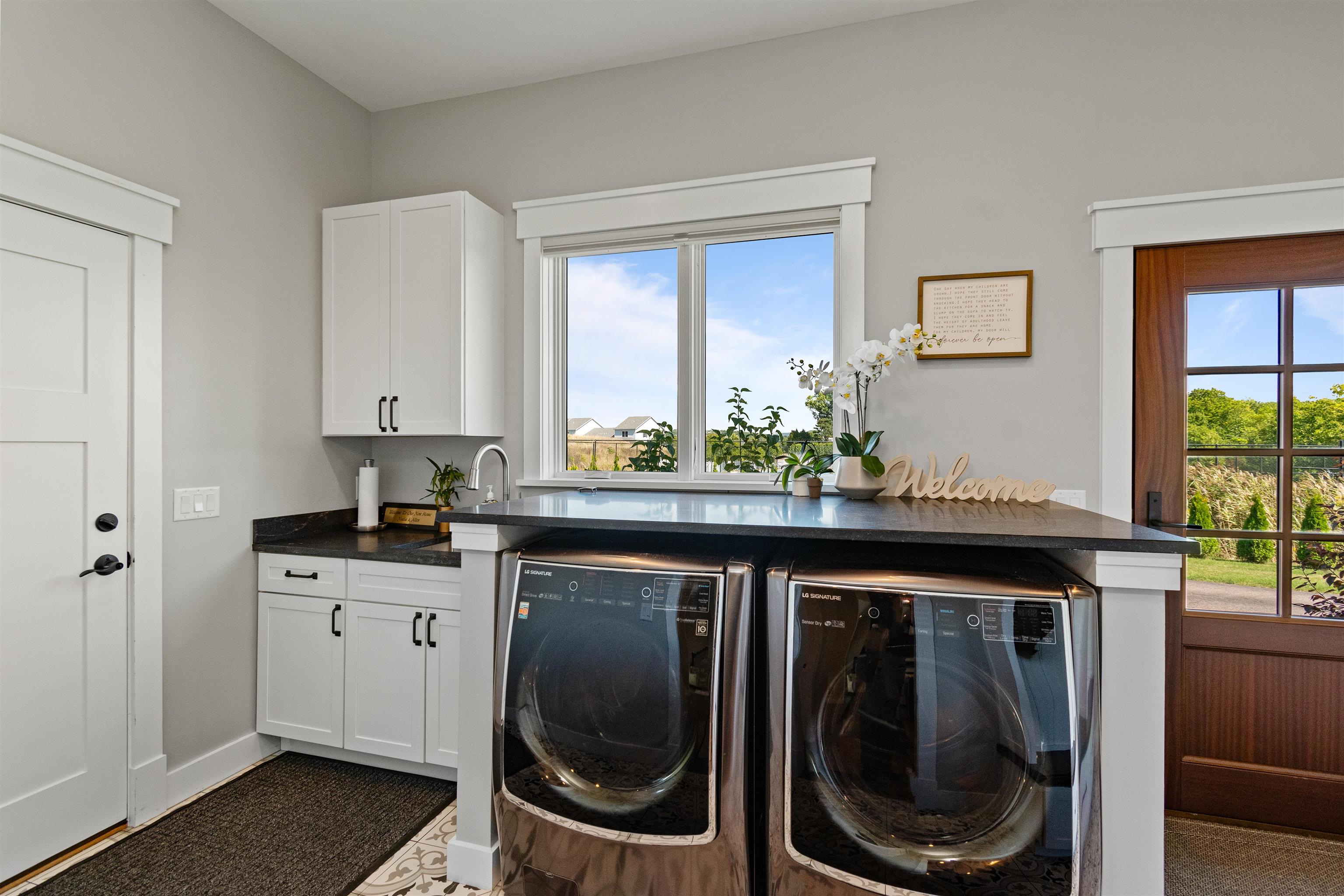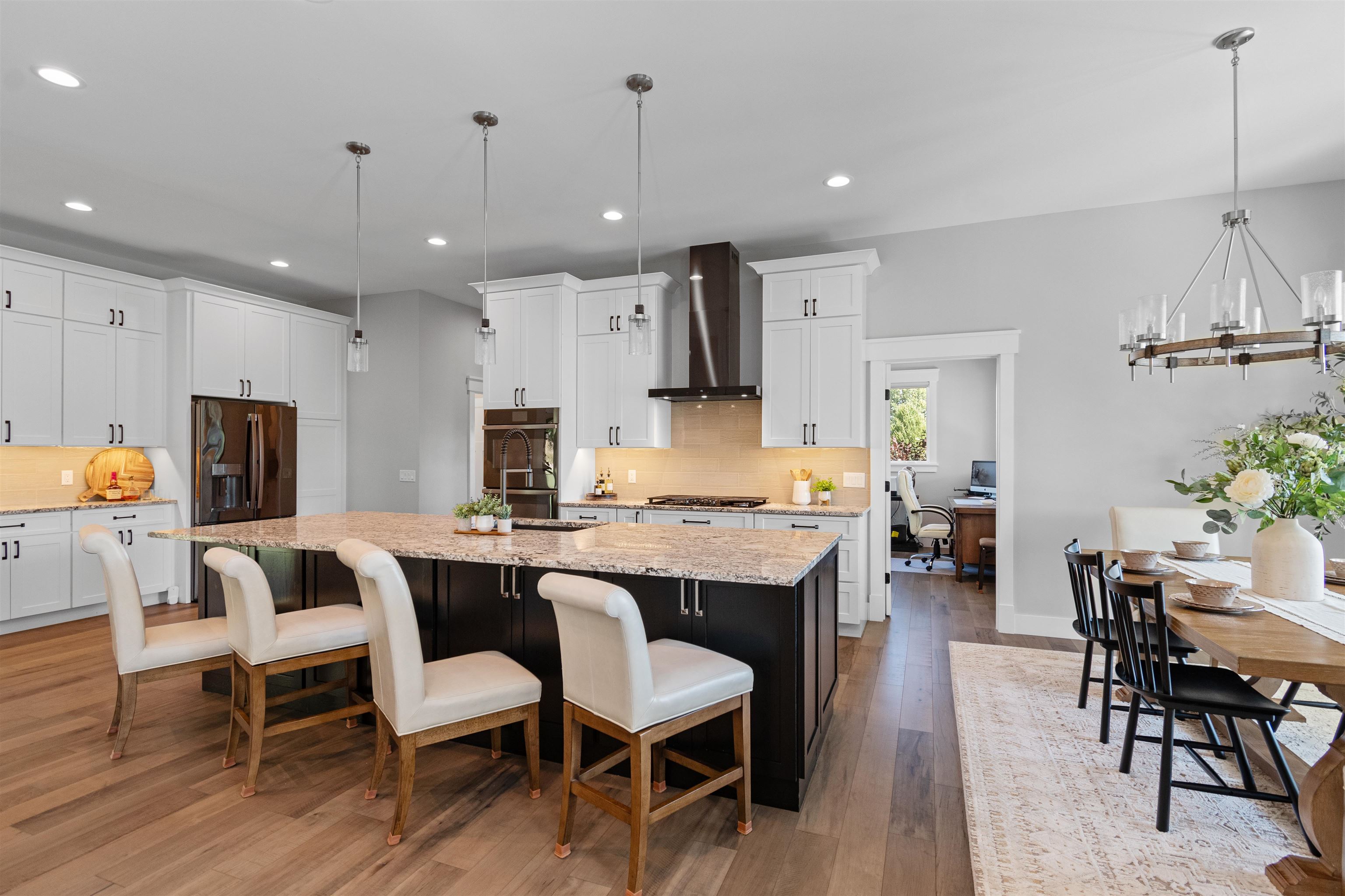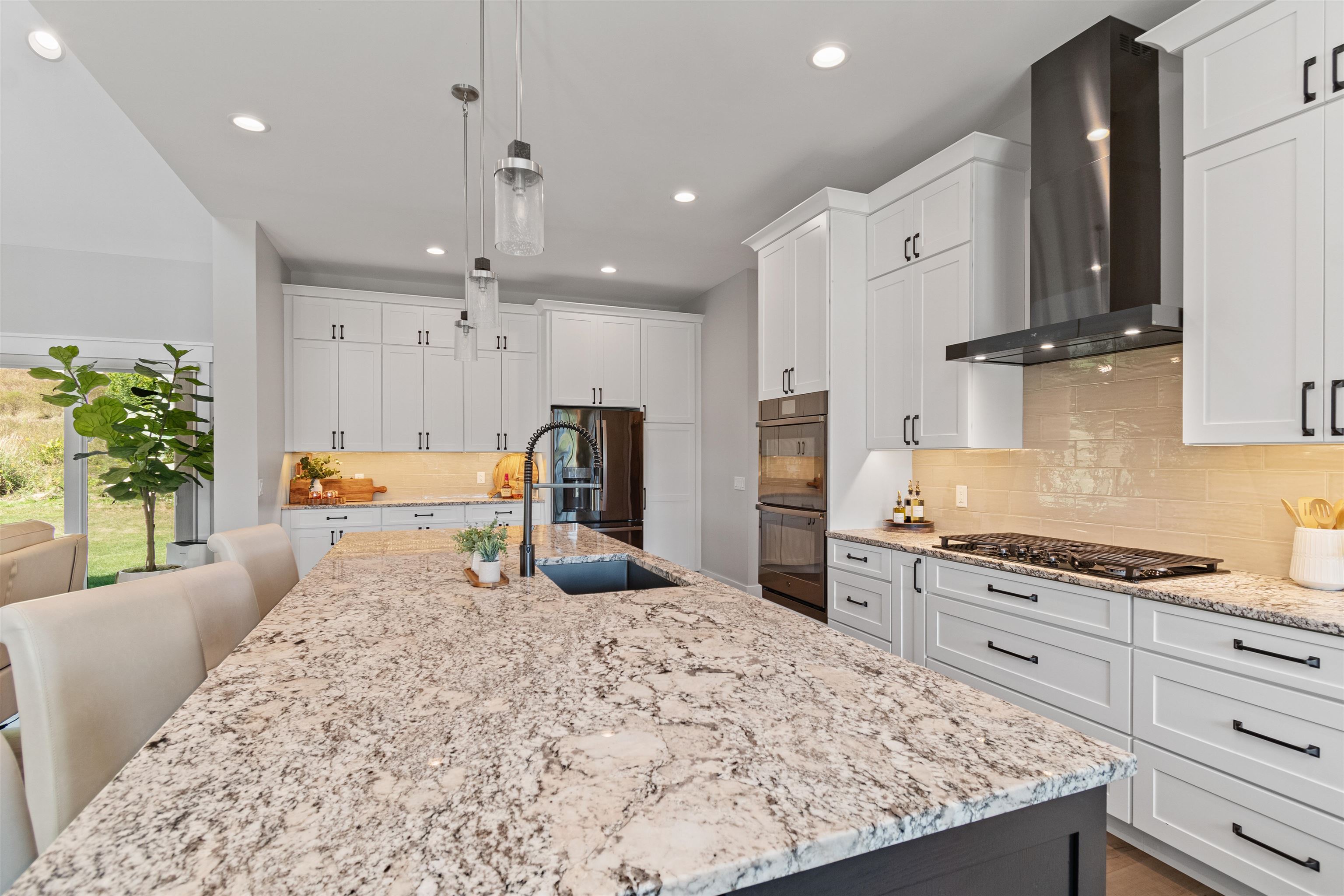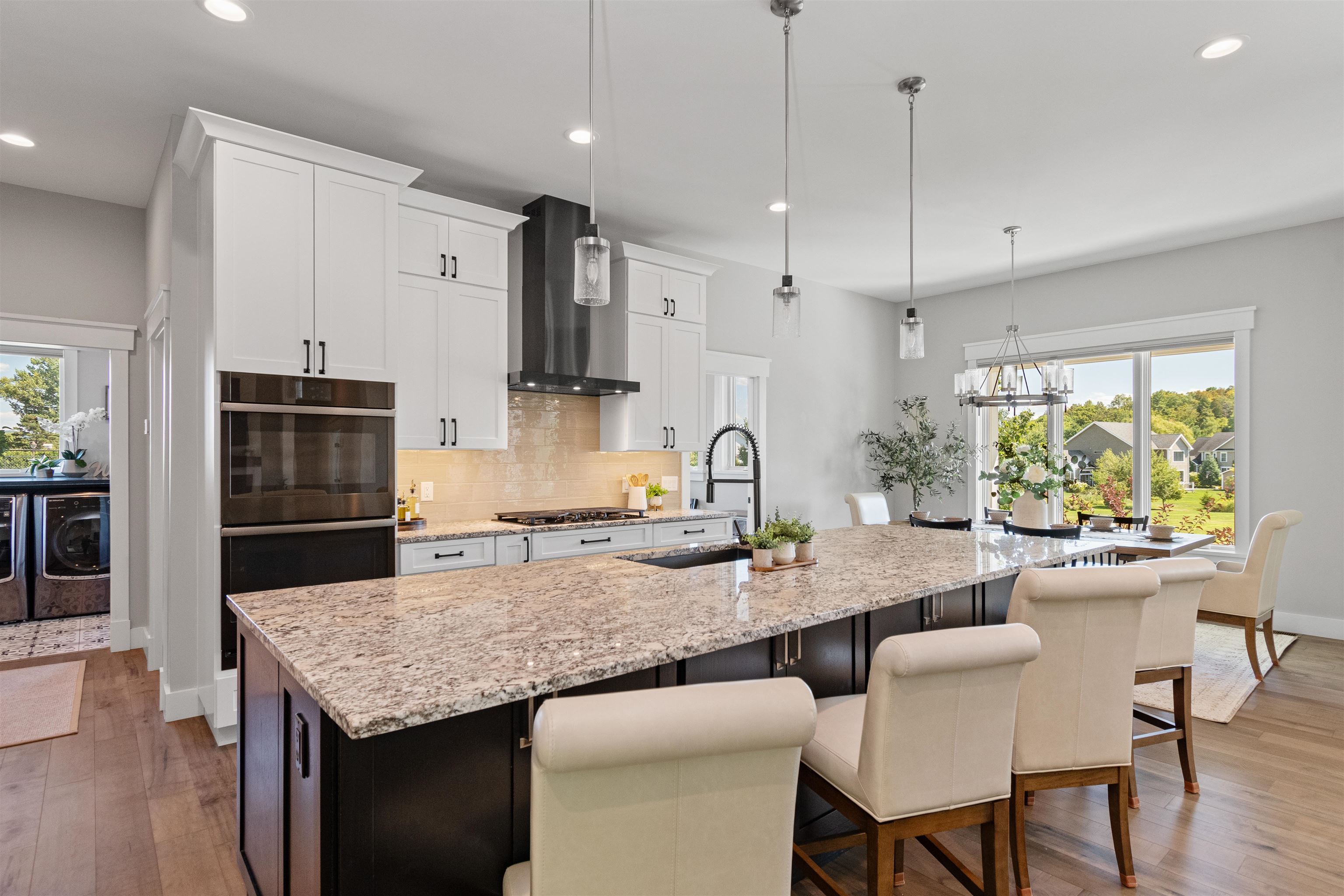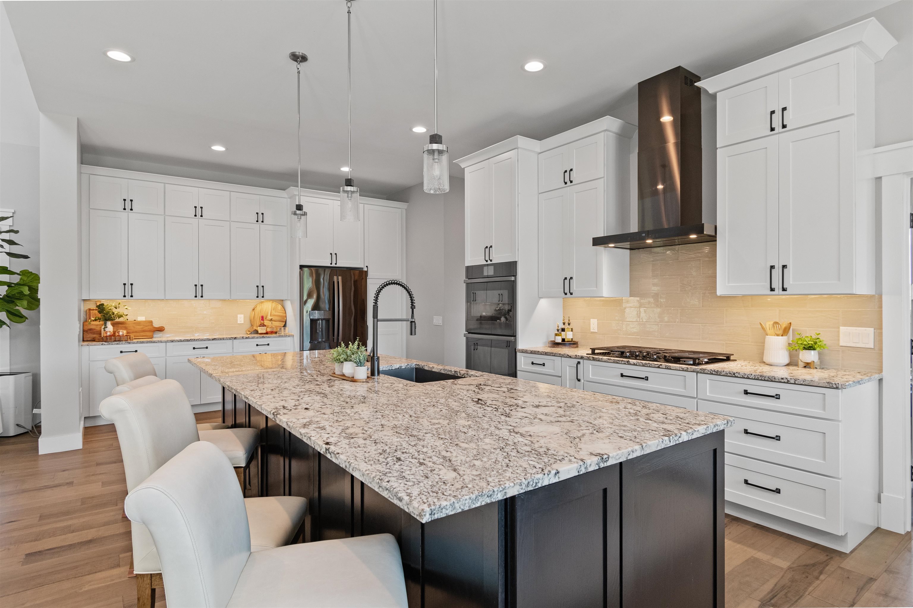This stunning modern farmhouse blends timeless design, thoughtful craftsmanship, and luxury upgrades in the highly desirable Outer Bay at Marble Island. Enjoy evenings on trails, mornings kayaking, afternoons by the pool, and weekends exploring Lake Champlain. With 3 lake access points, pool, tennis & pickleball, and a public marina, the community offers the perfect balance of recreation and relaxation. Every detail of this home was designed for both beauty and function. A long driveway leads to a welcoming front porch and grand Mahogany French doors. Inside, 10' ceilings, a soaring great room, and Marvin black casement windows fill the open layout with natural light. The chef's kitchen showcases a 12' island, quartz counters, double-stacked cabinets, LG black stainless appliances, double oven, gas cooktop, and a walk-in pantry with 2nd fridge. The 1st-floor primary suite offers a walk-in closet, spa bath, 2-person shower, soaking tub, dual vanities, and porch access with ceiling fans and gas hookup. A 2nd en-suite for guests, while an office, mudroom, and laundry provide everyday convenience. Upstairs, a loft overlooks the great room and connects to 5 more rooms, including a 3rd en-suite, the 4th bedroom with shared bath with 2 flex rooms, and a private bonus suite with its own garage entry. Extras include dual-zone HVAC system, copper piping, whole-house generator, heated/insulated garage, Hunter Douglas window treatments, and a 9' basement ceiling with bath rough-in. |