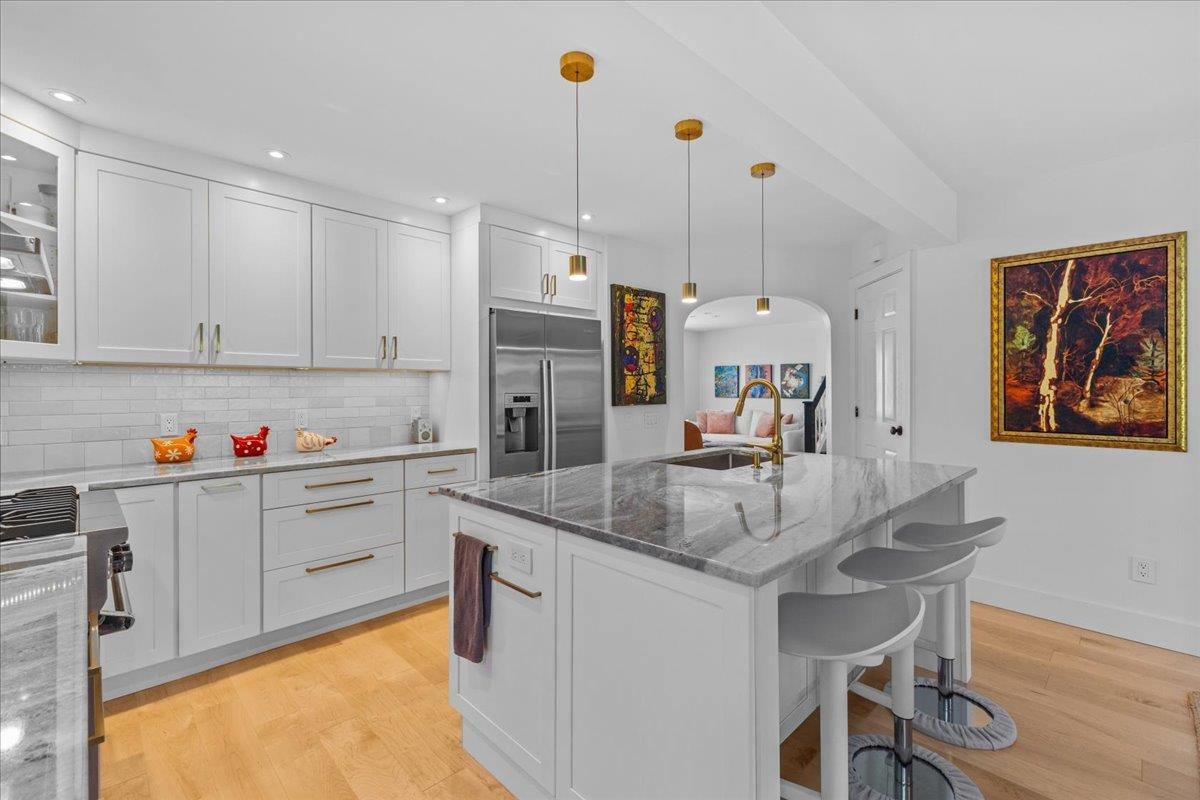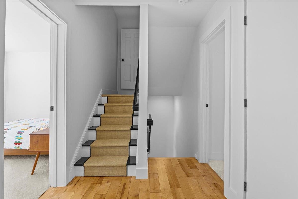 Welcome to Southwind-by-the-Lake, one of South End's most sought-after communities located just steps from Lake Champlain! This beautifully renovated 3 bed, 2 1/2 bath home combines modern luxury with the best of Vermont living-community amenities, lake views and access to the beach and the Island Trail bike path just steps from your door. Inside, nearly every detail has been thoughtfully updated. The kitchen is a chef's dream with quartzite countertops, new cabinetry, upscale appliances & a stylish tile backsplash. The dining room features a new custom fireplace surround. Premium maple floors on the first level, refinished wood stairs and hallways, and plush new carpet on the second floor create a seamless flow throughout. On the third floor, you find a bonus room currently used as an office/exercise room with access to the rooftop deck. Retreat to the luxurious primary suite, where the spa-like bath includes a heated floor, soaking tub, a 4'x4' glass shower, double-vanity with quartz, and elegant lighting. The two additional bathrooms have also been fully renovated. Additional improvements include: a new electric panel, switches, outlets, recessed LED lighting, new boiler (2024), heat pump with mini-splits, washer/dryer, fresh paint throughout, new trim & moldings. Outside, enjoy a refinished back patio and lake views from your private rooftop deck. Don't miss this rare opportunity to own a fully renovated home in Southwind with stunning amenities & access to Lake Champlain |