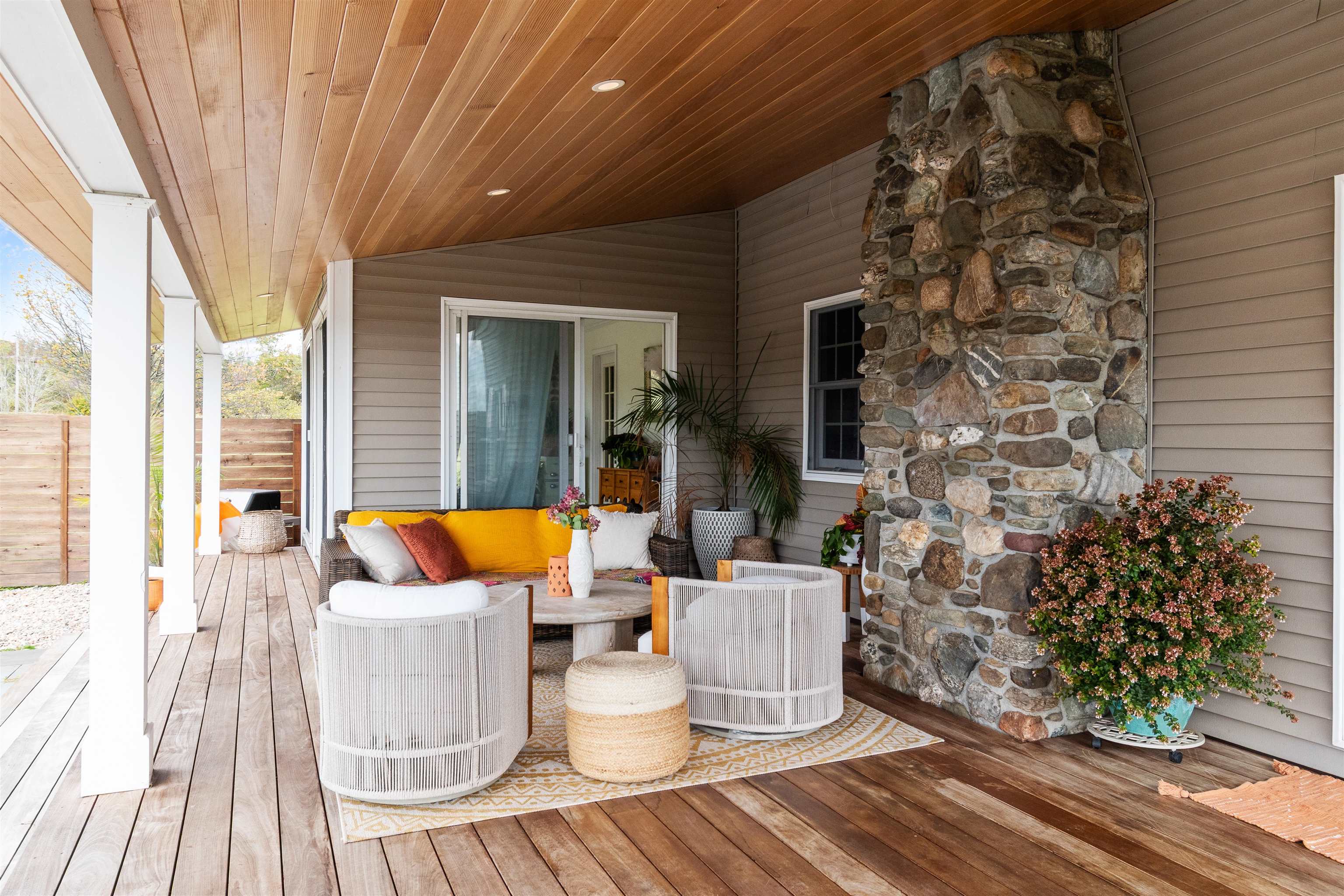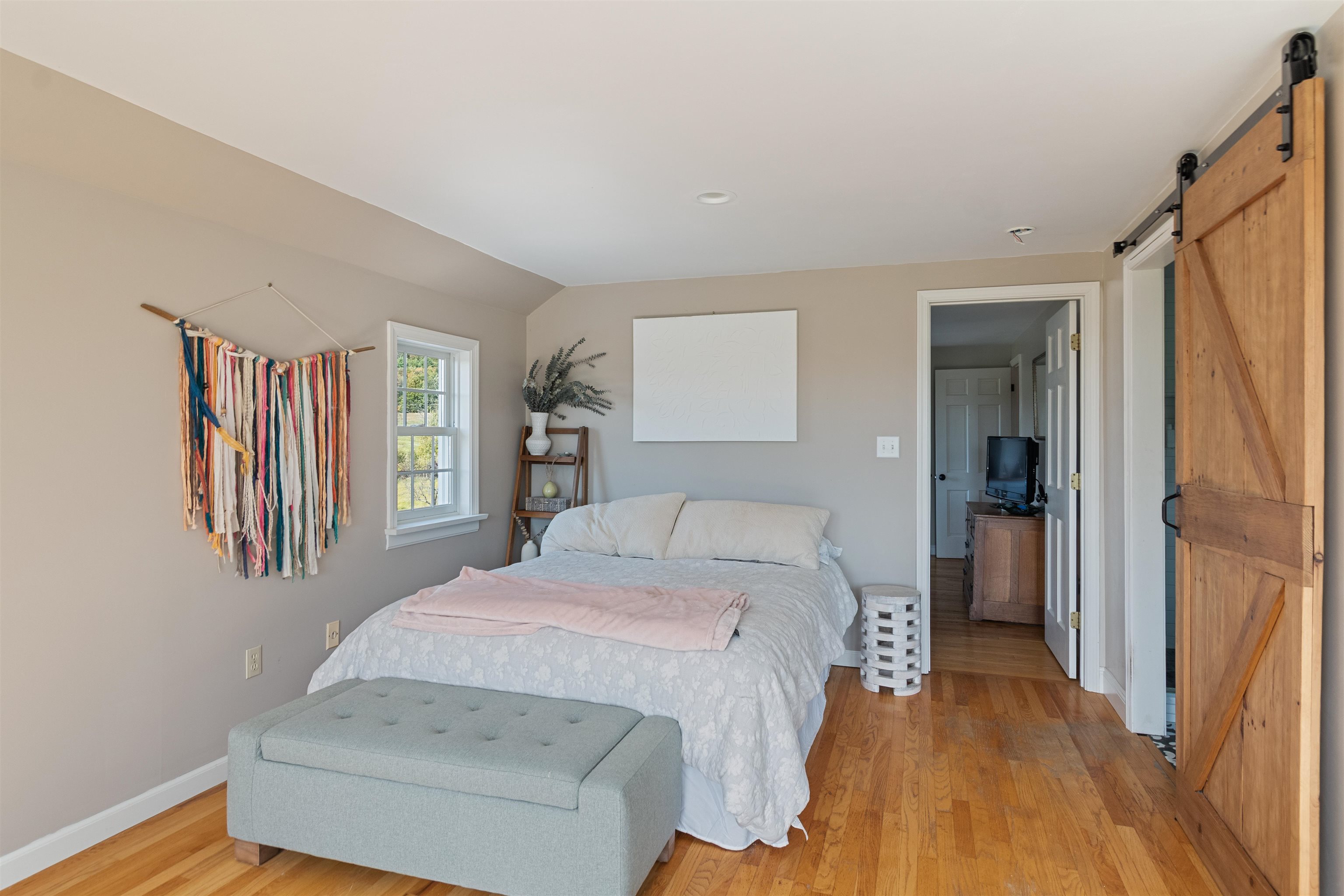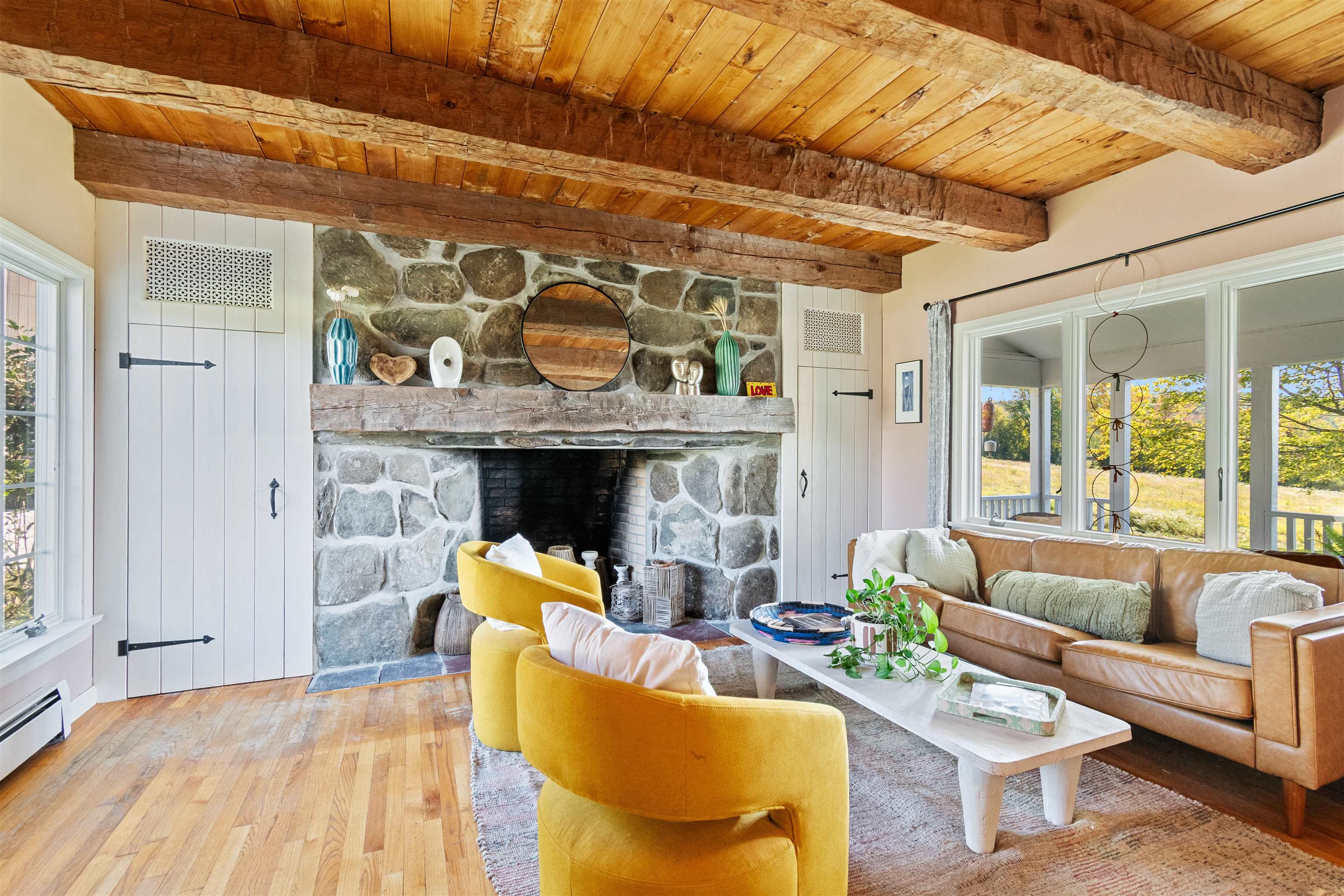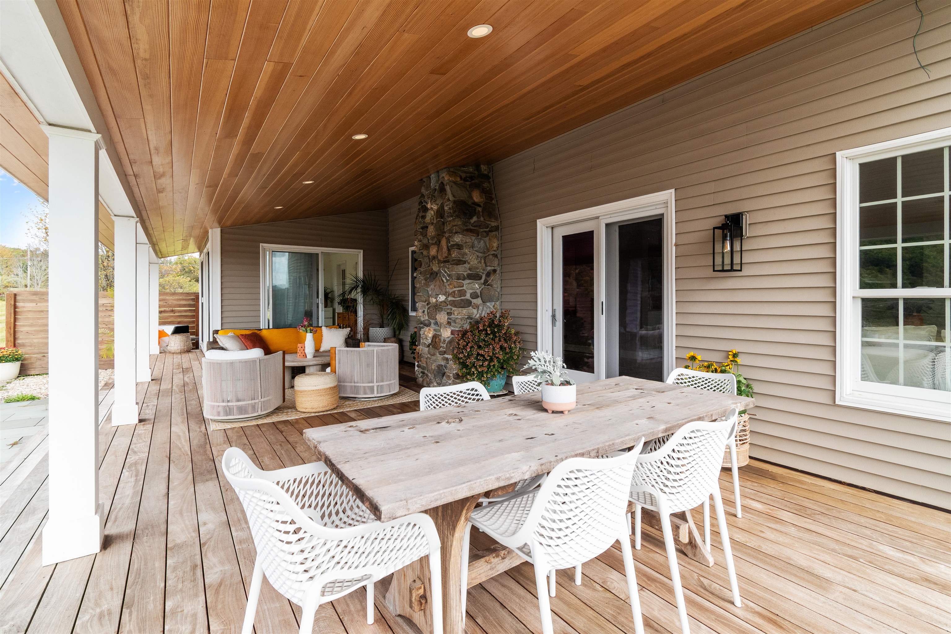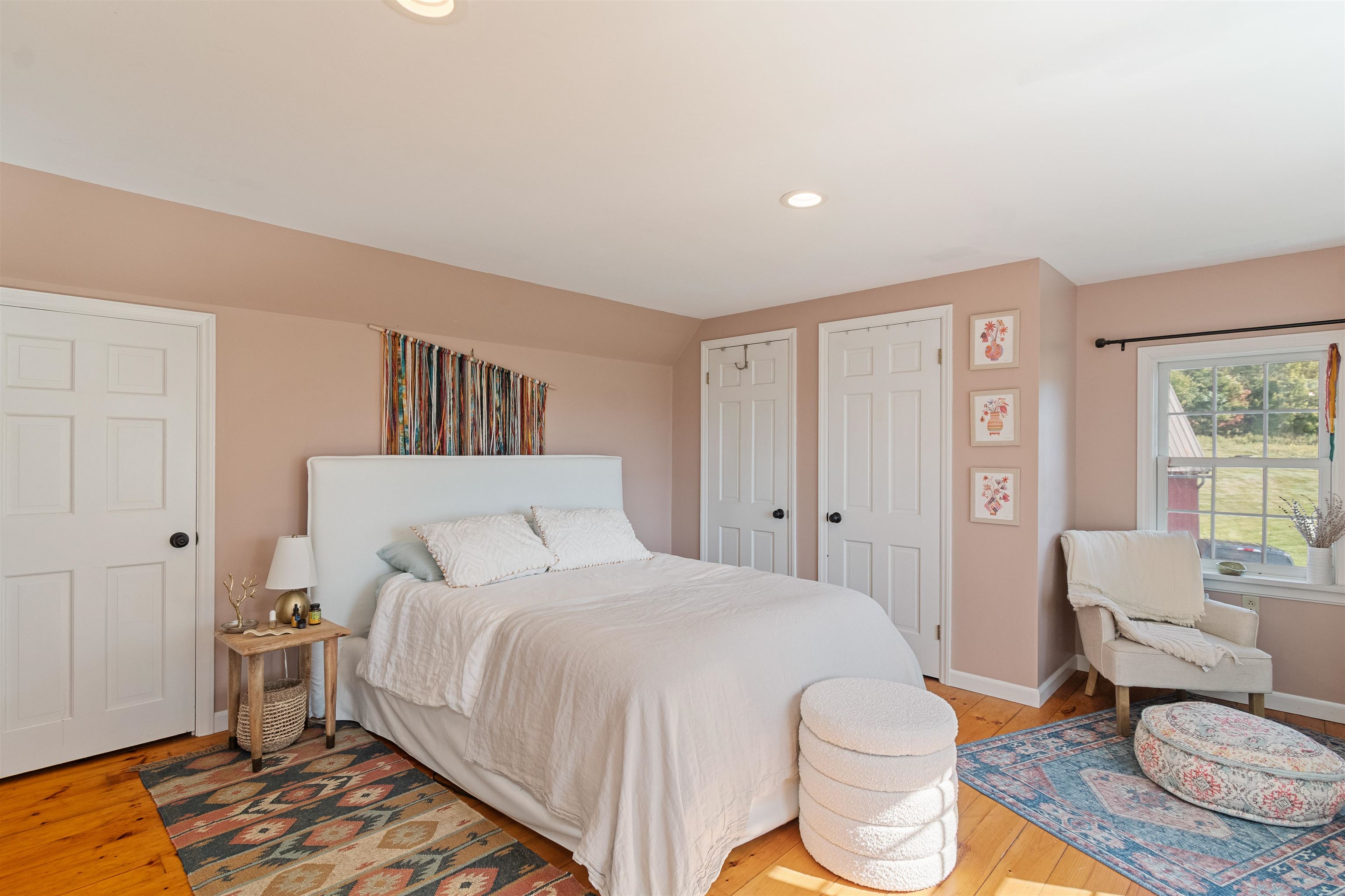 This stylish farmhouse is perfectly situated on 13 acres to take advantage of stunning panoramic Green Mountain views with a classic red barn and a resort-like outdoor space. The spacious, open concept interior features hardwood flooring throughout, exposed beam accents, and windows all around to offer views from every room. At the heart of the home, the kitchen makes entertaining a breeze with a walnut island, breakfast bar, granite counters, and stainless appliances. Unwind in the living room while the fire crackles in stone fireplace or find comfort in the warmth of the wood stove with stone surround in the family room. The primary suite is a true retreat with a cozy sitting room with built-ins, a sliding barn door to the private bath with separate vanities and a glass walk-in shower, custom closet system, and sweeping mountain views. The finished lower level extends your living space with a rec room with built-ins and small wet bar. The property delivers exceptional outdoor living with the mountains as the backdrop. A covered teak deck provides room for a relaxing seating area as well as outdoor dining. Step down to a blue stone patio that surrounds the tranquil inground pool, with space for lounge chairs, your barbecue, and a seating area around the outdoor fireplace. All of the peace and beauty of country living balanced with convenient access to I-89, just 8 miles to Williston shops and restaurants, and 17 miles to downtown Burlington. |