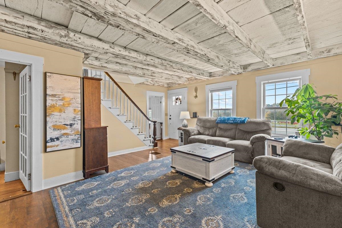 Welcome to this incredibly charming Vermont farmhouse! Imagine swinging on the front porch on a warm summer night. Or stepping outside to snowshoe on your own property after a classic VT snowstorm! This property has all of that to offer, and more! Inside you'll find gorgeous, refinished hardwood floors, exposed beams, and recently replaced windows. Looking to start a family business of some sort? There is some unfinished space inside the home that can be made your own, as well as the barn that is ready to be put to use! Upstairs, the barn is insulated & heated and offers a retail space including a walk-in cooler with glass display to outside. Downstairs, there is a 2-bay insulated garage/workshop with high ceilings. Did we mention that this property sits on 10+ acres?! 6-bedroom septic already in place, new well pump installed in 2015, updated insulation throughout the home, and permitted for an accessory apartment, come see all that this home has to offer for yourself! |