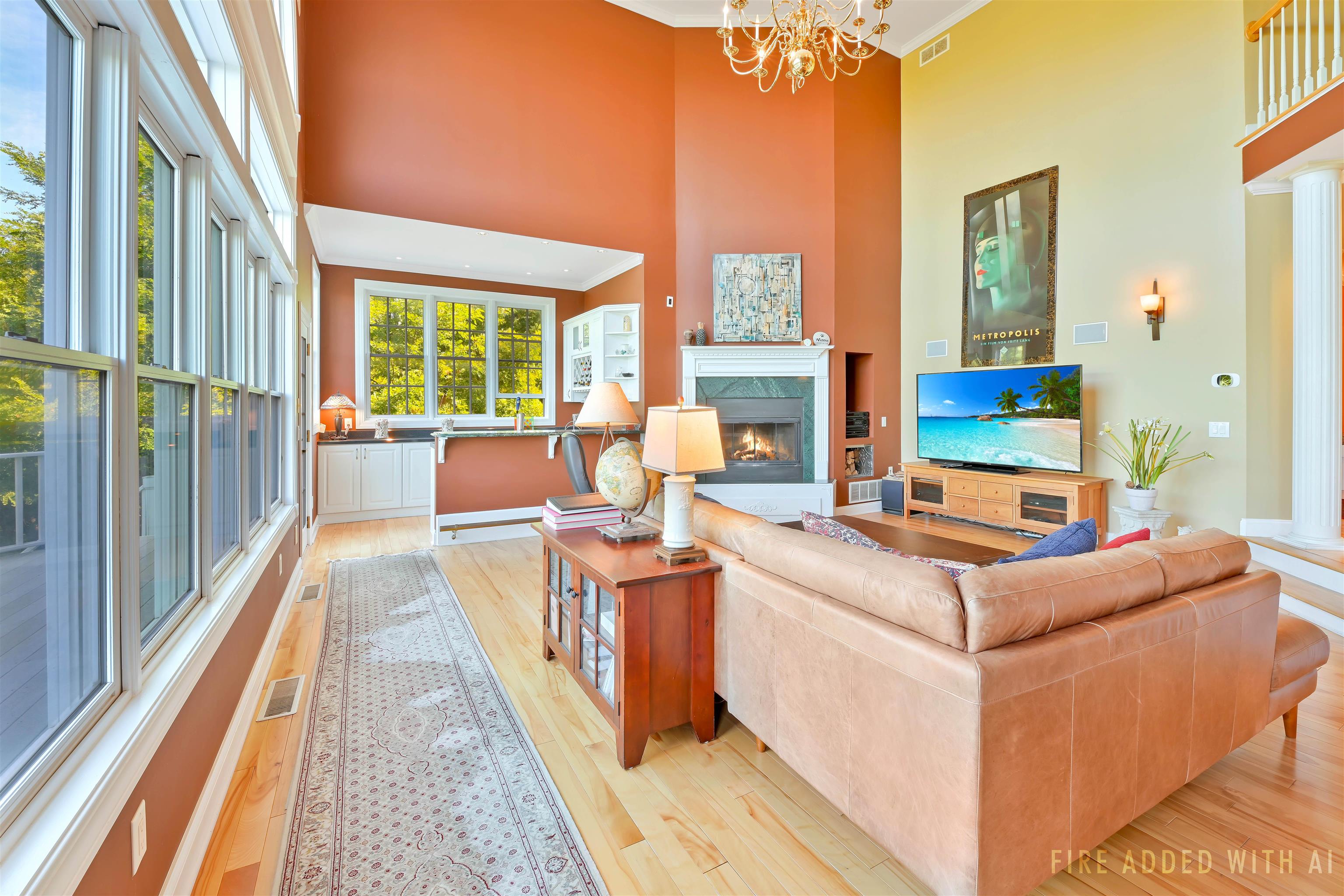 Set in Williston's sought-after Highlands Drive neighborhood, this stately residence offers more than 8,300 sq. ft. of finished living space across three levels, blending timeless character with modern comfort. The gourmet kitchen features granite countertops, a Sub-Zero refrigerator, Viking range and wall ovens, and butler's pantry, while west-facing windows frame sunsets over Lake Champlain and the Adirondacks. Formal dining is enhanced by a tin ceiling and fireplace, complemented by a parlor, main-floor office, and soaring great room with 20-ft ceilings, abundant windows, fireplace, wet bar, and built-in sound system. In all, the home boasts three wood-burning and two gas fireplaces, bringing warmth and character to its grand spaces. Upstairs, the expansive primary suite is purposely positioned to capture the western views, with dual walk-in closets, tiled shower, his-and-her vanities, a fireplace, and private balcony overlooking sunsets and the twinkling lights of Williston and Burlington at night. Three additional bedrooms and two full baths complete the second floor. The walk-out lower level includes a billiards room, tiered home theater, family room, bedroom, full bath, and updated mechanicals. Outdoors, a sweeping back deck with spacious seating extends from the dining room. With a 3-car garage and access to nearby community walking trails, this exceptional property offers scale, luxury, and neighborhood appeal for both entertaining and quiet retreats. |