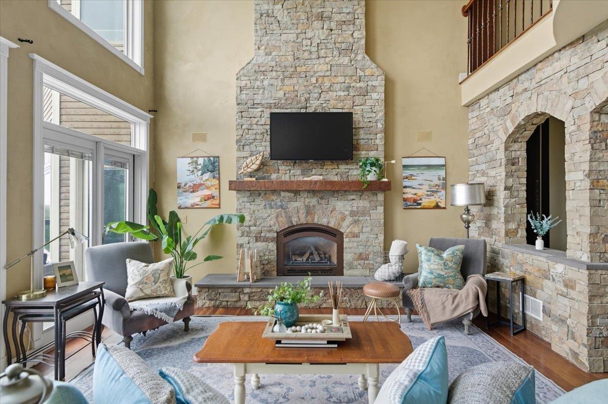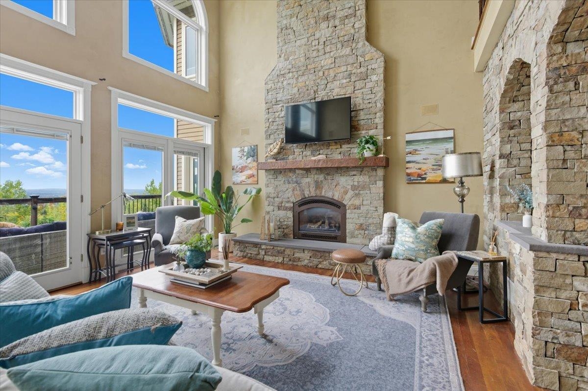 Open House Saturday 10/04 from 12 - 2pm Perched at the quiet end of a cul-de-sac, this Mediterranean-inspired estate spans 1.92 acres of privacy with sweeping lake and valley views. Inside, marble, travertine, and Barre granite pair with vaulted ceilings and four fireplaces that anchor the living spaces. The gourmet kitchen doubles as a stage with a butler's pantry, wet bar, and sunlit hexagonal breakfast nook. On the main floor, a bright office and accessible en suite with a generous closet offer comfort and ease. Upstairs, the primary suite centers on a fireplace, private balcony, whirlpool tub with its own hearth, steam shower, walk-in closet, and a second hexagonal retreat. Three additional bedrooms each feature en suites or shared baths and walk-ins, while a skylit top-floor studio invites yoga, art, or meditation. Below, the finished basement reveals a theater, kitchenette, office, guest quarters, and full bath with laundry. Outside, a broad stone patio with fireplace opens to a 28,000-gallon pool with slide, diving board, and fountain, plus hot tub, outdoor shower, and fenced yard. A heated 3-car garage with bonus bay completes this estate, just minutes from I-89. A place to live, celebrate, and dream. Showings begin 10/4 prior to the open house. |