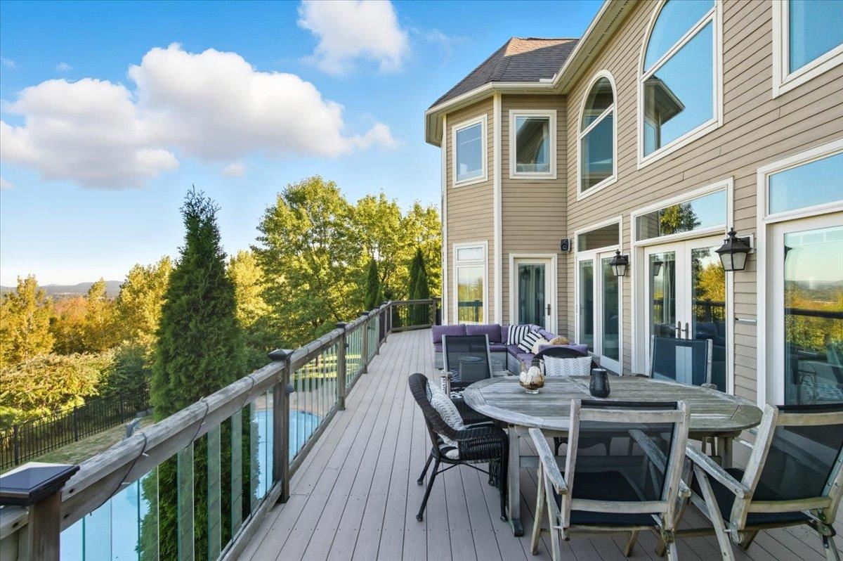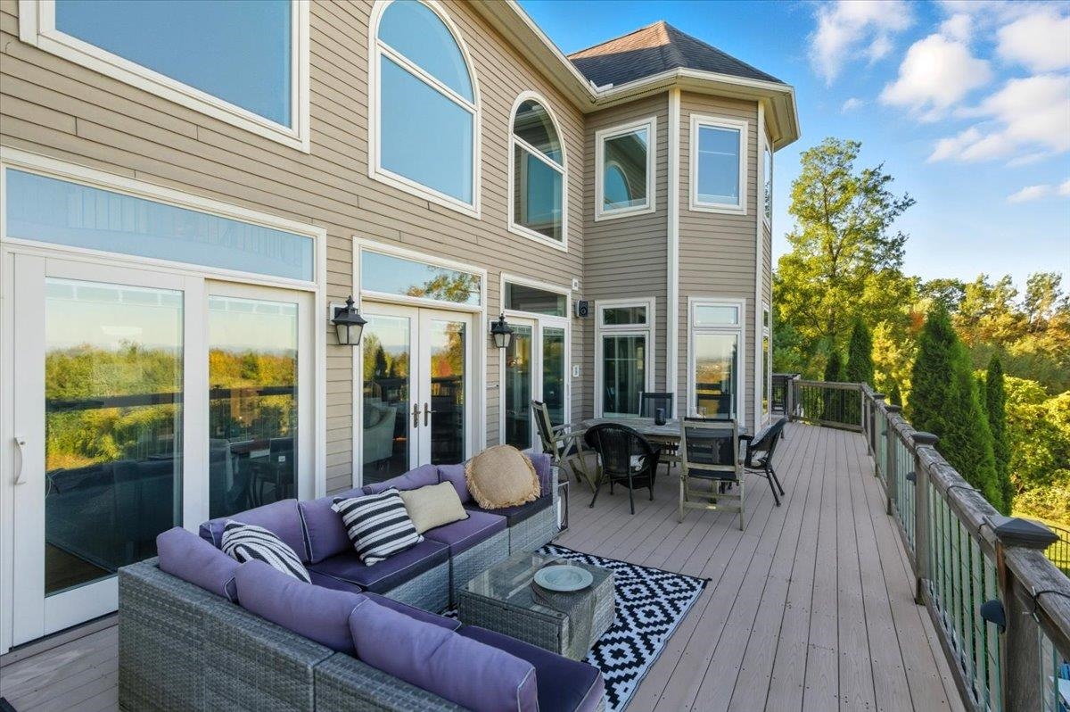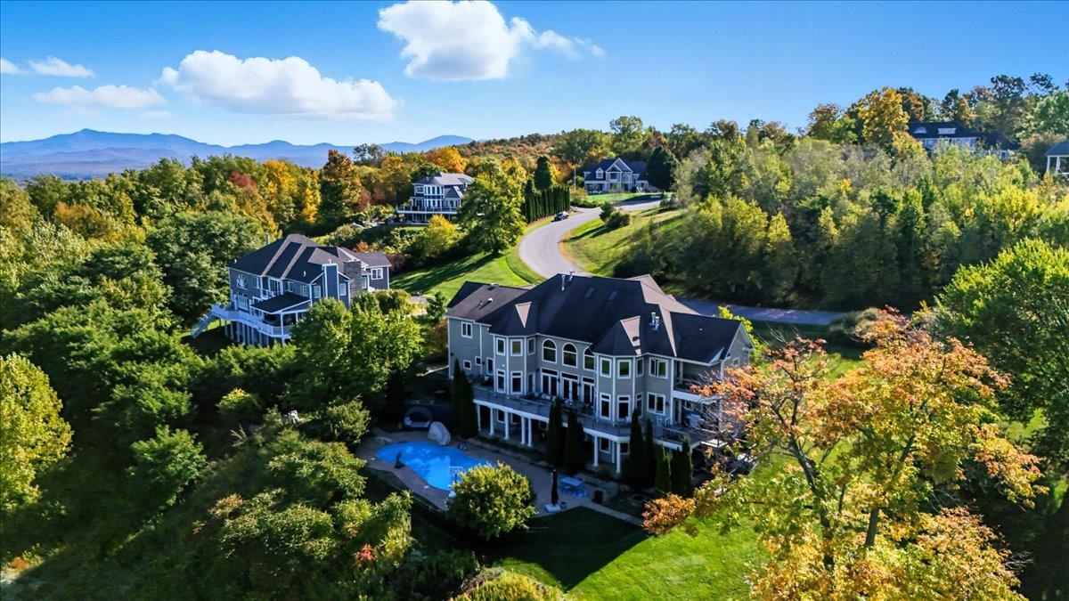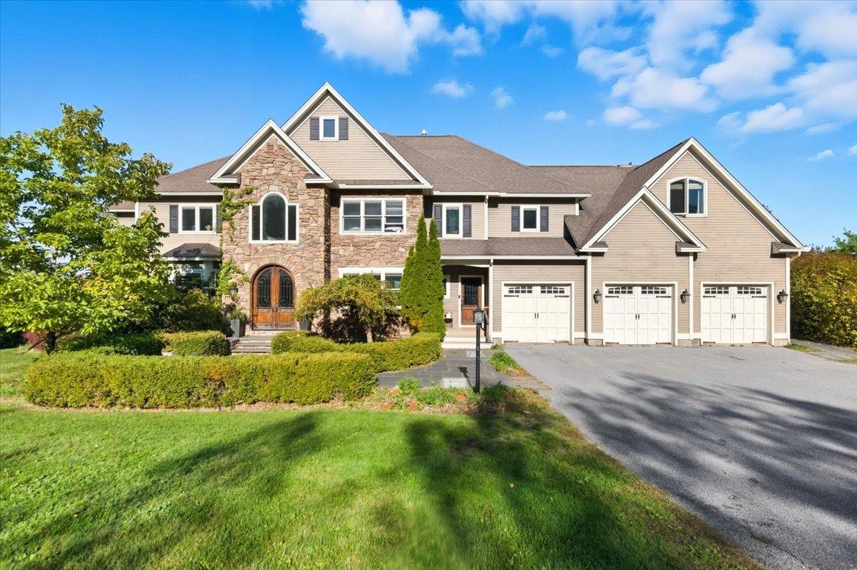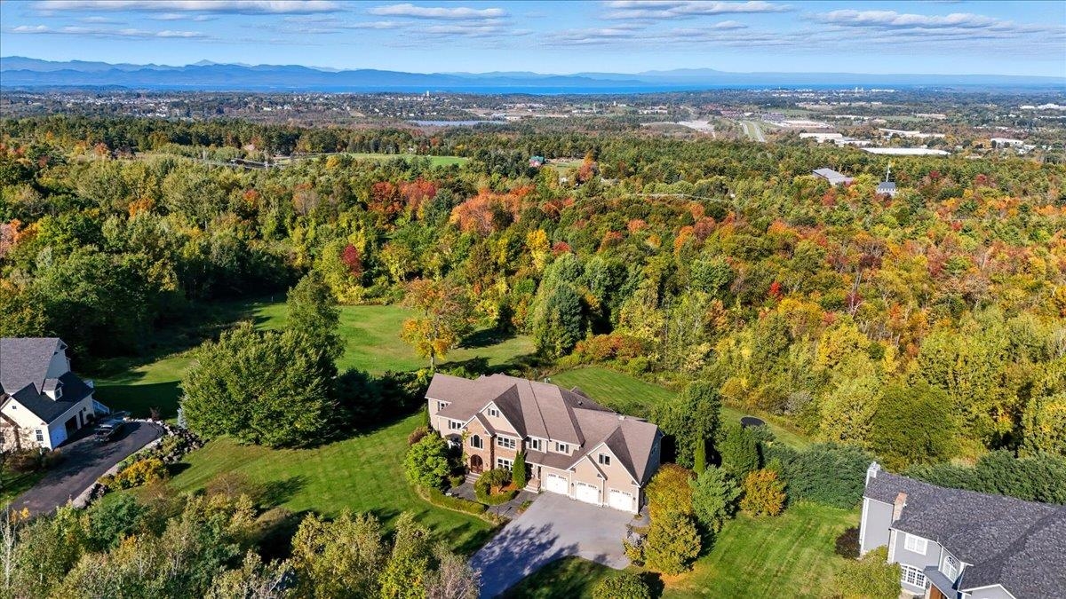 Perched at the quiet end of a cul-de-sac in Williston's Oak Hill neighborhood, this nearly 8,000 sq ft contemporary estate offers panoramic lake and mountain views, Mediterranean-inspired details, and resort-style living perfect for hosting the holidays. Set on 1.92 private acres, the property features an in-ground pool, expansive stone patios, and west-facing sunsets that light up every gathering space. Inside, vaulted ceilings, multiple fireplaces, and custom stonework anchor an open layout designed for entertaining. The chef's kitchen with butler's pantry, wet bar, and sunlit breakfast room flows seamlessly into the dining room and view-filled great room-an ideal setting for holiday dinners and winter celebrations. A main-level en suite offers flexible use for guests or multigenerational living. Upstairs, the primary suite includes a private balcony, fireplace, whirlpool tub with its own hearth, steam shower, walk-in closet, and a hexagonal retreat perfect for quiet mornings. Additional bedrooms and flex spaces provide room for large households or long-term visitors. The walkout lower level opens directly to the pool area and offers a family room, fitness or recreation spaces, workshop, and abundant storage-excellent for game nights, movie marathons, or creating an in-law or guest suite. With a three-car garage, multiple outdoor living zones, strong mechanical systems, and easy access to Williston, Burlington, and I-89, this estate delivers privacy, scale, and comfort. |