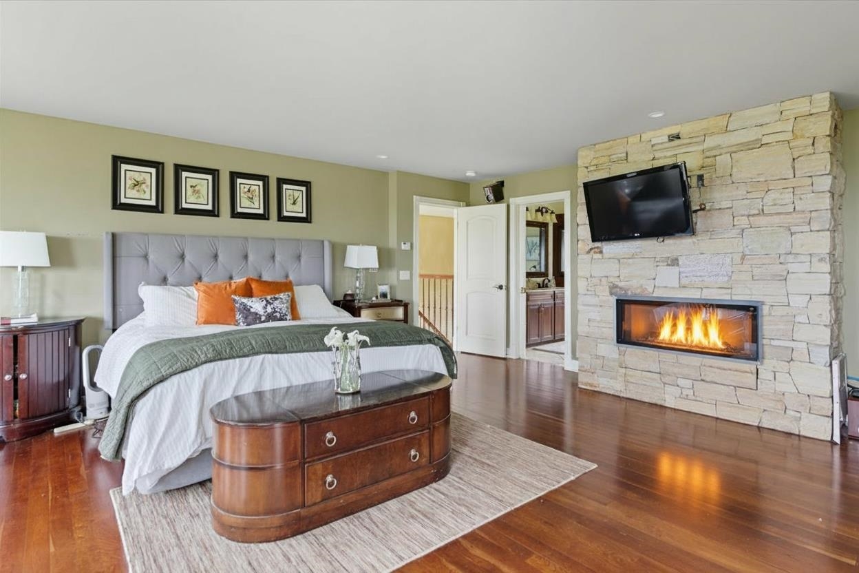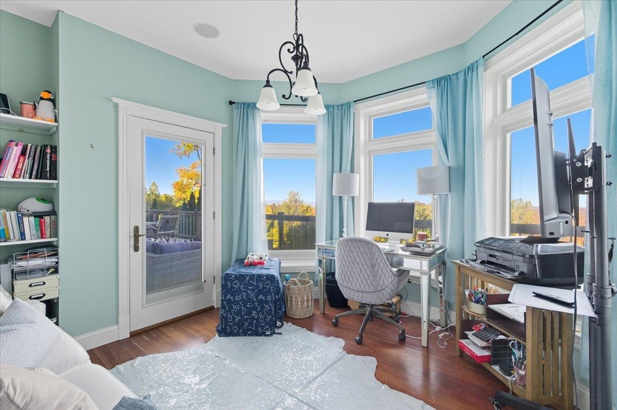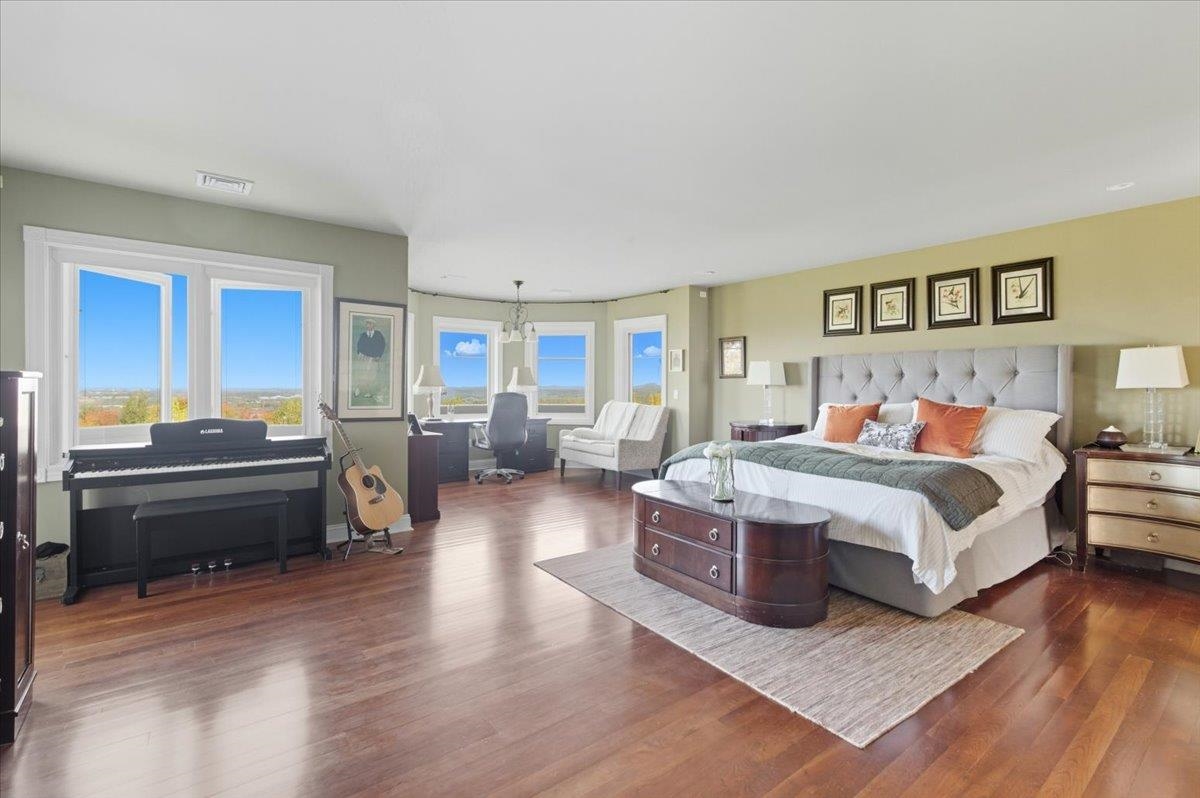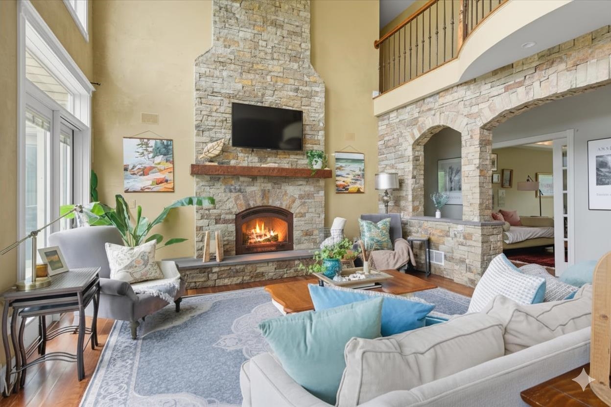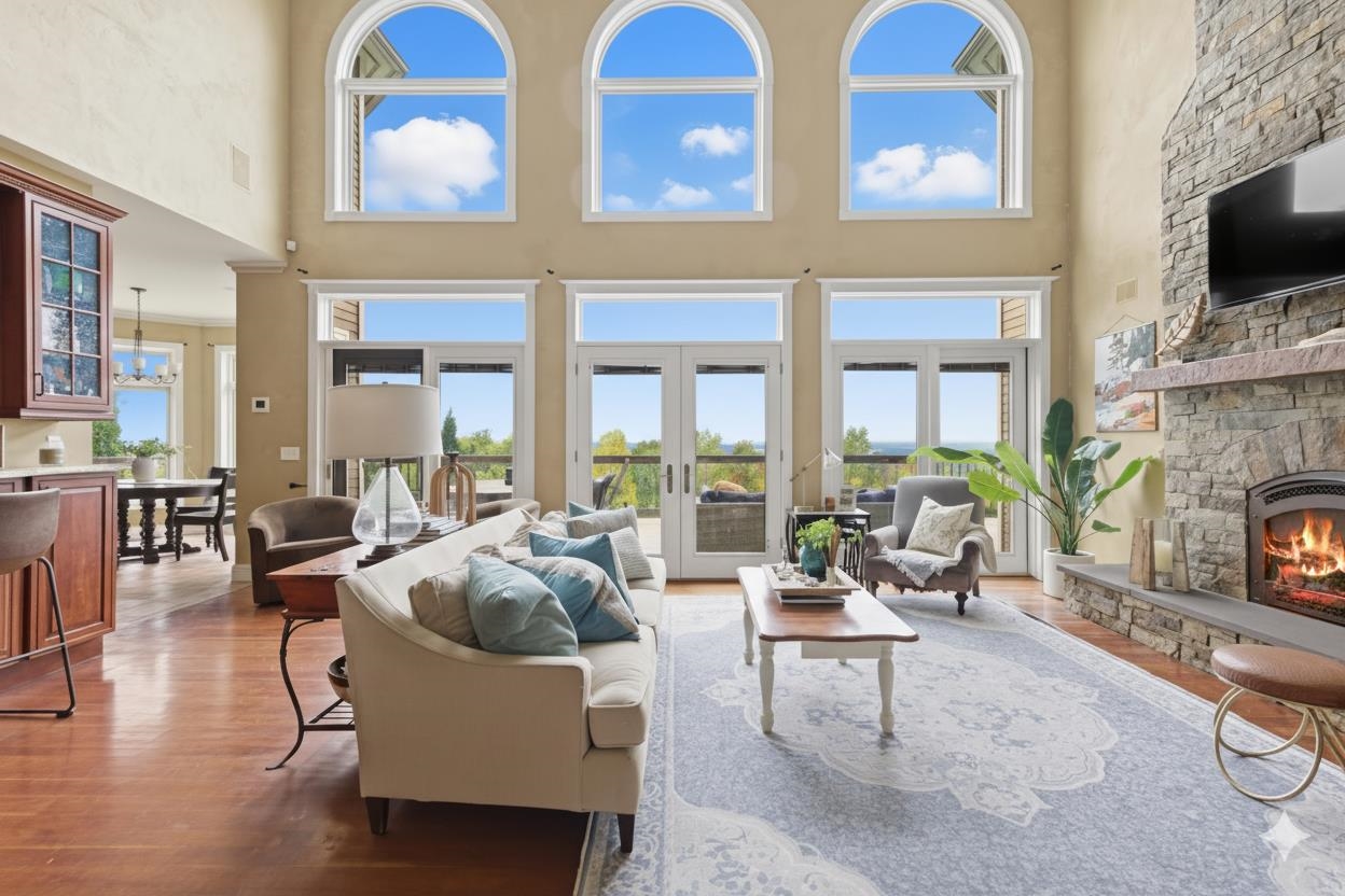 Perched at the quiet end of a cul-de-sac in Williston's Oak Hill neighborhood, this nearly 8,000 sq ft contemporary estate offers panoramic lake and mountain views, Mediterranean-inspired details, and resort-style living perfect for hosting the holidays. Set on 1.92 private acres, the property features an in-ground pool, expansive stone patios, and west-facing sunsets that light up every gathering space. Inside, vaulted ceilings, multiple fireplaces, and custom stonework anchor an open layout designed for entertaining. The chef's kitchen with butler's pantry, wet bar, and sunlit breakfast room flows seamlessly into the dining room and view-filled great room-an ideal setting for holiday dinners and winter celebrations. A main-level en suite offers flexible use for guests or multigenerational living. Upstairs, the primary suite includes a private balcony, fireplace, whirlpool tub with its own hearth, steam shower, walk-in closet, and a hexagonal retreat perfect for quiet mornings. Additional bedrooms and flex spaces provide room for large households or long-term visitors. The walkout lower level opens directly to the pool area and offers a family room, fitness or recreation spaces, workshop, and abundant storage-excellent for game nights, movie marathons, or creating an in-law or guest suite. With a three-car garage, multiple outdoor living zones, strong mechanical systems, and easy access to Williston, Burlington, and I-89, this estate delivers privacy, scale, and comfort. |