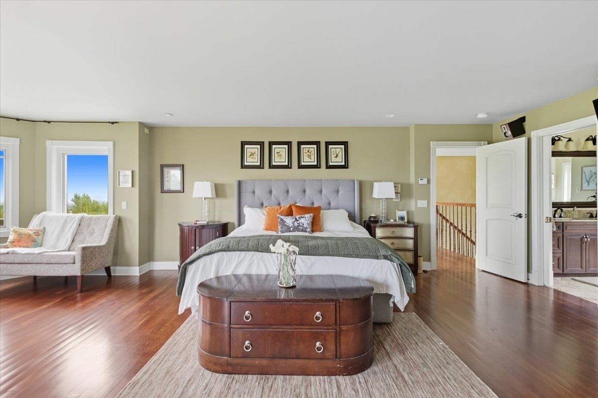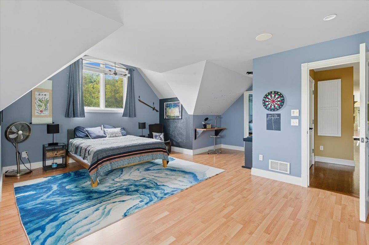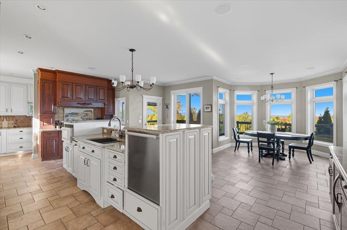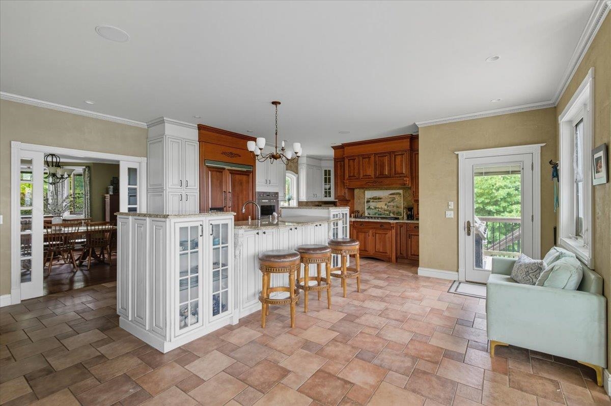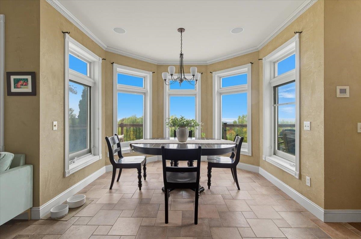 Perched at the quiet end of a cul-de-sac in Williston's Oak Hill neighborhood, this nearly 8,000 sq ft contemporary estate offers panoramic lake and mountain views, Mediterranean-inspired details, and resort-style living perfect for hosting the holidays. Set on 1.92 private acres, the property features an in-ground pool, expansive stone patios, and west-facing sunsets that light up every gathering space. Inside, vaulted ceilings, multiple fireplaces, and custom stonework anchor an open layout designed for entertaining. The chef's kitchen with butler's pantry, wet bar, and sunlit breakfast room flows seamlessly into the dining room and view-filled great room-an ideal setting for holiday dinners and winter celebrations. A main-level en suite offers flexible use for guests or multigenerational living. Upstairs, the primary suite includes a private balcony, fireplace, whirlpool tub with its own hearth, steam shower, walk-in closet, and a hexagonal retreat perfect for quiet mornings. Additional bedrooms and flex spaces provide room for large households or long-term visitors. The walkout lower level opens directly to the pool area and offers a family room, fitness or recreation spaces, workshop, and abundant storage-excellent for game nights, movie marathons, or creating an in-law or guest suite. With a three-car garage, multiple outdoor living zones, strong mechanical systems, and easy access to Williston, Burlington, and I-89, this estate delivers privacy, scale, and comfort. |