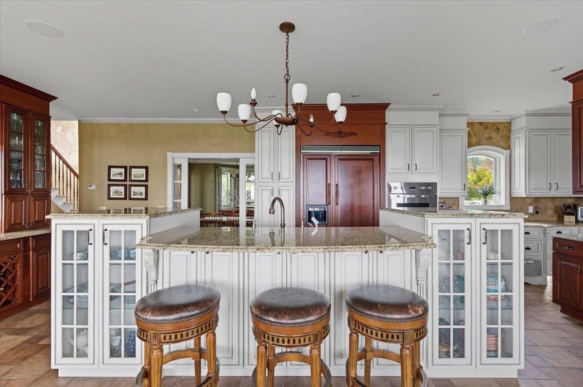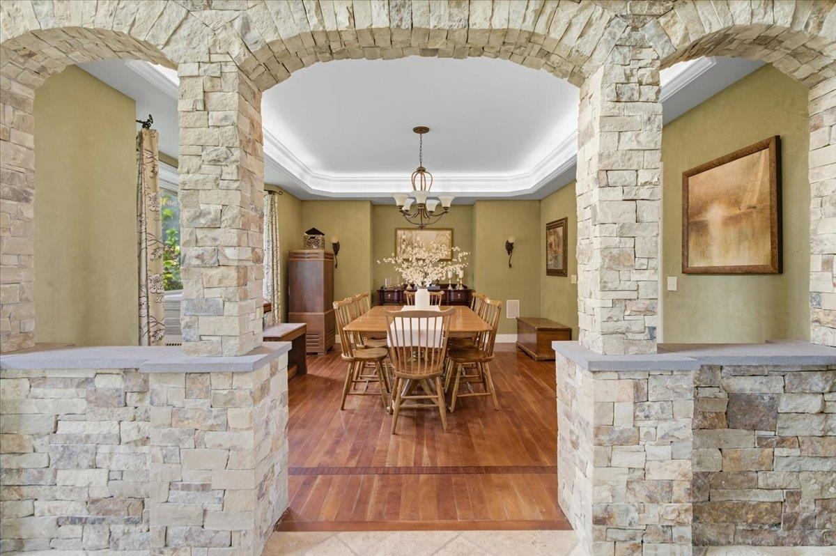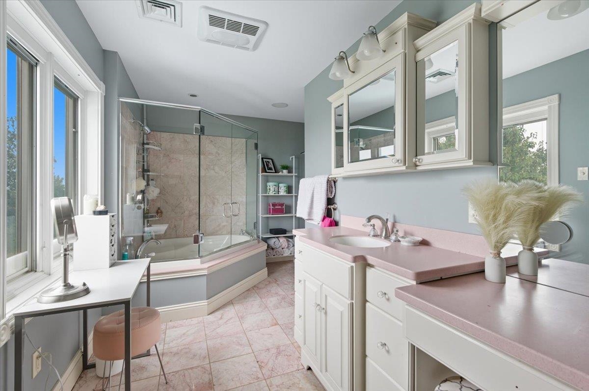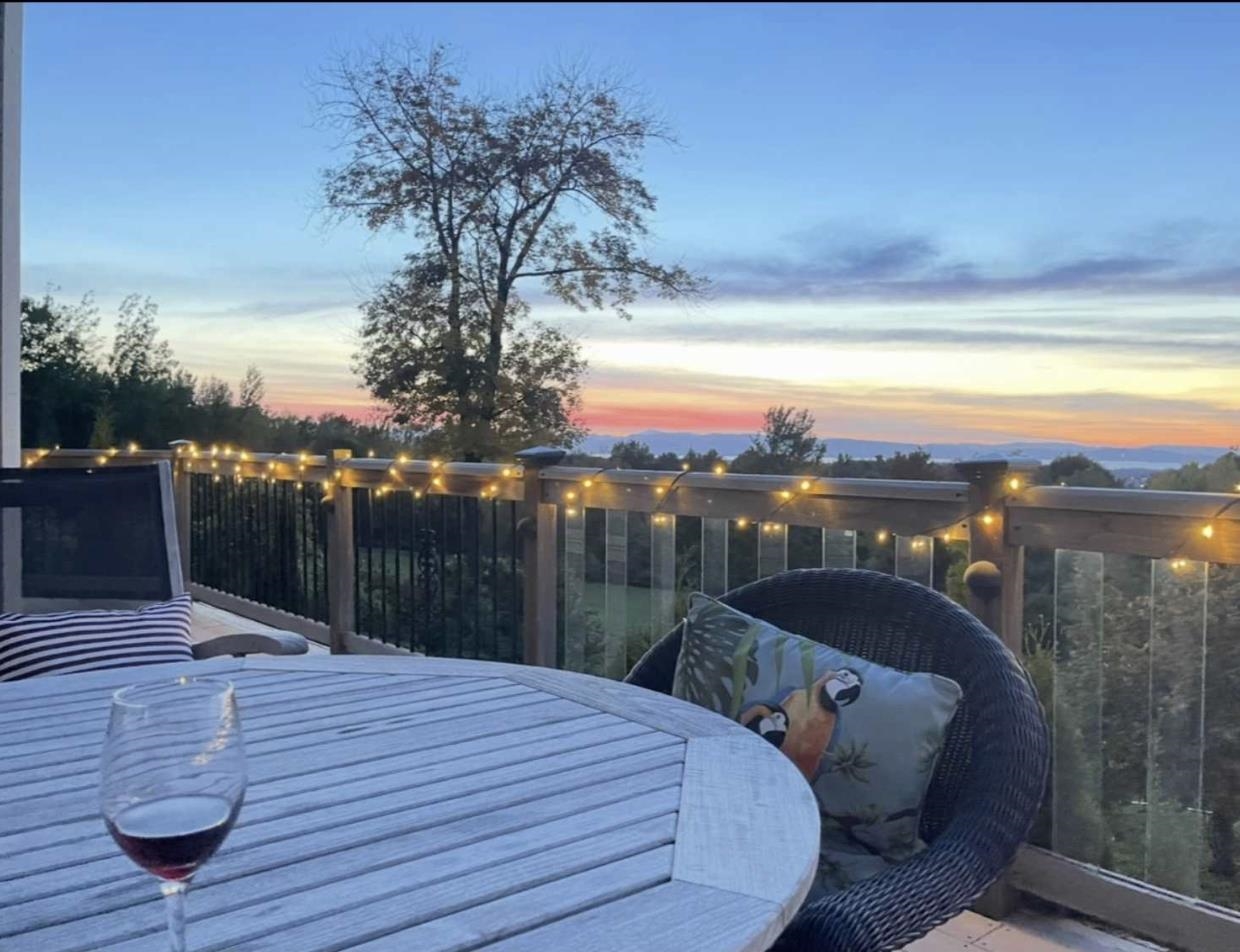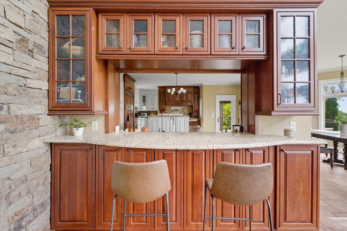 Perched at the quiet end of a cul-de-sac in Williston's Oak Hill neighborhood, this nearly 8,000 sq ft contemporary estate offers panoramic lake and mountain views, Mediterranean-inspired details, and resort-style living perfect for hosting the holidays. Set on 1.92 private acres, the property features an in-ground pool, expansive stone patios, and west-facing sunsets that light up every gathering space. Inside, vaulted ceilings, multiple fireplaces, and custom stonework anchor an open layout designed for entertaining. The chef's kitchen with butler's pantry, wet bar, and sunlit breakfast room flows seamlessly into the dining room and view-filled great room-an ideal setting for holiday dinners and winter celebrations. A main-level en suite offers flexible use for guests or multigenerational living. Upstairs, the primary suite includes a private balcony, fireplace, whirlpool tub with its own hearth, steam shower, walk-in closet, and a hexagonal retreat perfect for quiet mornings. Additional bedrooms and flex spaces provide room for large households or long-term visitors. The walkout lower level opens directly to the pool area and offers a family room, fitness or recreation spaces, workshop, and abundant storage-excellent for game nights, movie marathons, or creating an in-law or guest suite. With a three-car garage, multiple outdoor living zones, strong mechanical systems, and easy access to Williston, Burlington, and I-89, this estate delivers privacy, scale, and comfort. |