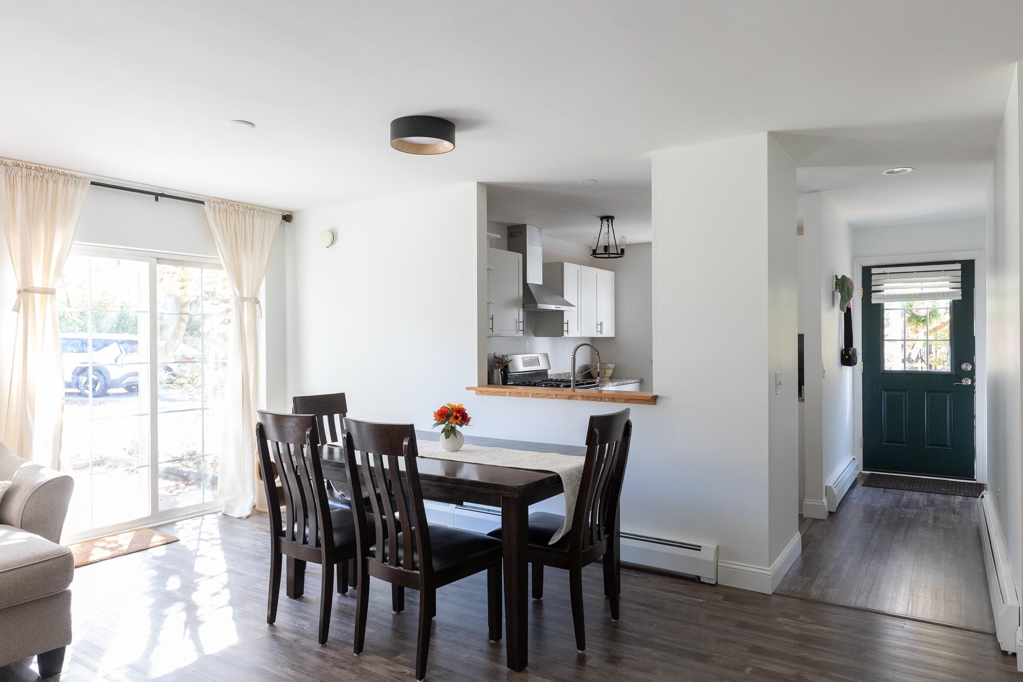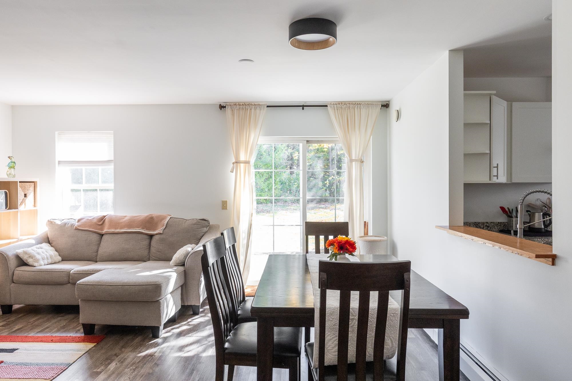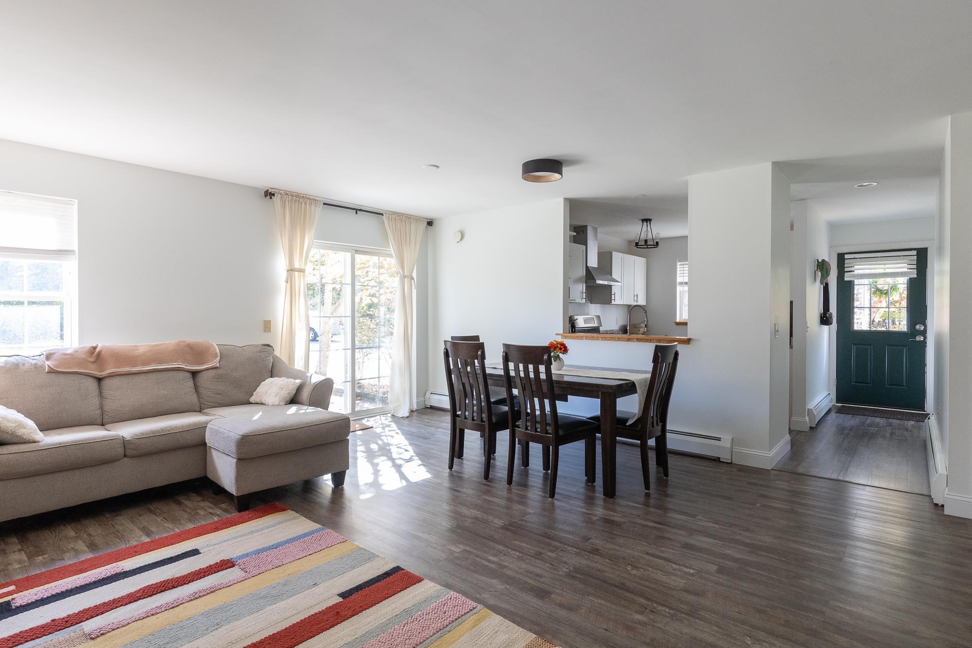 Sun lit and stunning, this updated end unit condo in Jericho's desirable Mountain Vista neighborhood will impress you! As you enter you'll be greeted by the new LVP flooring (1 yr old) throughout most of the house, freshly painted walls, and updated kitchen (2021/2022) with granite countertops, stainless appliances featuring a gas stove, vent hood, and huge sink. The kitchen opens up to the dining/living area with bountiful natural light expressed through the additional windows found only in an end unit and the slider to the private patio adjacent to blueberry bushes, and well manicured common area. The bedrooms are both spacious and bright with ample closet space and new comfortable carpet (1 yr old). The primary bedroom features a private 1/2 bath with updated mirror, vanity, lighting and new toilet. The full bath has updated mirror, vanity, lighting, and new toilet as well. The garage features an EV charger and is freshly painted. Unique to these condos there is a full dry basement with poured concrete foundation and additional built in storage area. The highly efficient recently inspected Weil McLain natural gas boiler will keep you warm in the cooler months. The association grounds/common area features mature perennials. Roughly 30 Minutes to Smuggler's Notch Ski Resort, Stowe Mountain Ski Resort, Bolton Valley Ski Resort, Burlington's Church Street and Lake Champlain. |