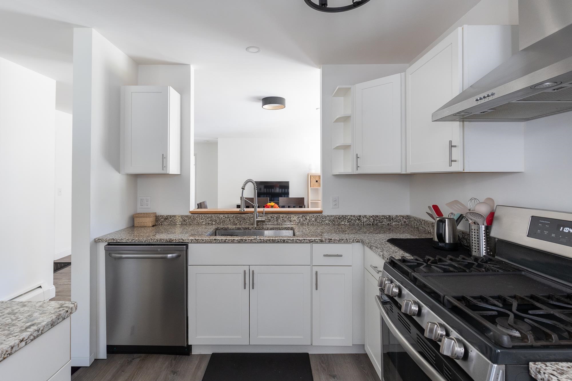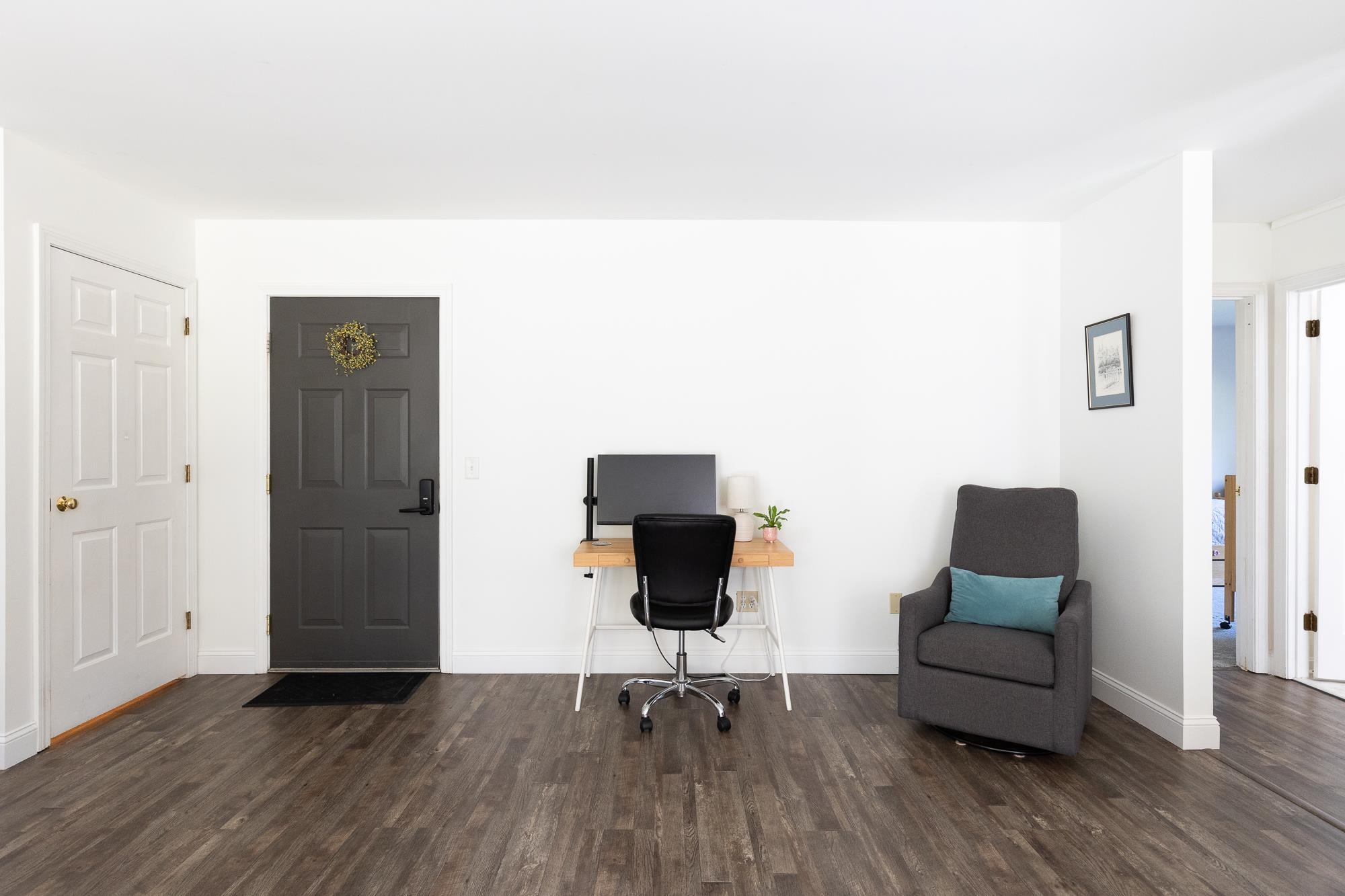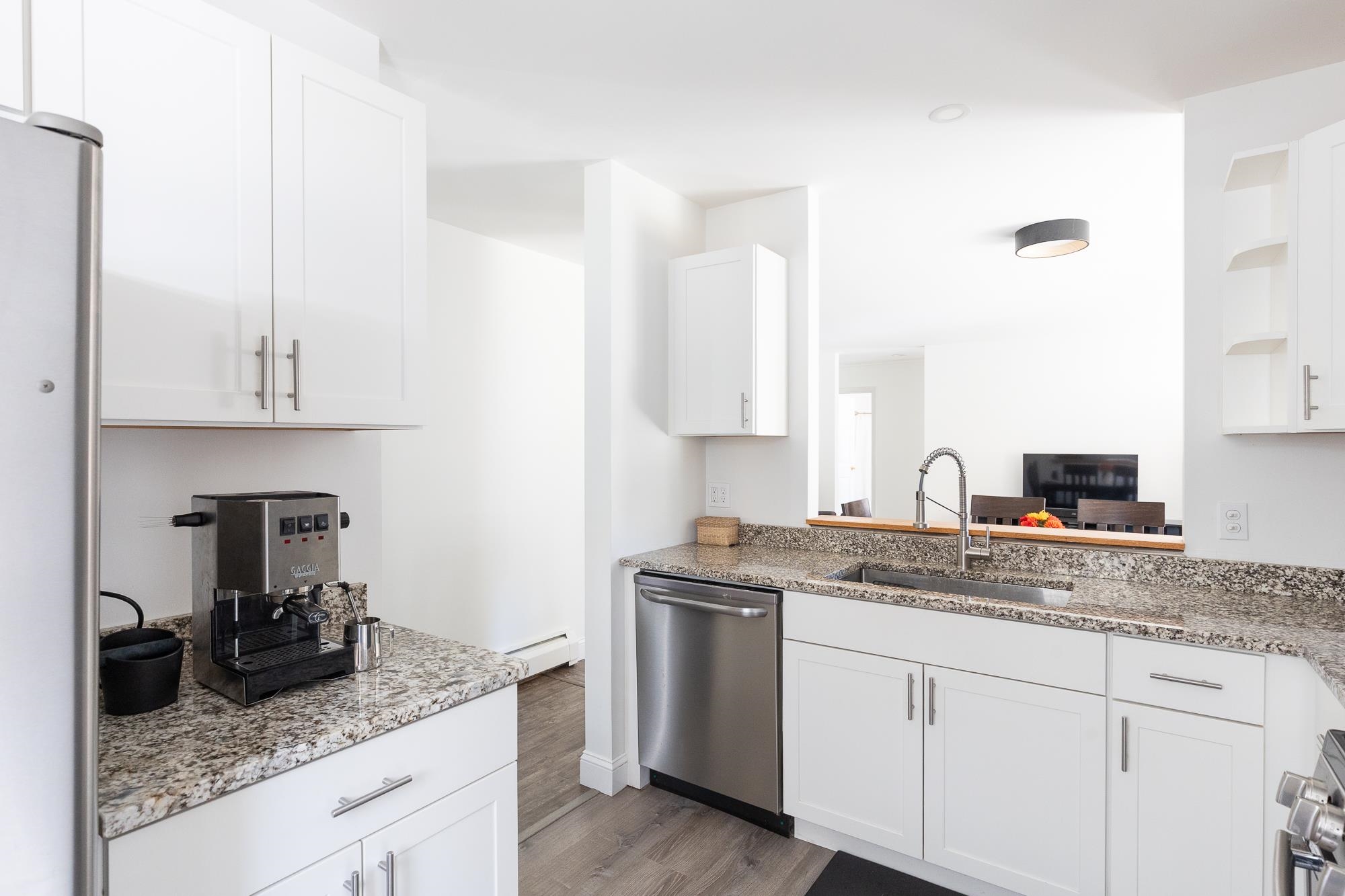 Sun lit and stunning, this updated end unit condo in Jericho's desirable Mountain Vista neighborhood will impress you! As you enter you'll be greeted by the new LVP flooring (1 yr old) throughout most of the house, freshly painted walls, and updated kitchen (2021/2022) with granite countertops, stainless appliances featuring a gas stove, vent hood, and huge sink. The kitchen opens up to the dining/living area with bountiful natural light expressed through the additional windows found only in an end unit and the slider to the private patio adjacent to blueberry bushes, and well manicured common area. The bedrooms are both spacious and bright with ample closet space and new comfortable carpet (1 yr old). The primary bedroom features a private 1/2 bath with updated mirror, vanity, lighting and new toilet. The full bath has updated mirror, vanity, lighting, and new toilet as well. The garage features an EV charger and is freshly painted. Unique to these condos there is a full dry basement with poured concrete foundation and additional built in storage area. The highly efficient recently inspected Weil McLain natural gas boiler will keep you warm in the cooler months. The association grounds/common area features mature perennials. Roughly 30 Minutes to Smuggler's Notch Ski Resort, Stowe Mountain Ski Resort, Bolton Valley Ski Resort, Burlington's Church Street and Lake Champlain. |