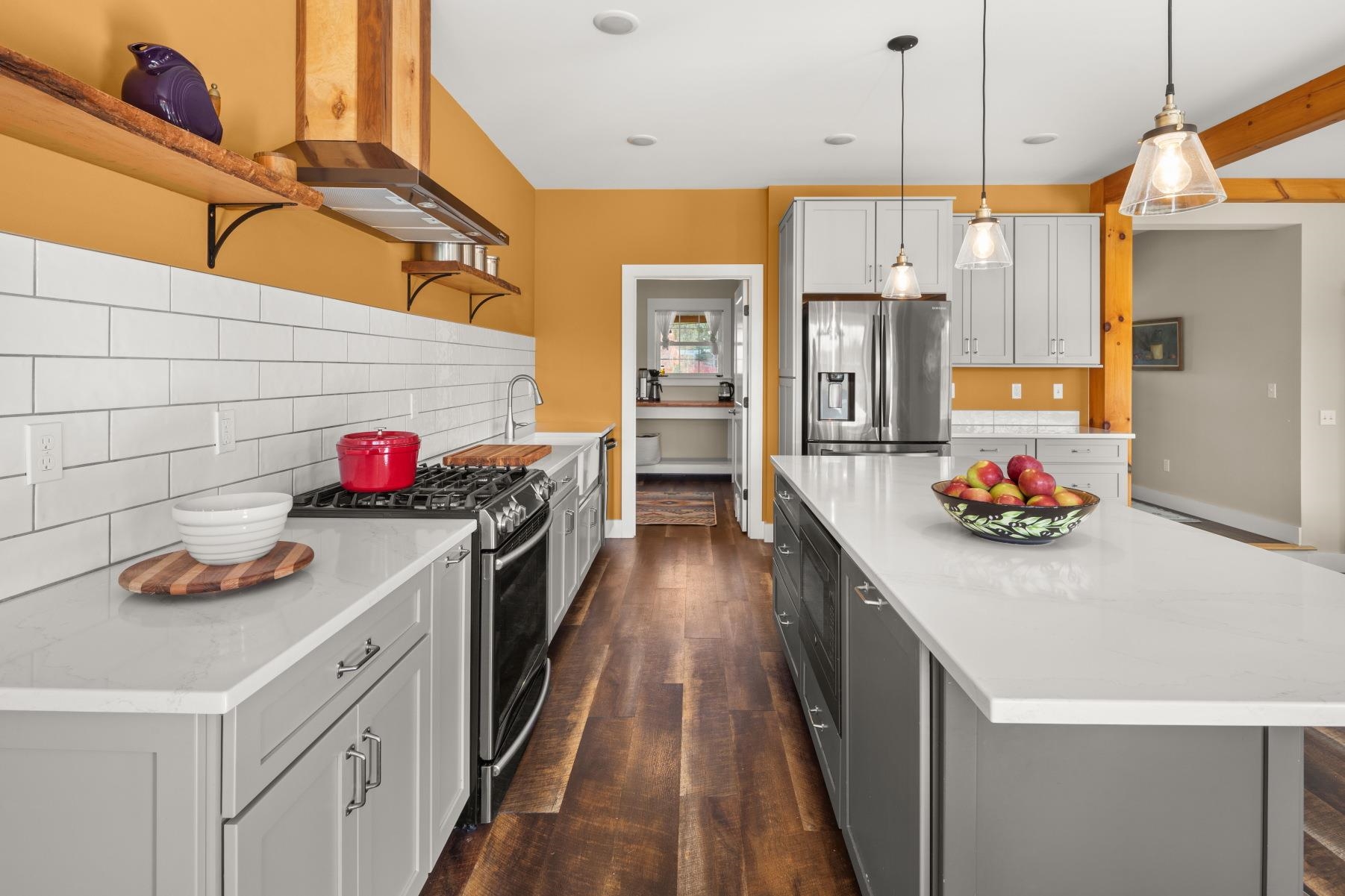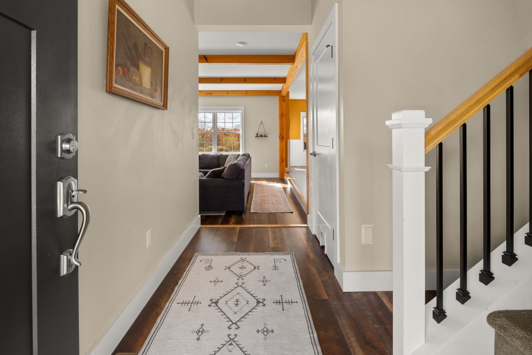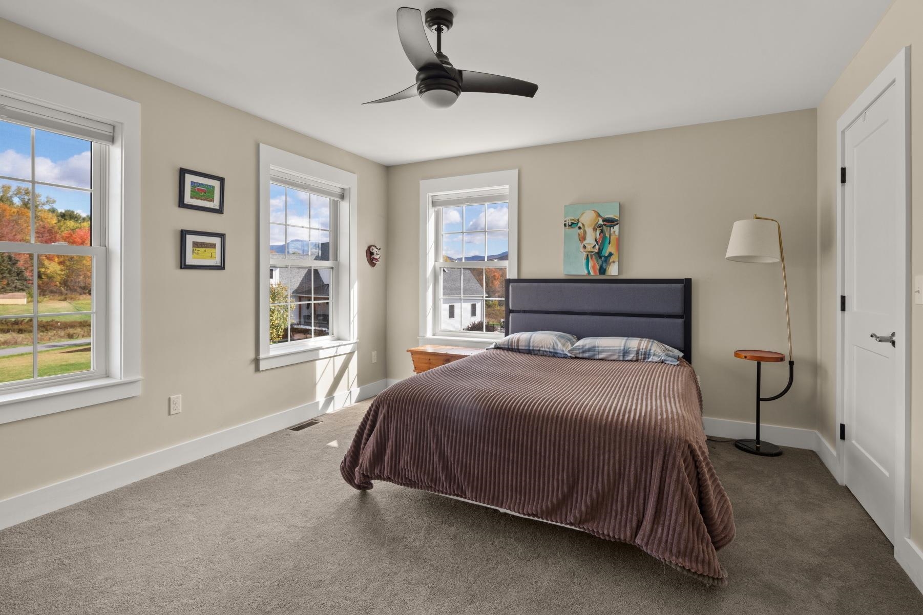 Unique opportunity to own a wonderful custom-built 4BR, 2.5BA modern farmhouse on 1.87 acres in a quiet, private neighborhood w/sweeping backyard views of Mt Mansfield. Thoughtfully designed, this light-filled home features a spacious mudroom and a dedicated closed-door office tucked away from the main living areas. The sunken living room showcases authentic post-and-beam accents, a gas fireplace, and opens to a large Trex deck plumbed w/natural gas, ideal for outdoor dining and relaxation. The open kitchen offers quartz countertops, a modern subway tile backsplash, black stainless appliances, walk-in pantry w/coffee bar, and an oversized island w/seating for six. A cozy den just off the living room is perfect for movie nights. The serene first-floor primary suite includes deck access, a walk-in closet w/built-ins, a spa-like bath including double vanities, a freestanding soaking tub, and a custom Finnleo 2-person sauna. Upstairs offers 3 spacious bedrooms (2 w/walk-in closets), a full bath, versatile bonus room, and second-floor laundry w/utility sink and additional storage. Additional features: an attached 2-car garage w/Tesla Level II EV charger, a full basement w/egress, energy-efficient natural gas heat and A/C, and 23 owned solar panels (8.28kW), keeping electric bills around $200/year. Minutes to schools, shops, dining, and recreation with world-class skiing, hiking, and biking just 30 minutes away. A rare blend of modern comfort, thoughtful design, and quiet luxury. |