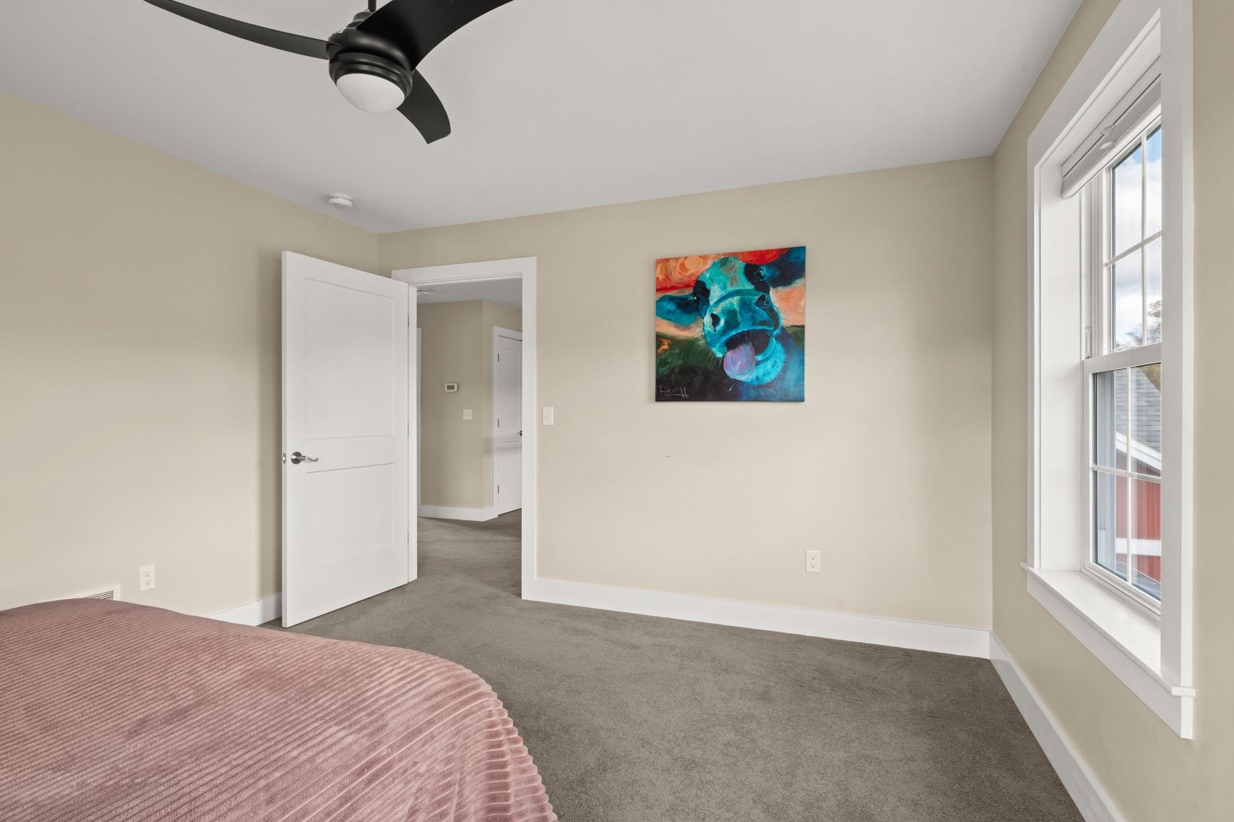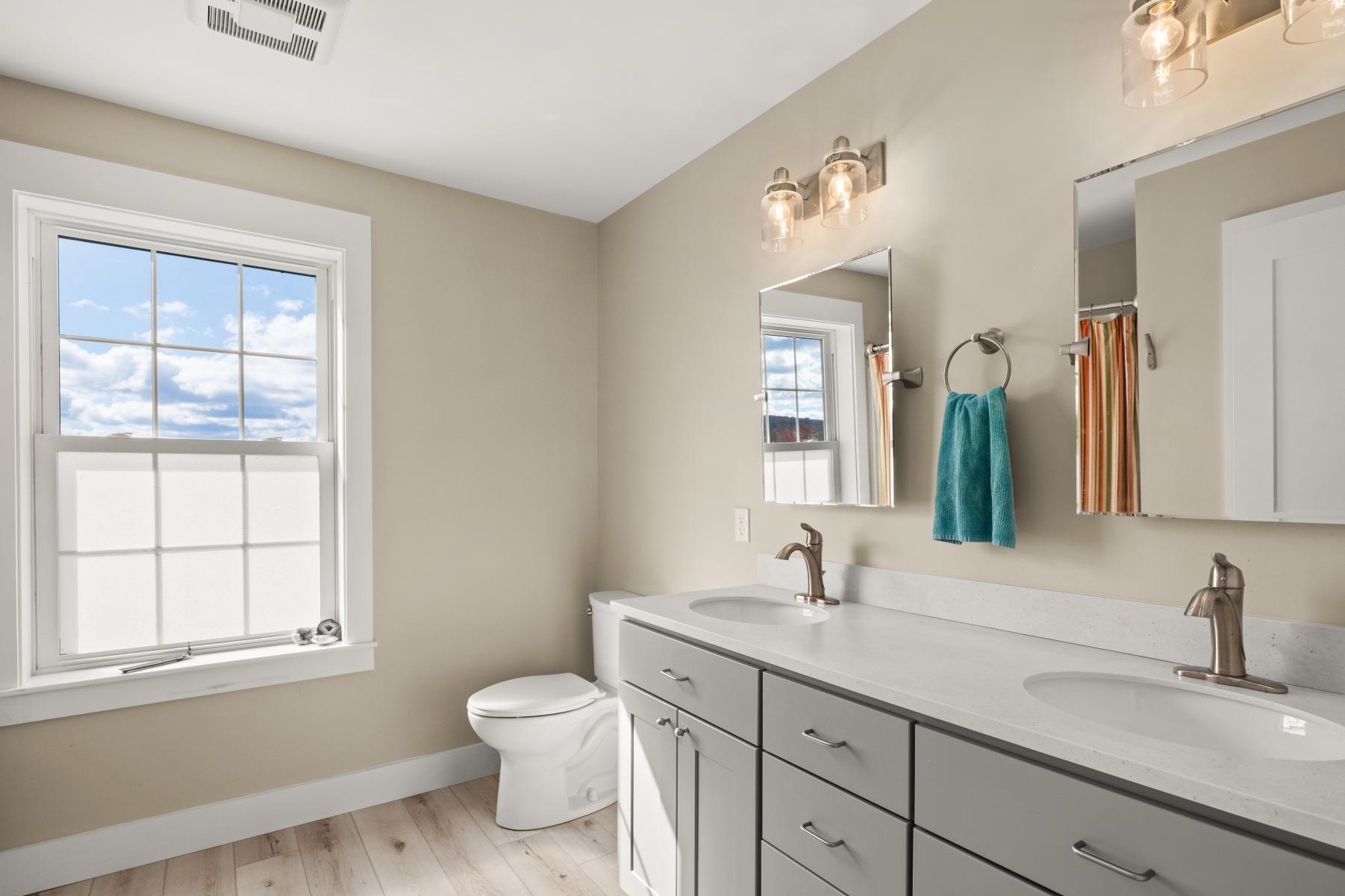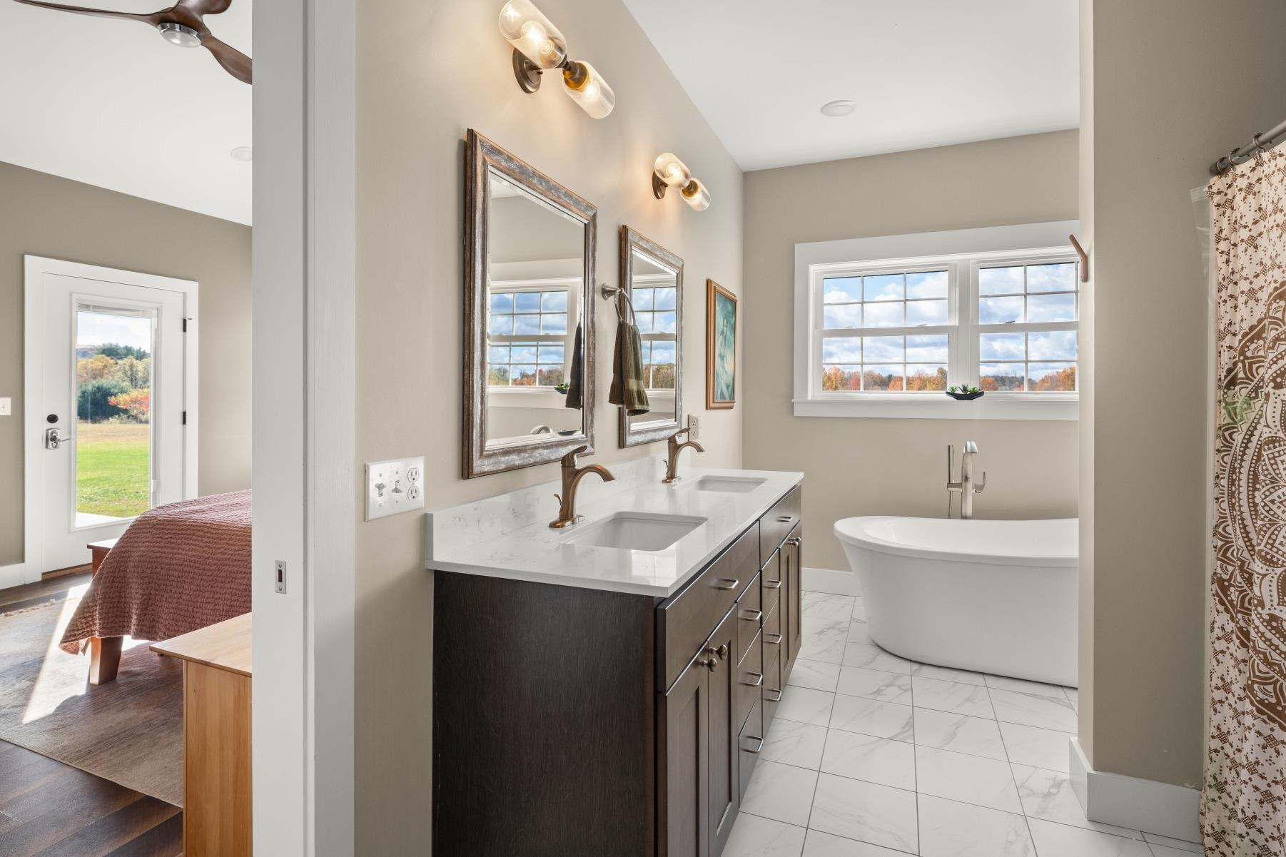 Unique opportunity to own a wonderful custom-built 4BR, 2.5BA modern farmhouse on 1.87 acres in a quiet, private neighborhood w/sweeping backyard views of Mt Mansfield. Thoughtfully designed, this light-filled home features a spacious mudroom and a dedicated closed-door office tucked away from the main living areas. The sunken living room showcases authentic post-and-beam accents, a gas fireplace, and opens to a large Trex deck plumbed w/natural gas, ideal for outdoor dining and relaxation. The open kitchen offers quartz countertops, a modern subway tile backsplash, black stainless appliances, walk-in pantry w/coffee bar, and an oversized island w/seating for six. A cozy den just off the living room is perfect for movie nights. The serene first-floor primary suite includes deck access, a walk-in closet w/built-ins, a spa-like bath including double vanities, a freestanding soaking tub, and a custom Finnleo 2-person sauna. Upstairs offers 3 spacious bedrooms (2 w/walk-in closets), a full bath, versatile bonus room, and second-floor laundry w/utility sink and additional storage. Additional features: an attached 2-car garage w/Tesla Level II EV charger, a full basement w/egress, energy-efficient natural gas heat and A/C, and 23 owned solar panels (8.28kW), keeping electric bills around $200/year. Minutes to schools, shops, dining, and recreation with world-class skiing, hiking, and biking just 30 minutes away. A rare blend of modern comfort, thoughtful design, and quiet luxury. |