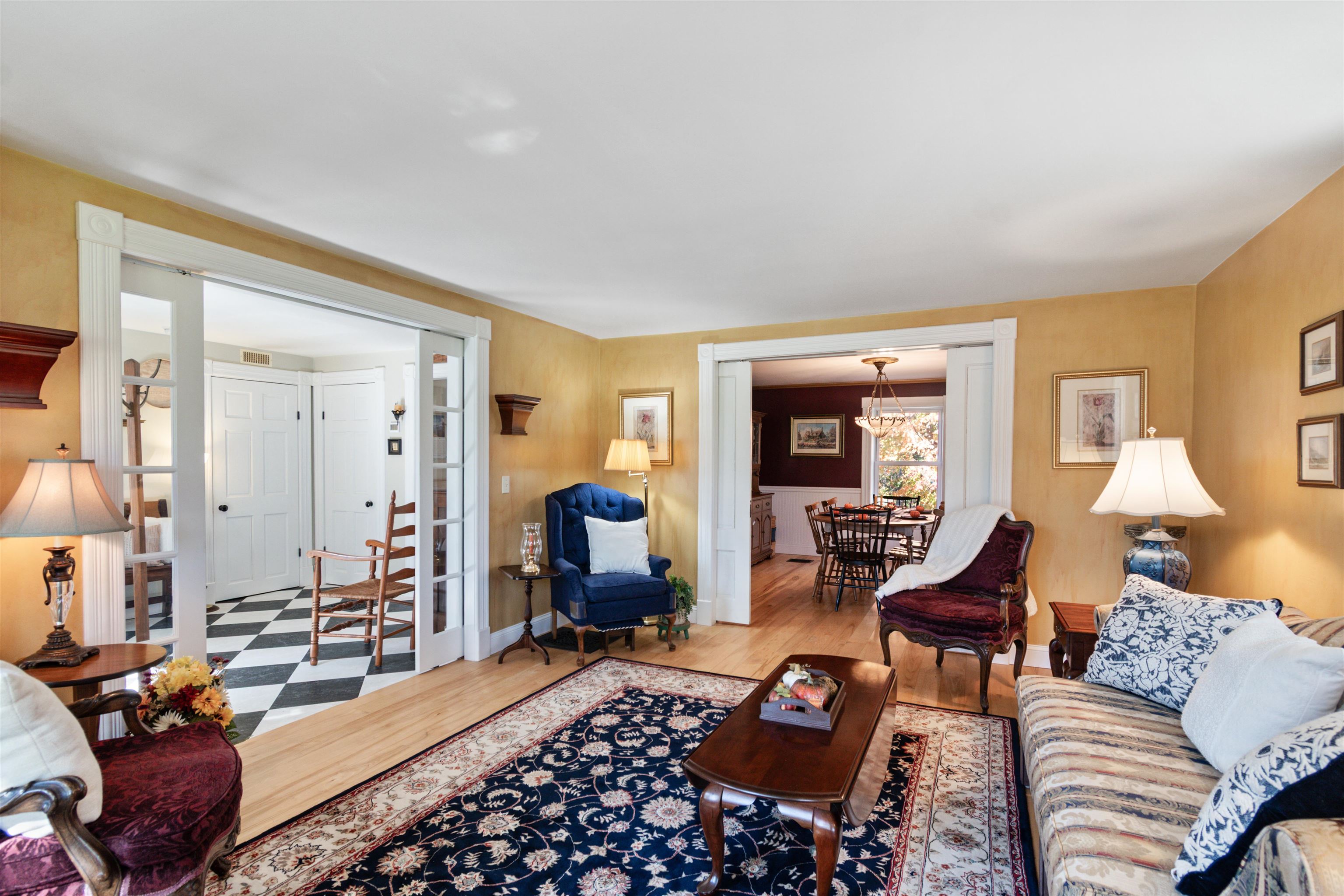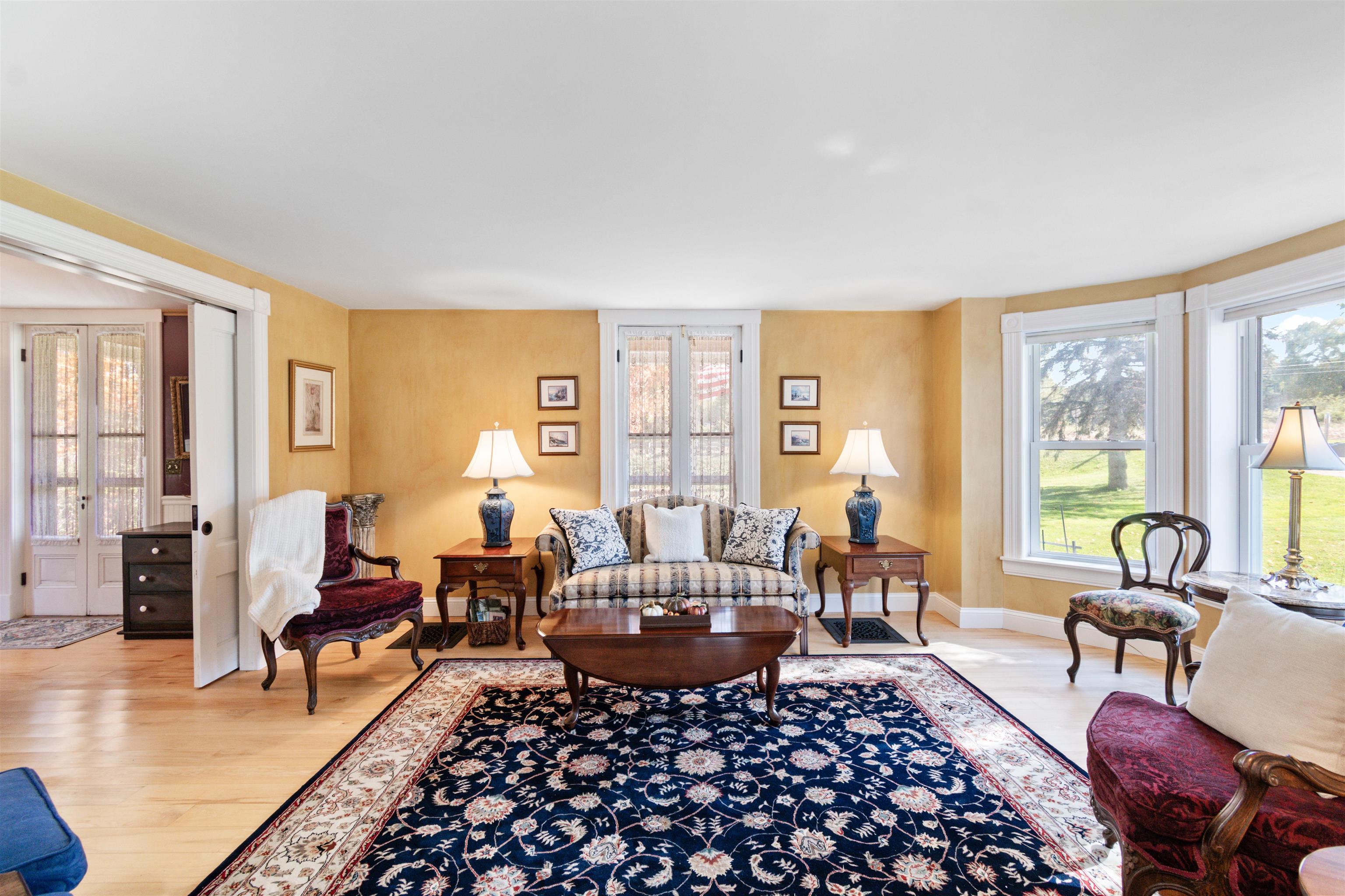 Welcome home! This Vermont farmhouse set on over 55 acres near Elm Hill Farm will leave you breathless. The vintage details are unmatched including wide-plank wood floors throughout, original sliding pocket doors, vintage light fixtures, bead board and a charming checkered tile entry. A spacious foyer welcomes you into the main level, open to a formal sitting room which transitions into the formal dining space. The kitchen offers easy flow to both formal and casual dining spaces, creating a perfect layout for everyday living and entertaining. An additional cozy family room centers around a federated brick fireplace. Large windows fill the living areas with natural light, a main-level office provides flexibility for remote work, creative space, or study. Upstairs, four generous bedrooms & two full baths provide peaceful retreats with classic farmhouse character and ample storage. Outside, two covered front porches invite quiet moments and seasonal enjoyment. A new barn-style garage with concrete floor offers great space for storage, workshop use, or hobbies. The 55-acre parcel includes open pasture currently hayed by a local farmer and borders Vermont-protected wetlands that enhance the natural views and privacy. A separate-entry apartment offers flexible living or income potential. Great opportunity for multi-generational living or a family homestead. Recent updates include a newer furnace, windows, roof and central AC. Conveniently located near in Colchester VT. |