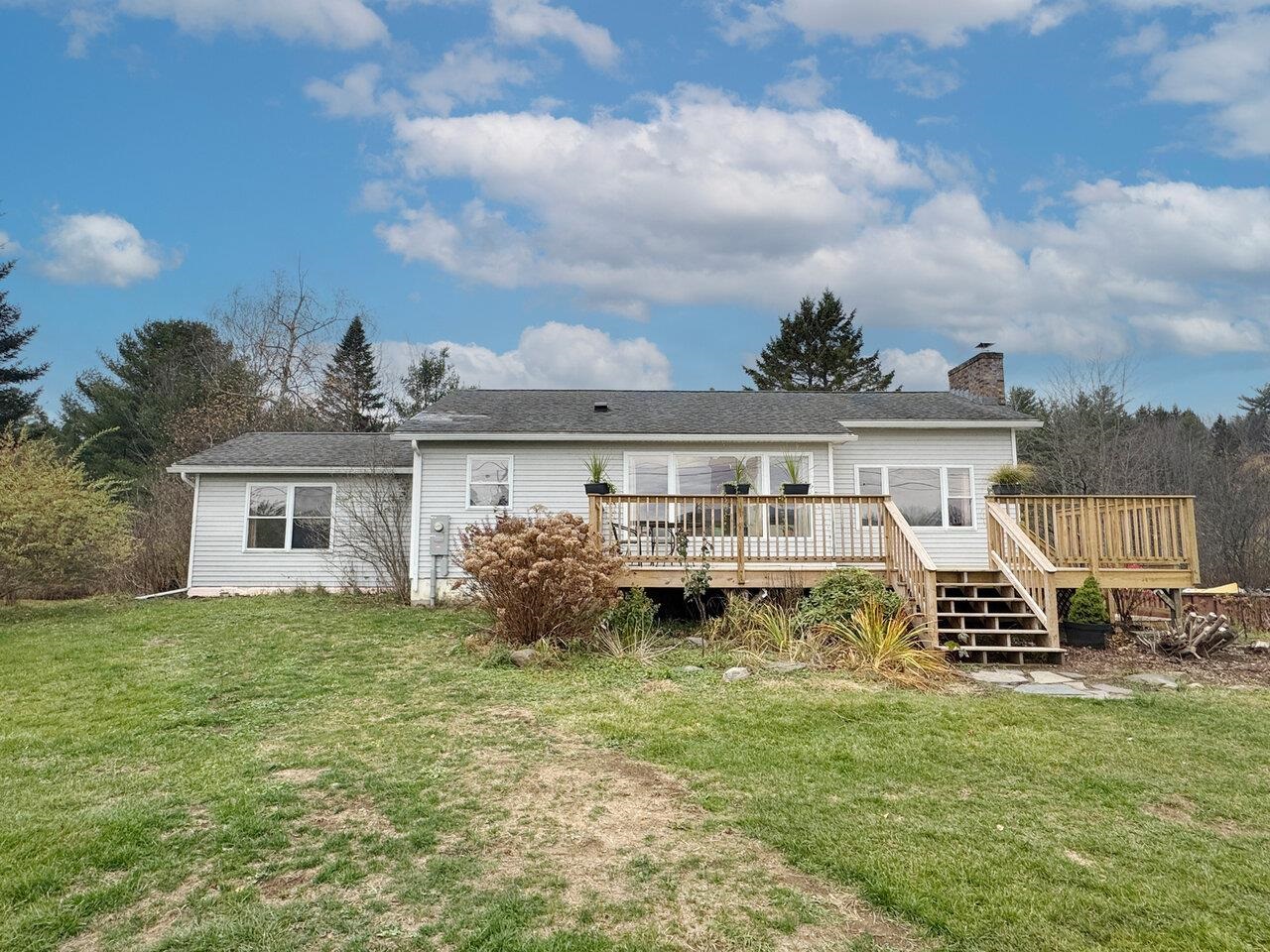 Soak in breathtaking Mount Mansfield views from this rare Jericho opportunity - a single-level home full of potential and ready for your finishing touches. Offering 3 bedrooms and 1 bath, the well-designed layout features a tiled entry and dining room, plus kitchen equipped with stainless steel appliances and convenient first-floor laundry. The sunken family room offers a vaulted, beamed ceiling with a sliding glass door to the back deck, while the bright living room features a fireplace and big picture windows perfectly frame the mountain scenery. A newer front deck provides the perfect vantage point to unwind and enjoy the panoramic views. Nestled on 2.2 acres with mature landscaping, this property also offers a full basement for storage and a one-car garage. Located minutes from Jericho's quaint amenities and just 30 minutes to Burlington or Smugglers' Notch for year-round mountain recreation, this home presents a wonderful opportunity for investors or handy buyers to transform a diamond in the rough into something truly special. Sold as-is. |
