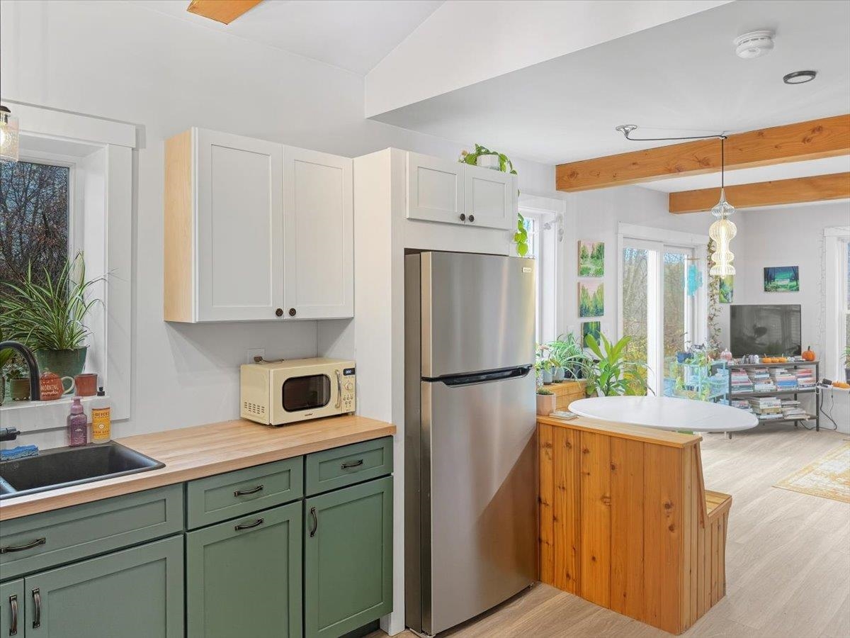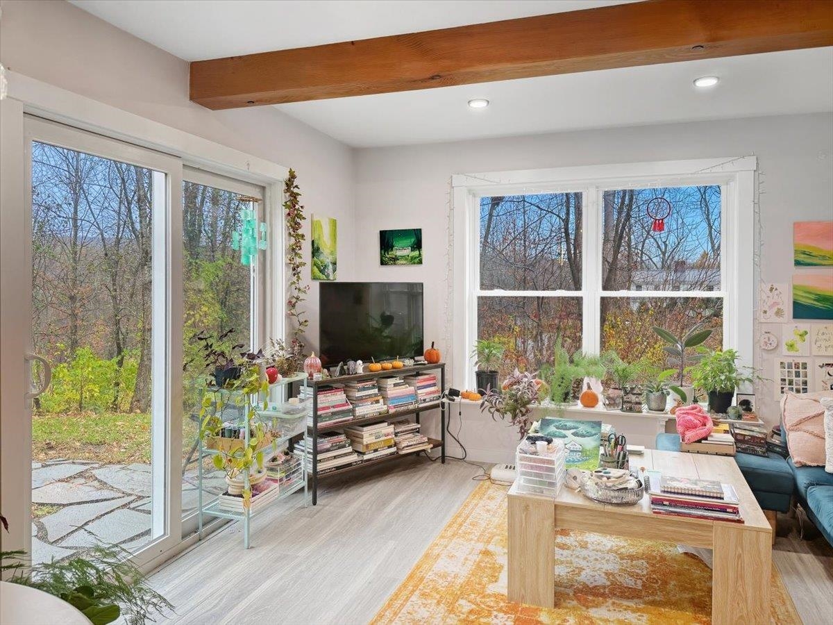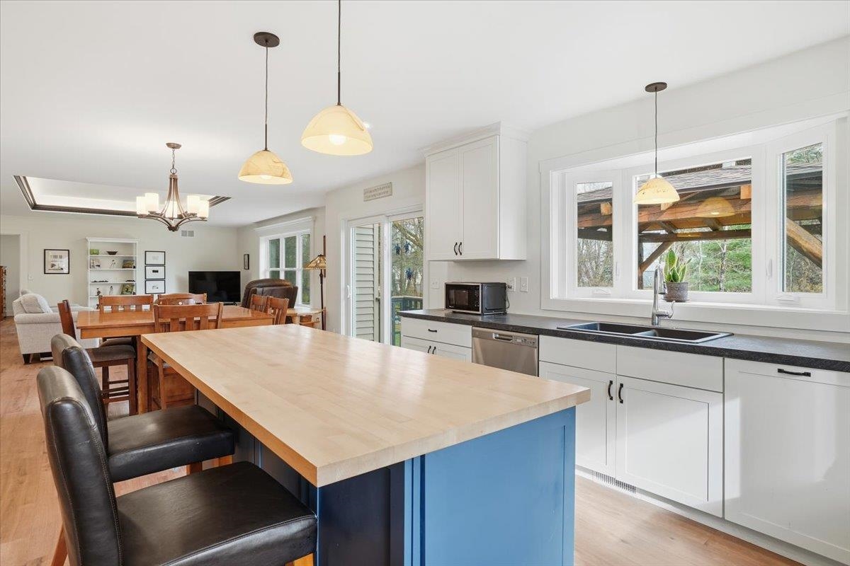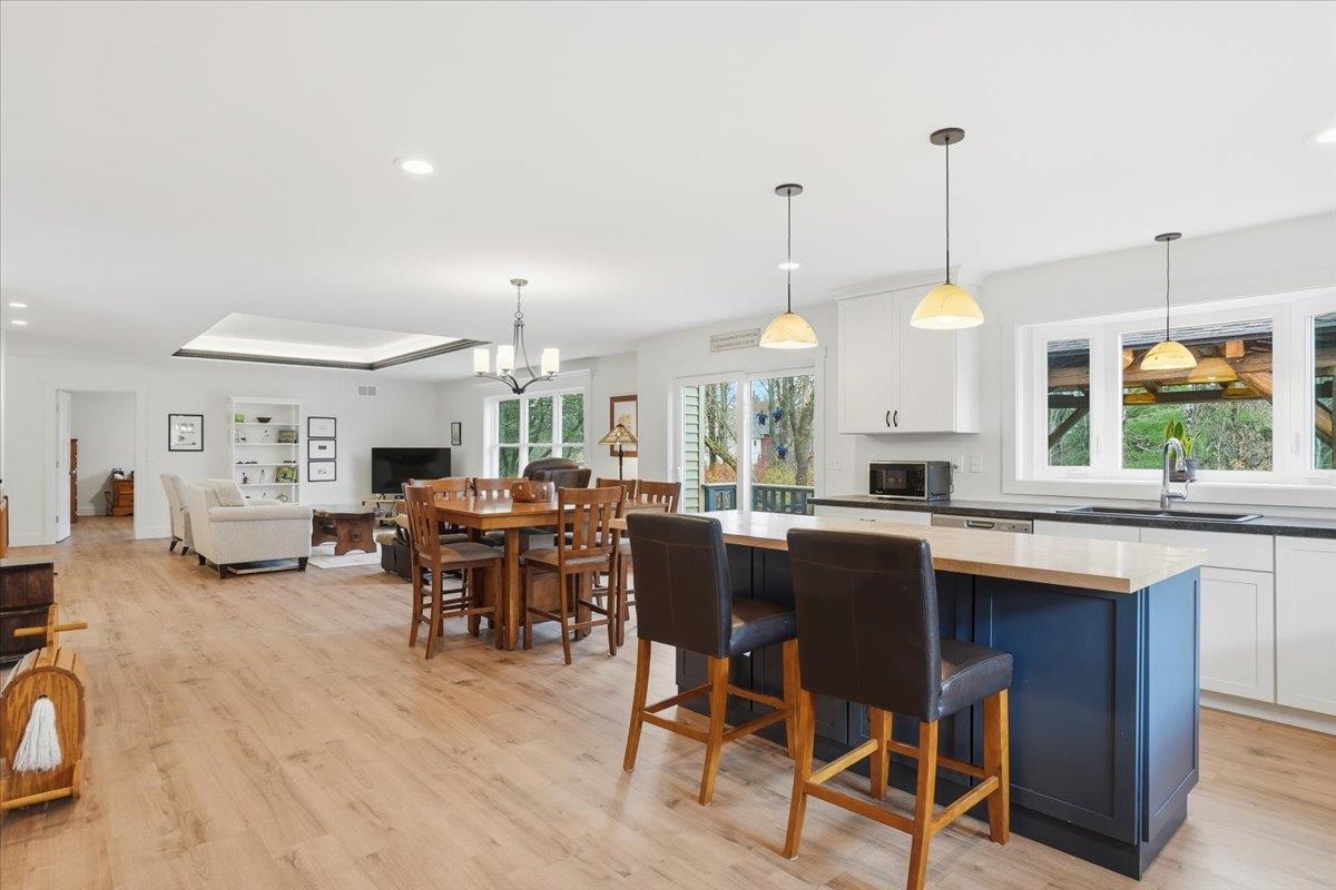 Unique opportunity to own this wonderful one-level home offering over 3,800 sq. ft., plus a detached 1,000 sq. ft. ranch-style guest house with separate utilities.The guest home features one bedroom, one bath and an oversized one-car garage-perfect for extended family, guests, rental income, or Airbnb.The main house boasts a sunny, open floor plan with a spacious kitchen featuring custom cabinetry, stainless appliances, and an oversized center island. The kitchen opens to a stunning great room with a decorative tray ceiling, accent lighting, and large windows that fill the space with natural light.The bright primary suite includes a private tiled bath with a walk-in shower, walk-in closet, and convenient washer and dryer hookups. Two additional guest bedrooms-one with French doors-offer flexibility for use as an office or den.The finished lower level with garden windows includes a bedroom, 3/4 bath, oversized family room, theater room, and two storage areas.Adding to the charm, you'll find an 1860 reclaimed post-and-beam barn (22'×32') relocated from Jericho, featuring a second floor and lean-to for additional storage.Enjoy a peaceful country feel-sip your morning coffee on the front porch while admiring the church steeple and surrounding trees, or entertain on the back patio with extensive stonework, a post & beam pergola, and beautiful landscaping.You'll love the convenience of being just minutes to Williston Village, bike path and schools . |