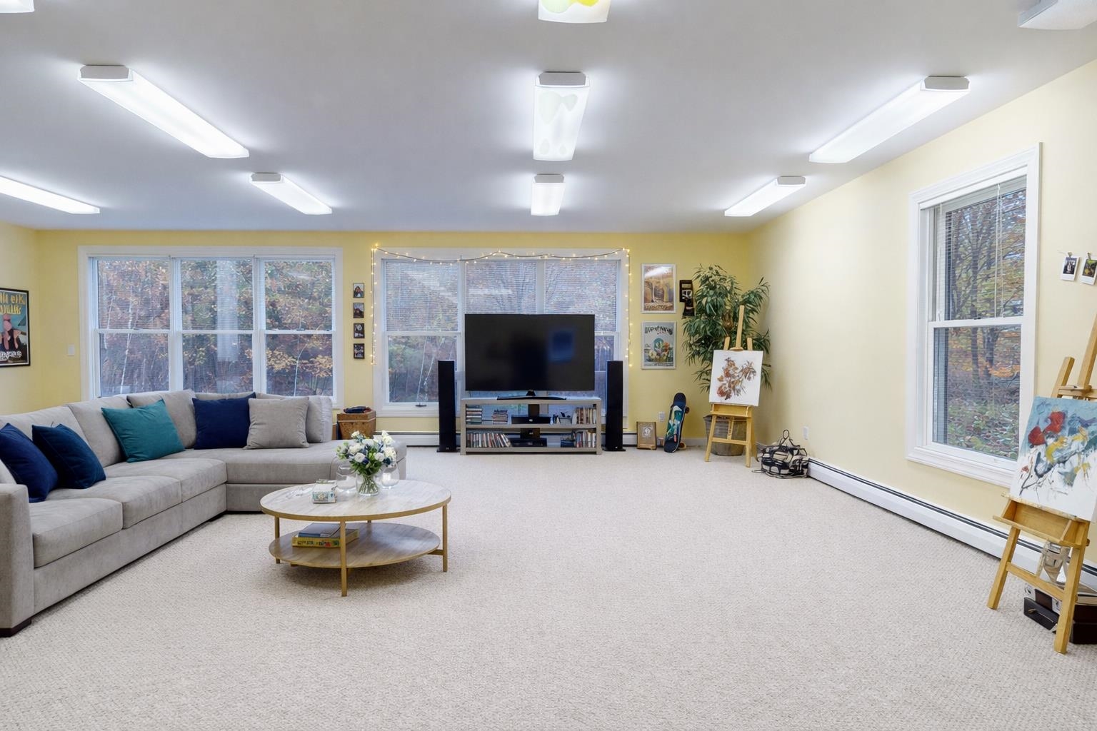 Set on 20 peaceful acres across from the conserved Mud Pond trail network, this thoughtfully designed 2-bedroom, 2-bath contemporary ranch offers comfortable single-level living in a private, nature-filled setting. A welcoming covered porch opens into a light-filled living room with a vaulted ceiling and expansive windows that frame the surrounding landscape. Oak hardwood floors extend throughout the main living areas and bedrooms. The updated kitchen features white cabinets, stainless steel appliances, granite countertops, and a classic subway tile backsplash, with easy access to a relaxing sunroom and back deck. The first-floor primary suite includes a full bath, built-ins, and a changing area with two large closets. A spacious multi-purpose room provides excellent flexibility-perfect for a home business, a cozy family room or a dedicated workout space. Its layout and privacy make it easy to tailor to your lifestyle. The finished walkout lower level adds remarkable versatility with a den, office, laundry room, home theater, two cedar closets, storage areas, and another multi-purpose room with a garage door-ideal for gardening projects, workshop needs, pet care, or specialty vehicle storage. Additional highlights include a spacious two-car attached garage, large shed, and generator. Surrounded by nature yet close to Williston conveniences, this property offers a rare blend of privacy, easy living, and room to enjoy the hobbies and lifestyle you love. |