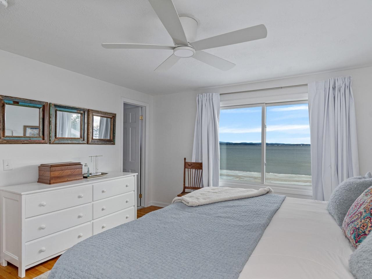 Wake up to sweeping, south-facing Adirondack views and end each day with unforgettable sunsets at this exceptional waterfront home in Burlington's coveted Appletree Point community. Perfectly set back from the road, this six-bedroom, four-bath residence offers privacy, space, and 100 feet of pristine lakeshore with a sandy beach, steps from the lawn, and a private boat mooring. Designed for both everyday comfort and memorable gatherings, the home features a large family room with vaulted ceilings, a welcoming living room with fireplace, and a sun-filled layout that flows effortlessly. The kitchen is equipped with granite countertops, a wood-topped island, stainless steel appliances, including an induction range, and a dining room just off the kitchen. Upstairs, you'll find four bedrooms, including a primary with en suite bath. The finished lower level adds additional bedrooms and a full bath, providing flexible space for guests, work, or recreation. Step outside to enjoy the three-season sunroom, deck, and expansive back lawn leading to your sandy beach and lakeshore, perfect for swimming, paddling, boating, or relaxing by the water. With the bike path just down the road and the wonderful Appletree Point neighborhood, this is a rare opportunity to enjoy south-facing lakefront living with views that stretch for miles. A true Burlington waterfront gem where community, comfort, and natural beauty come together. |