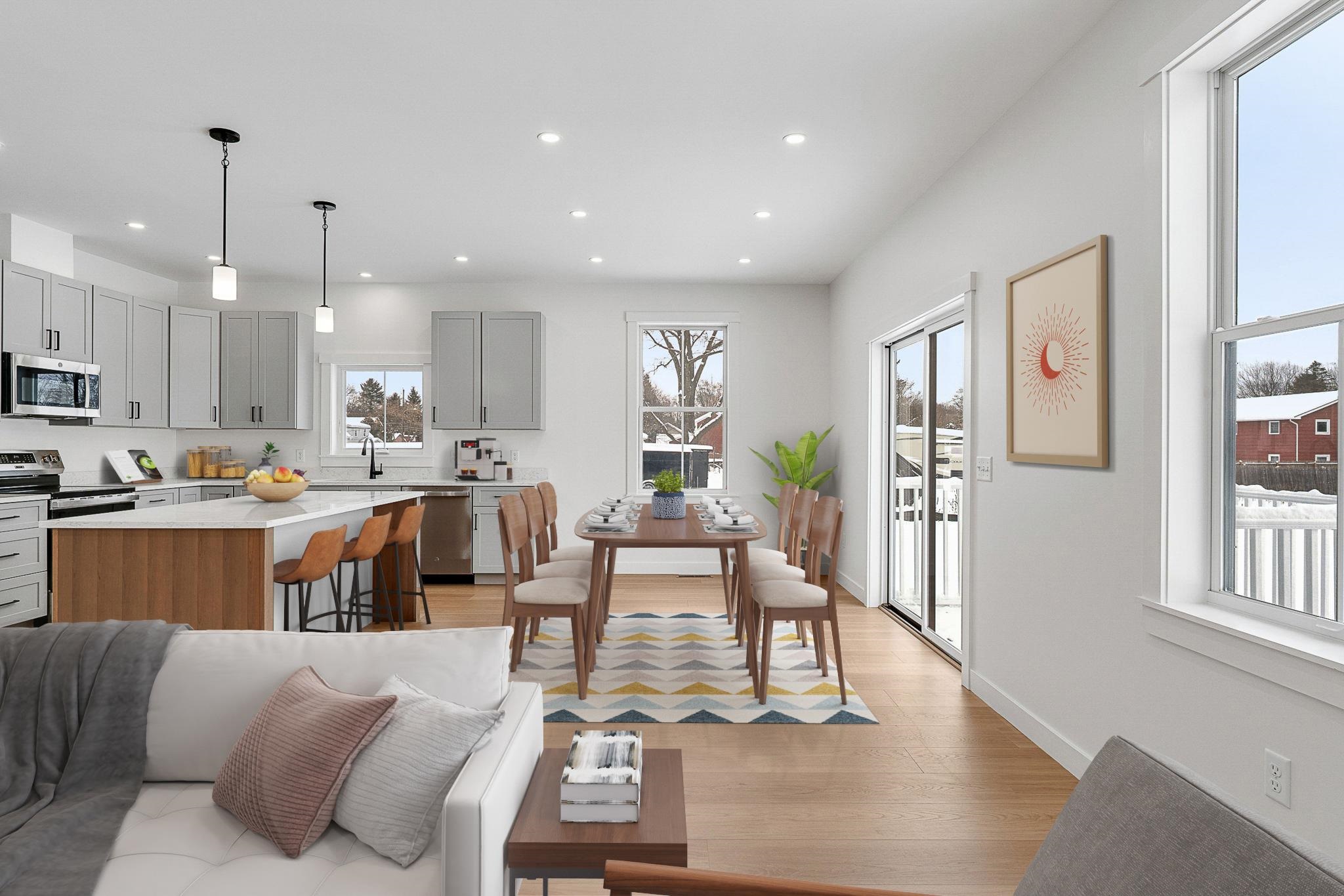 This isn't your run-of-the-mill builder grade condo. This ready for move-in townhome offers the perfect blend of comfort, space, and today's must-have features. Situated in the highly desirable town of Colchester, you'll be just moments from the serene beauty of Lake Champlain and an array of outdoor activities, making this the ideal home for those seeking both an active lifestyle and convenience. Step inside and enjoy a spacious open floor plan where the kitchen, dining room, and living room flow seamlessly into one another-perfect for family gatherings or entertaining friends. Step out onto the deck overlooking the shared lawn and common area to enjoy your morning coffee or evening wind down. Upstairs, the primary suite provides a peaceful retreat, an attached study for work or personal time, and a luxurious bathroom. Two additional well-sized bedrooms offer ample space for family or guests, and the second-floor laundry adds a touch of ease. Throughout the home, you'll find quality finishes and plenty of storage options, ensuring both beauty and practicality. Plus, the easy-to-finish basement provides endless possibilities for expanding your living space-whether you want a home gym, office, or a cozy family room. The oversized garage door is designed to accommodate larger automobiles, making it easy to store your vehicles and outdoor gear. This townhome is ready for you to call home. |
